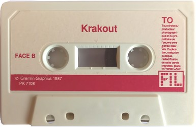 Krakout Ce jeu d'adresse et de sang froid (casse-briques revisité) a été créé par Gremlin Graphics en 1987. Il se joue uniquement à la manette de jeu.