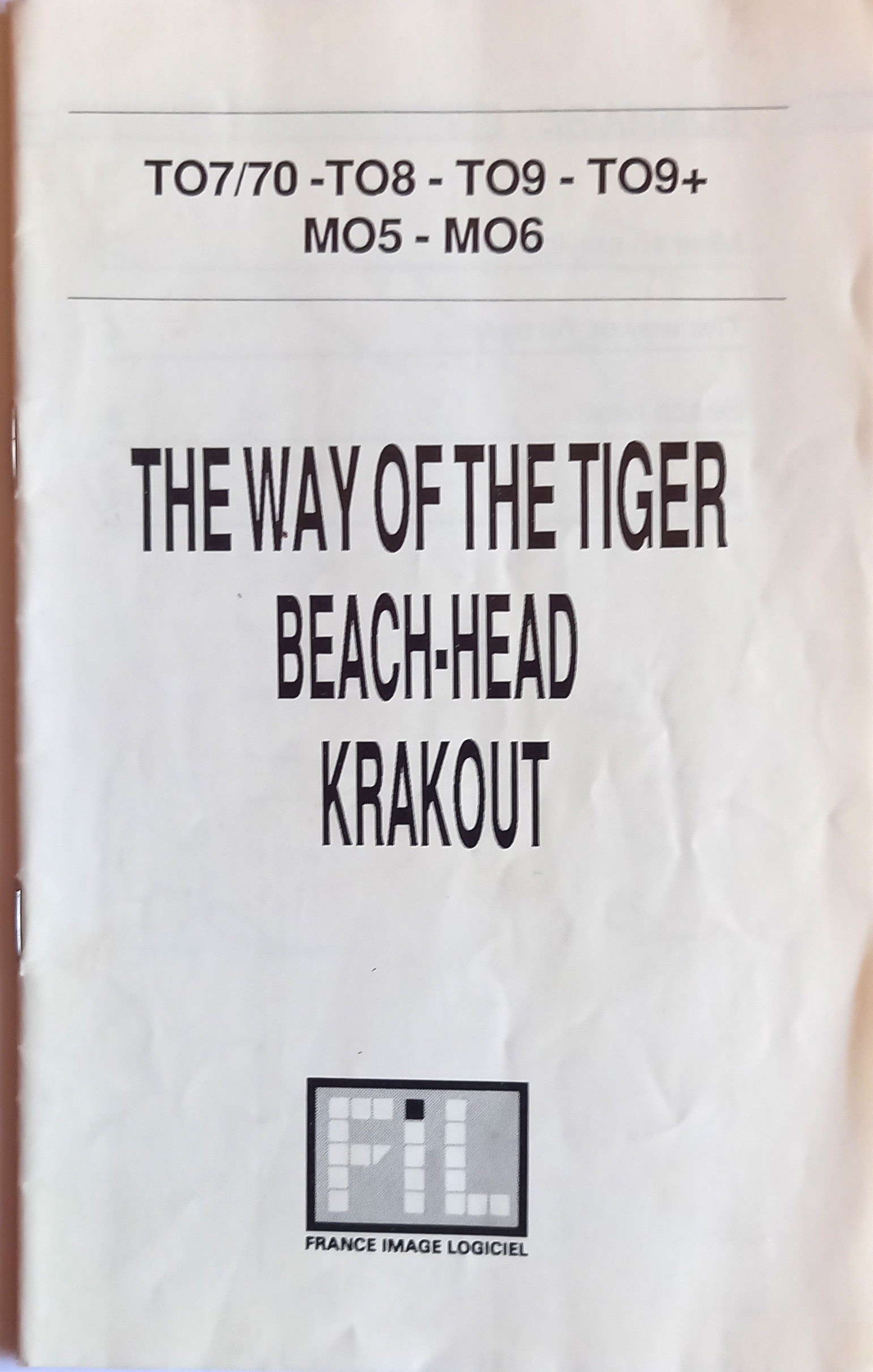 Trois jeux Ce pack édité par FIL en 1987 pour les micro-ordinateurs Thomson (TO7-70, TO8, TO9, TO9+, MO5, MO6) se compose des jeux : The way of tiger, Beach-Head et Krakout.