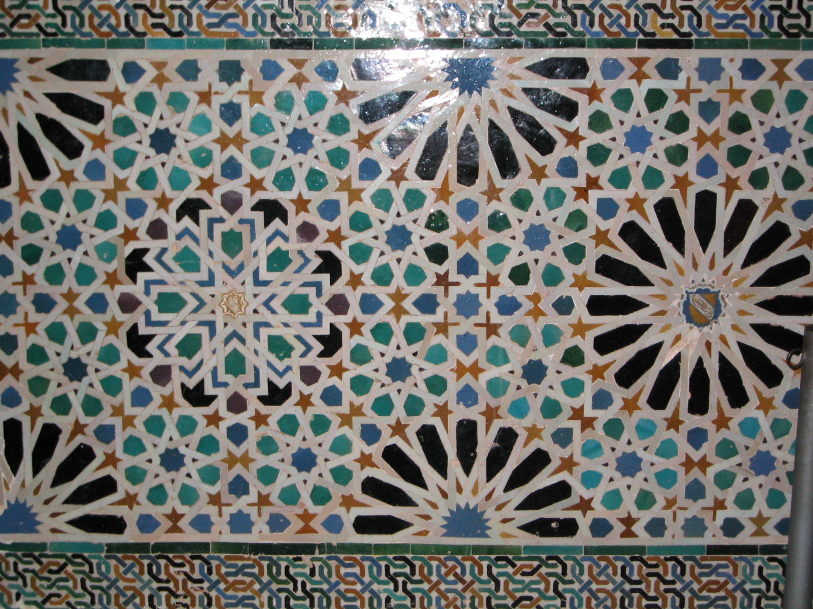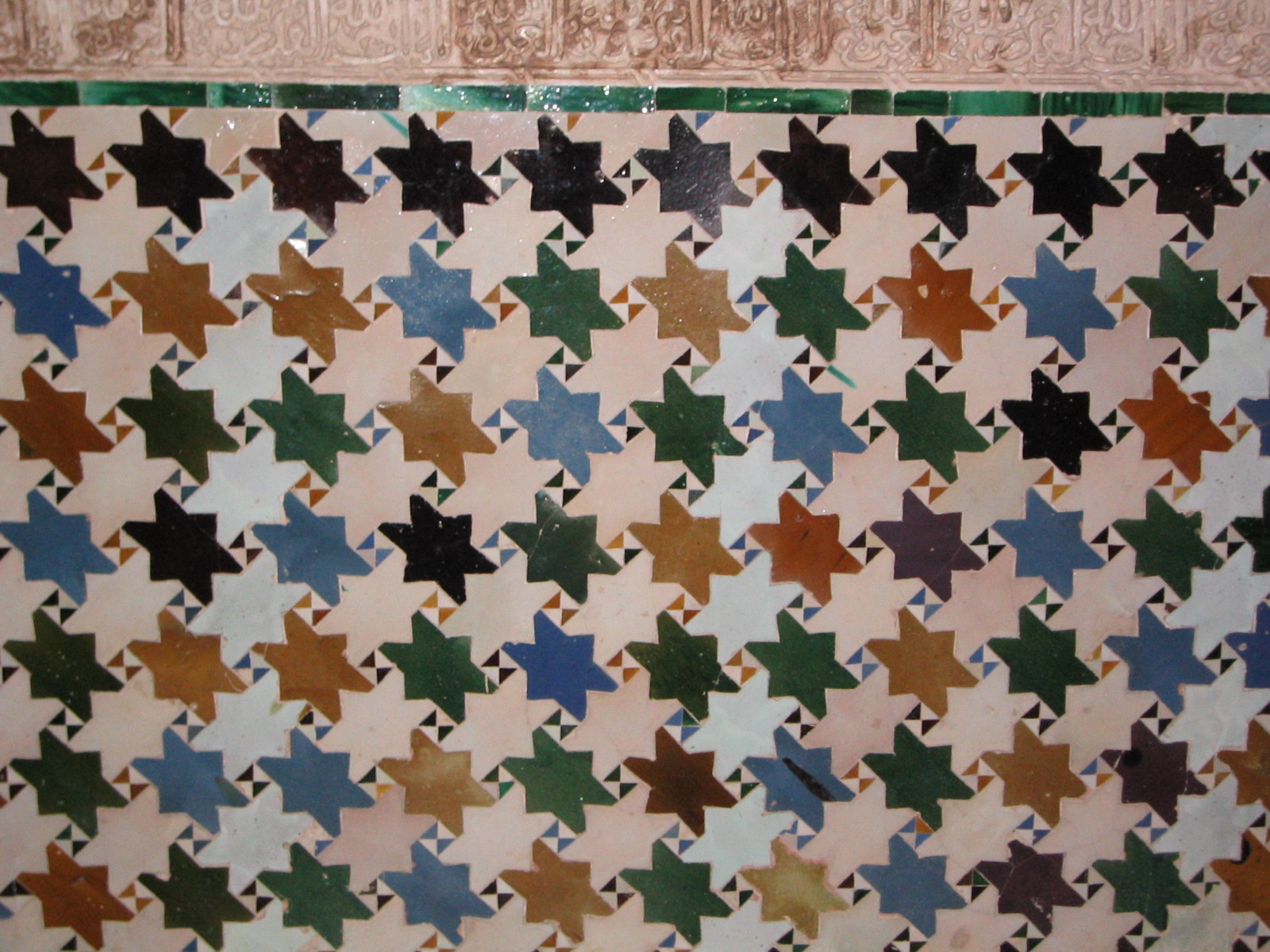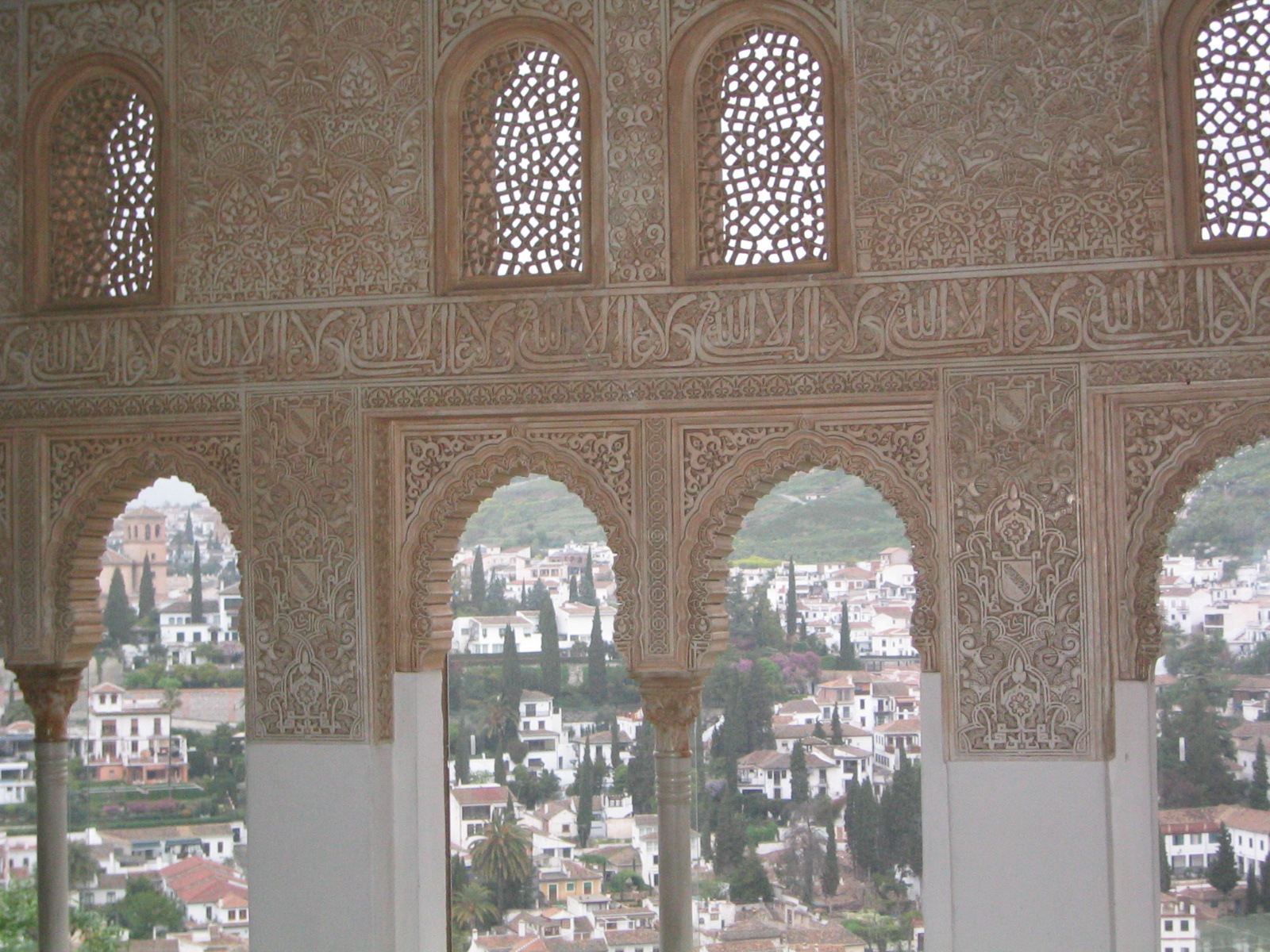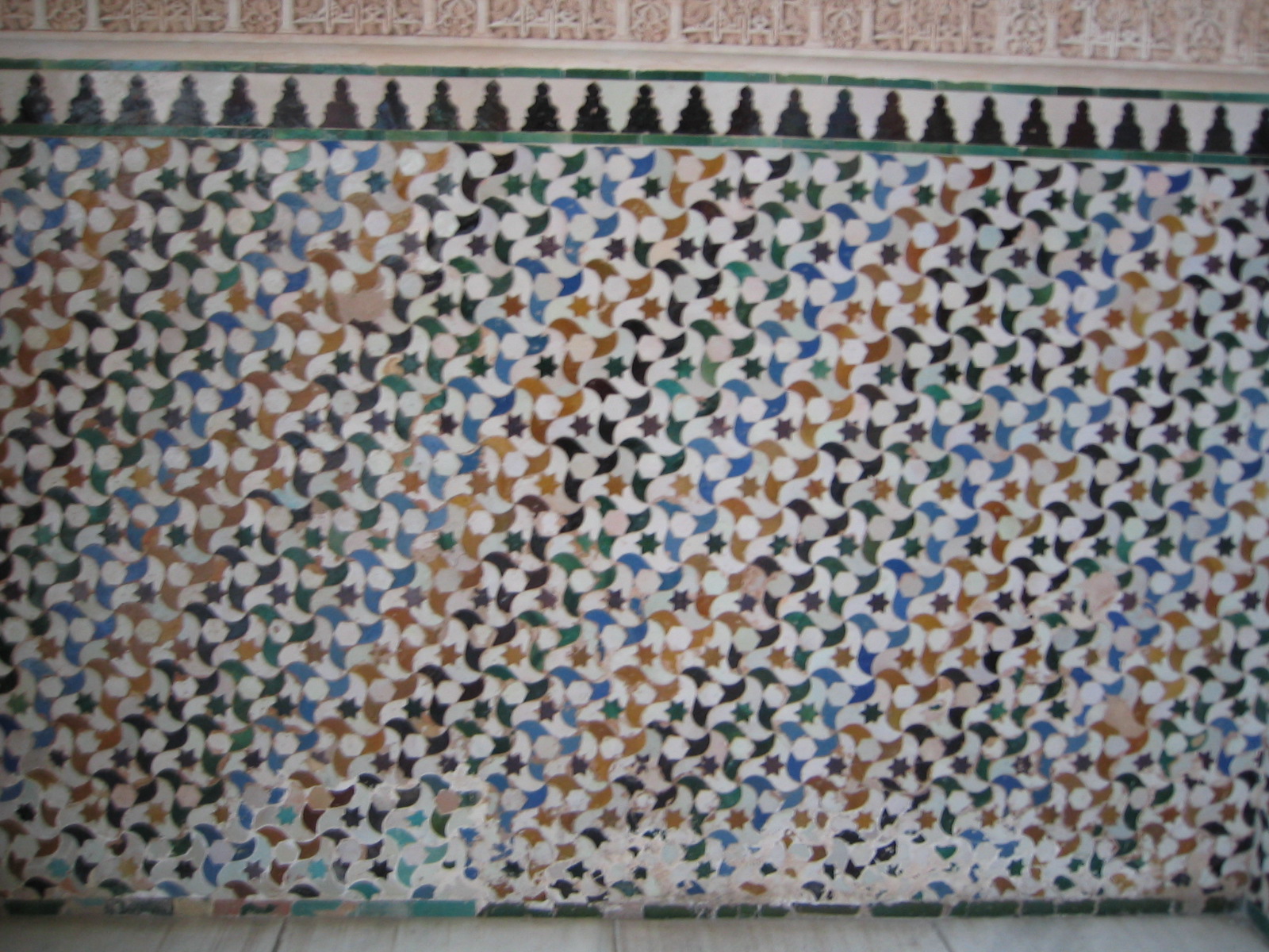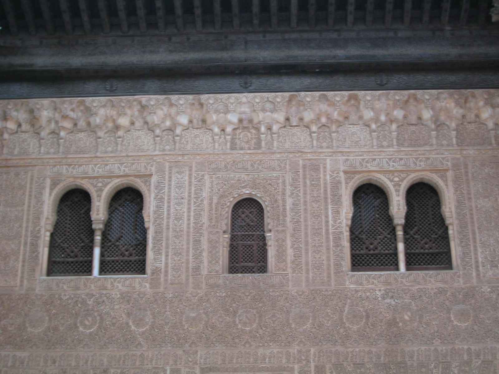 Les palais nasrides de l'Alhambra constituent un complexe de bâtiments ornementaux bâtis sur plusieurs générations. Les salles sont communicantes et donnent sur des cours intérieures ; elles suivent un tracé orthogonal.