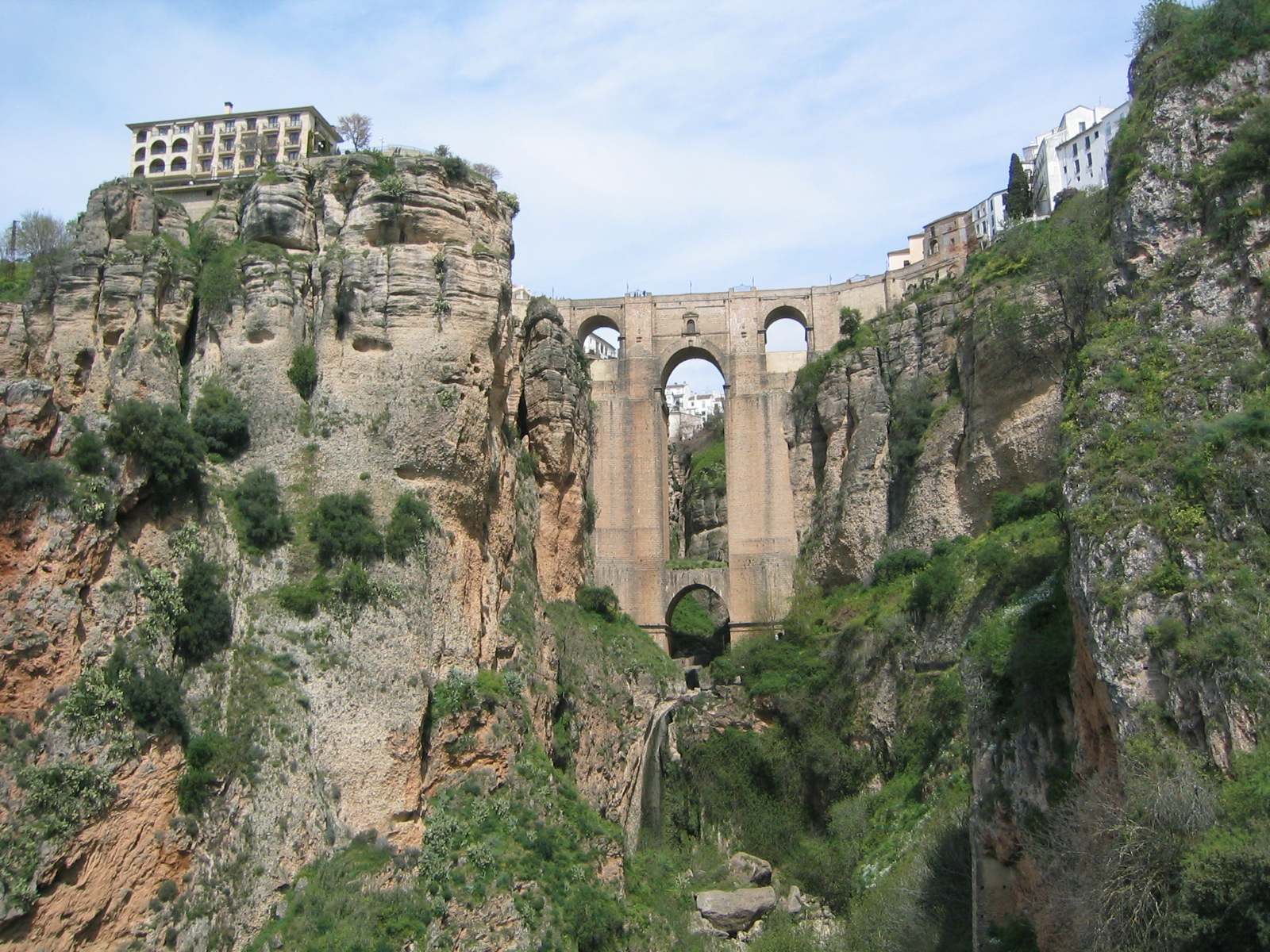 Le Pont Neuf (Puente Nuevo) de Ronda, Malaga, fut construit entre 1759 et 1793. C’est le monument le plus emblématique de la ville. D’une grande prouesse technique, il conduit de la partie plus moderne de Ronda jusqu’à la vieille ville. Il domine la gorge du Tajo qui a plus de 100 mètres de profondeur. |