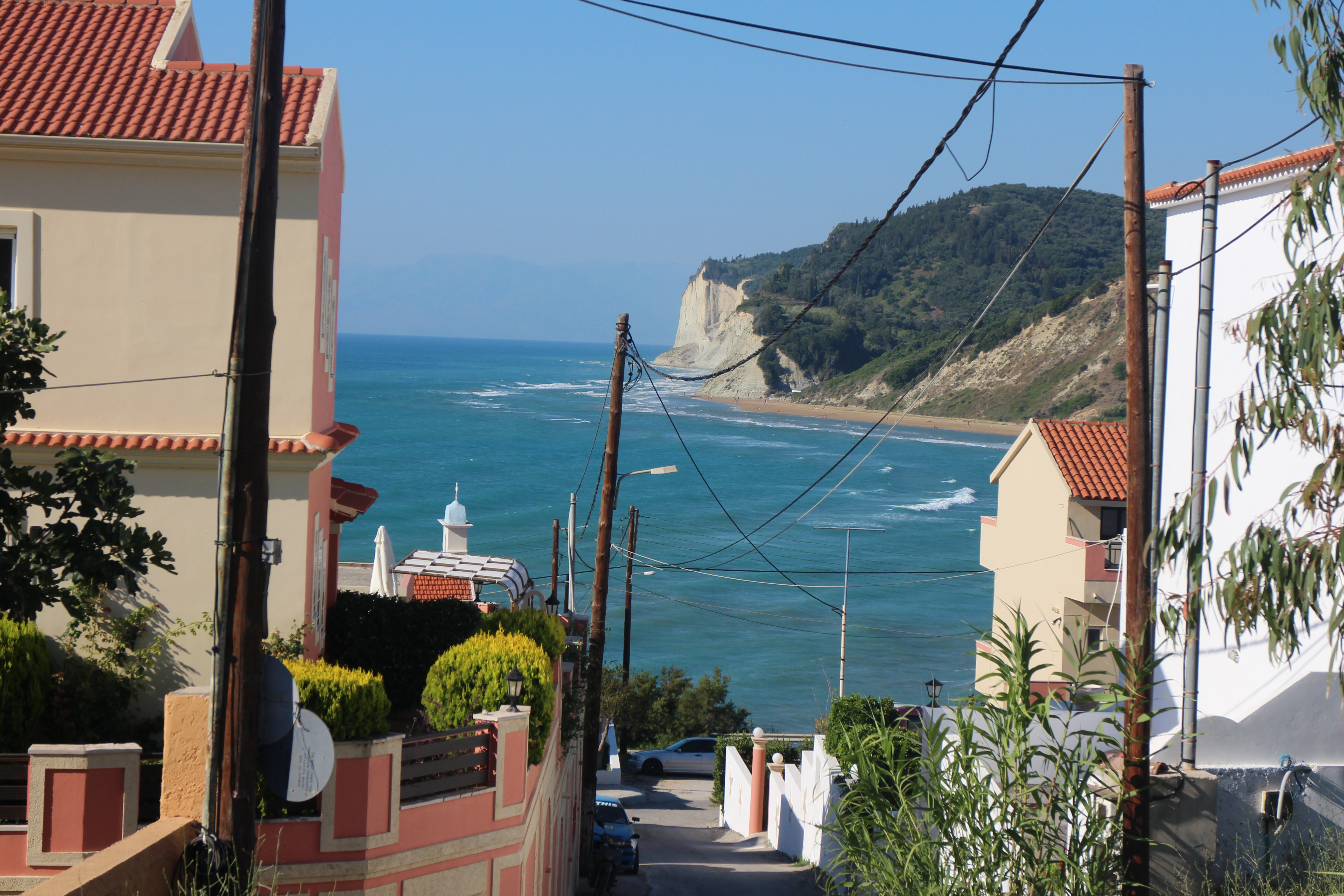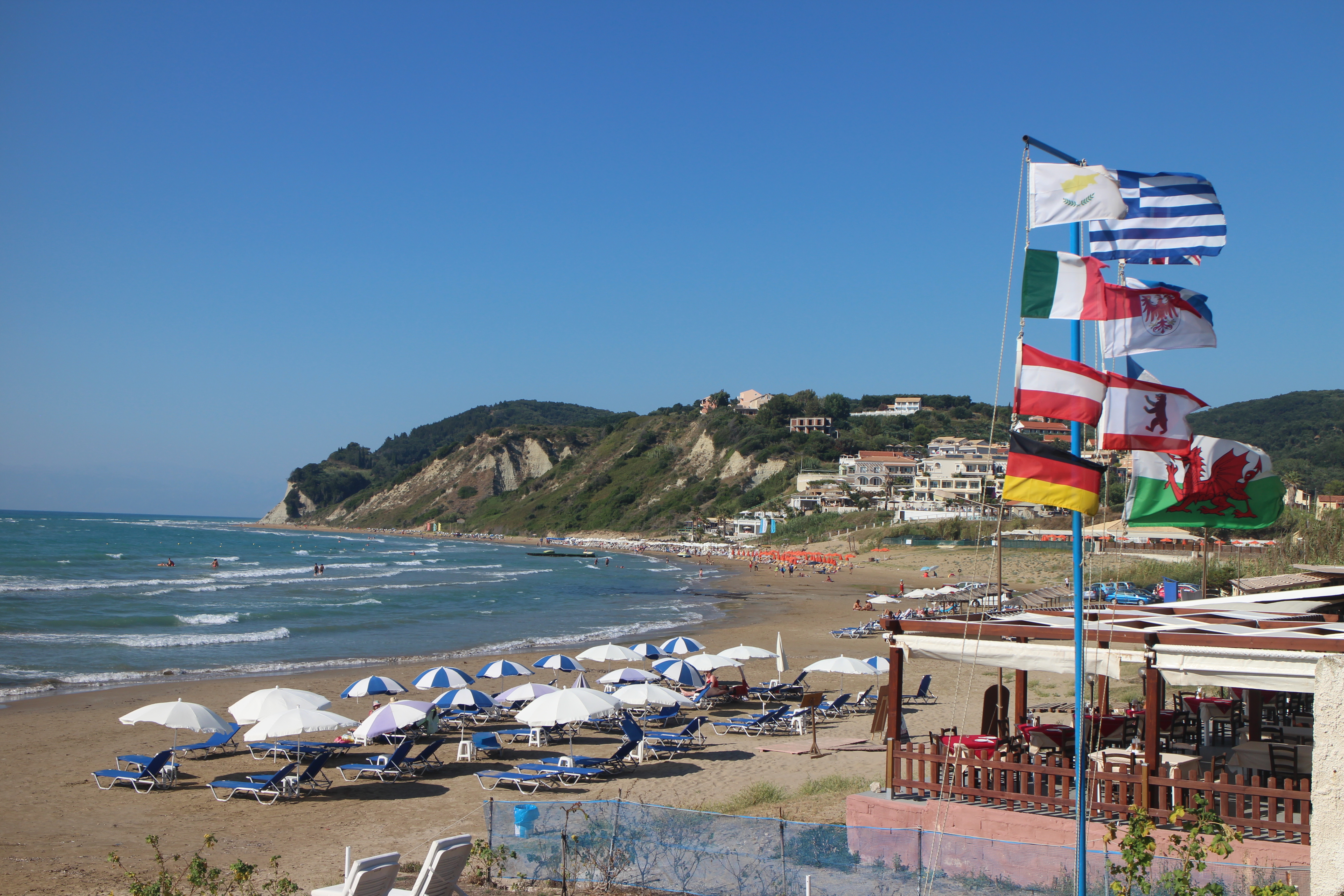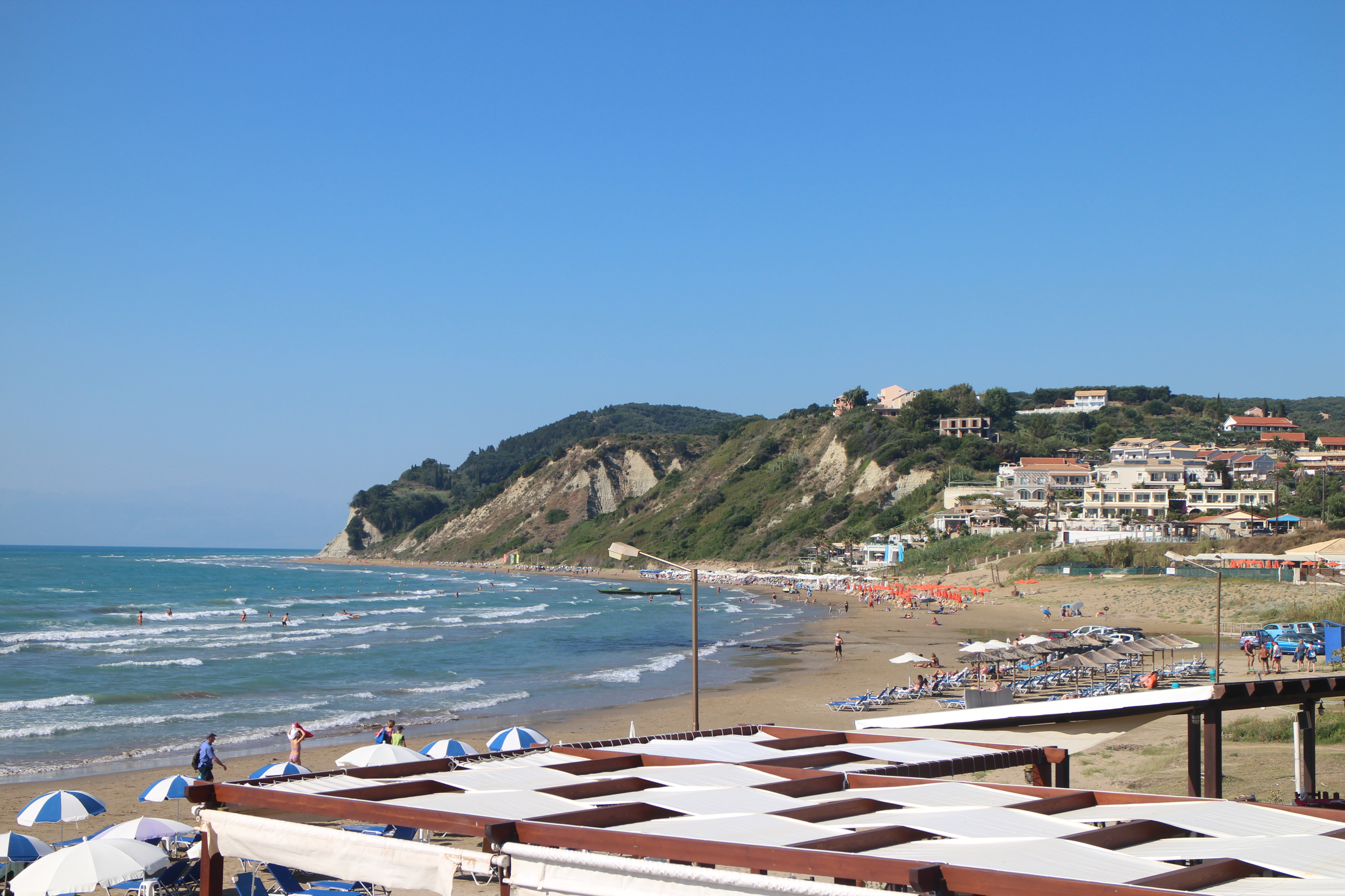 La plage d'Agios Géorgios est l'une des plus belles de l'île. Agios Géorgios est devenue une petite station balnéaire |