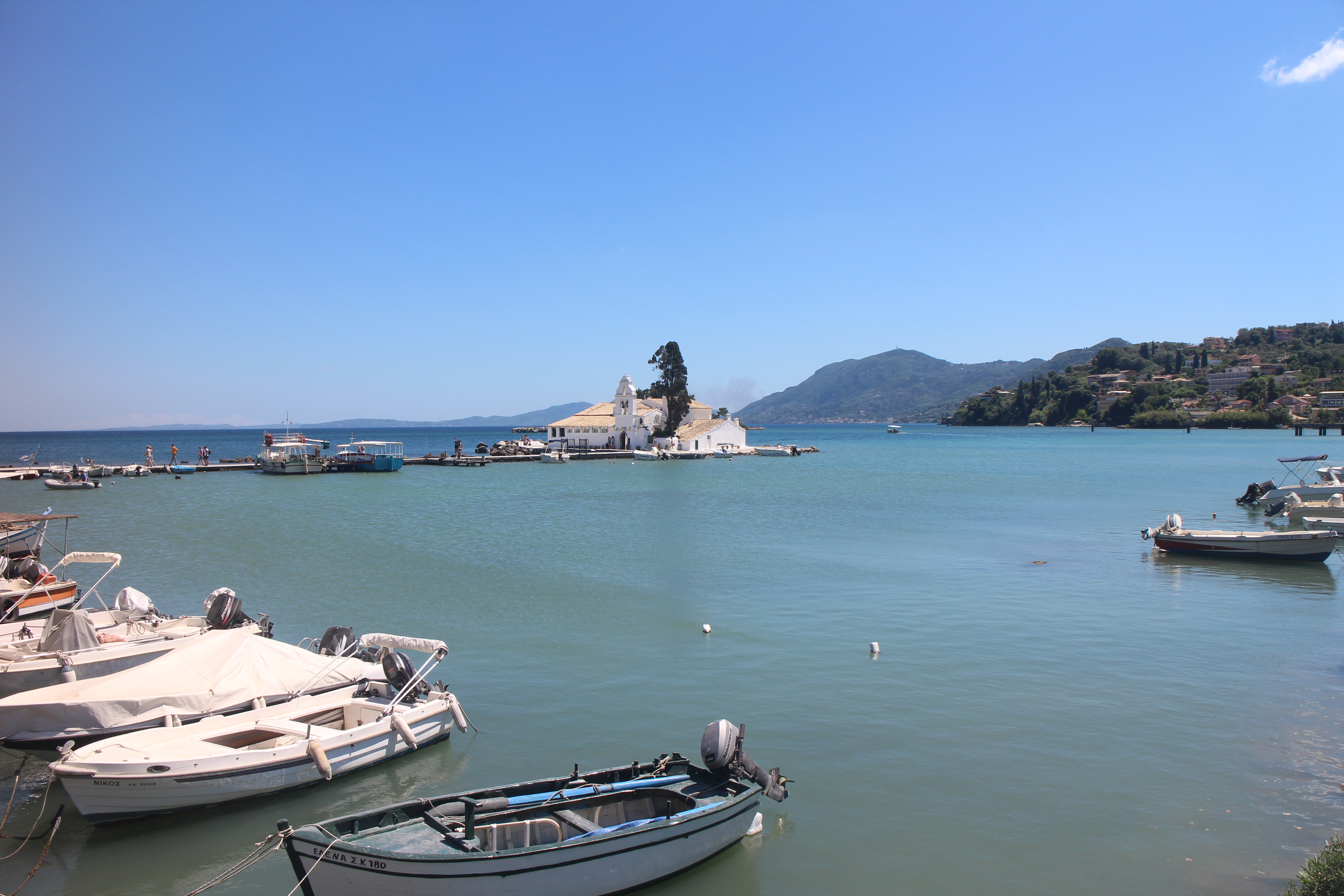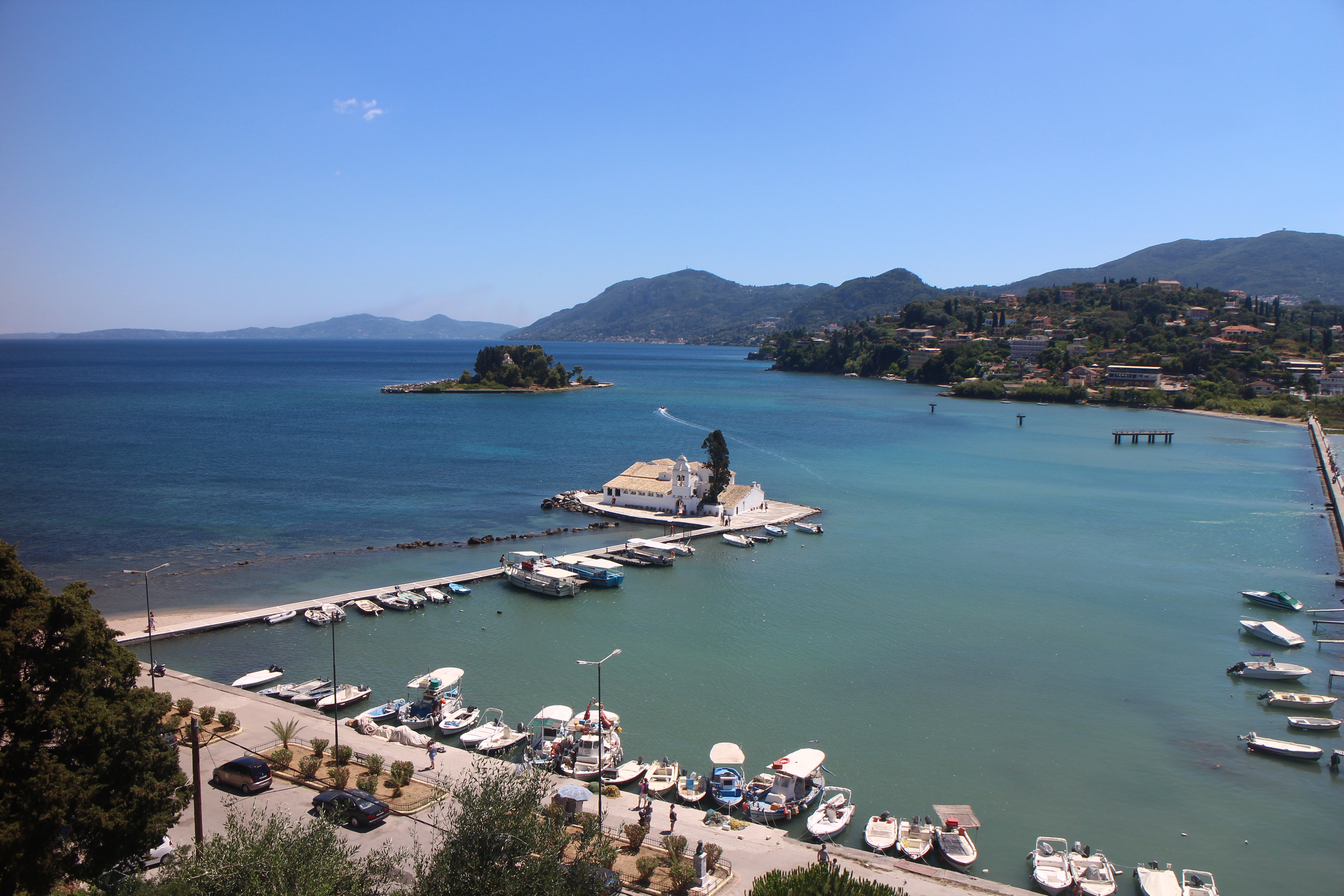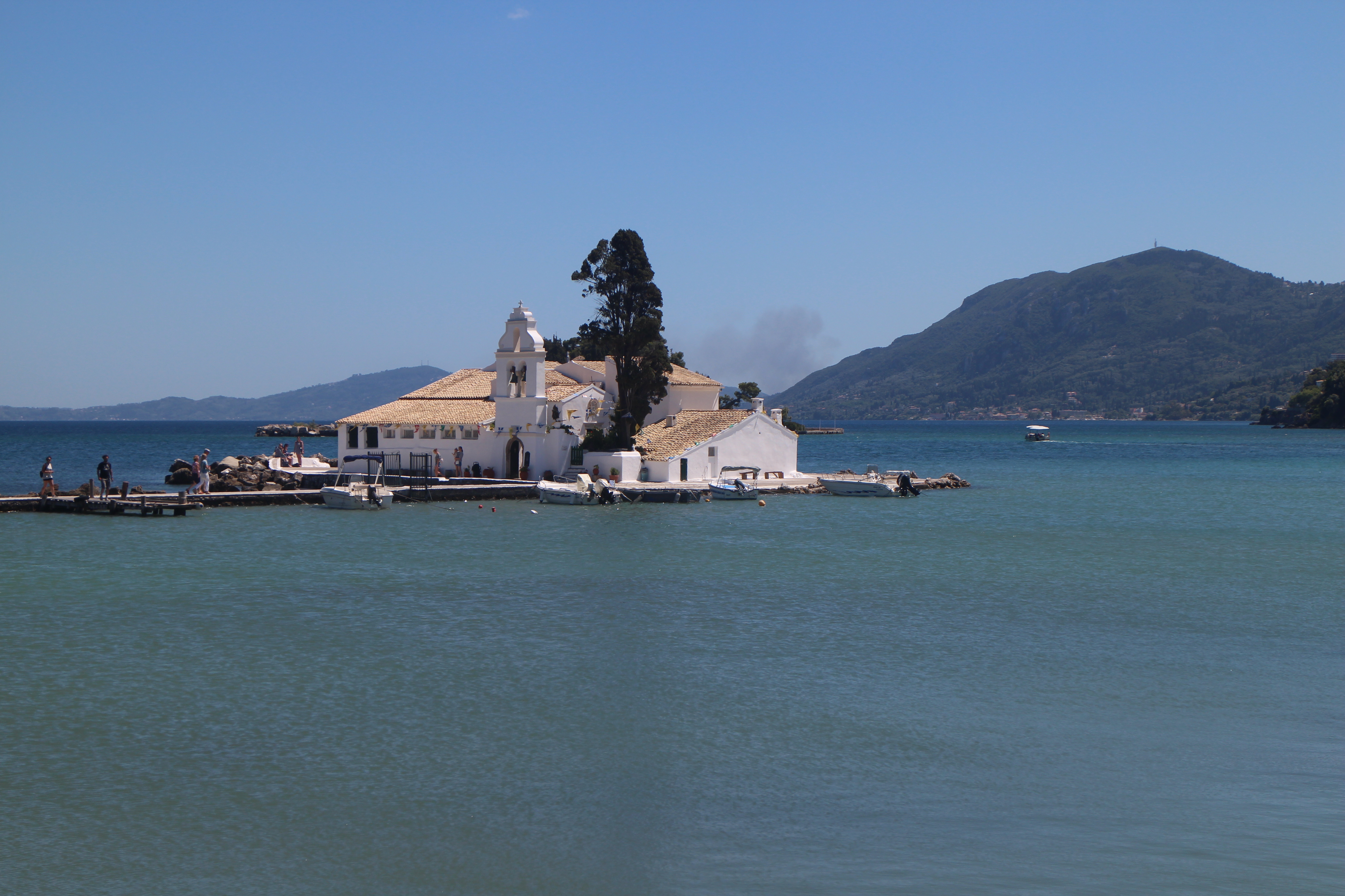 Ce monastère est fondé au cours du XVIIe siècle, sur un îlot relié par une jetée piétonne de 300 m à la côte est de l'île de Corfou, avec son architecture gréco-byzantine locale en murs blanchis à la chaux et tuile canal. Le site se situe dans le prolongement de la piste principale de l'aéroport de Corfou, à environ 5 km au sud de la ville de Corfou. Le monastère