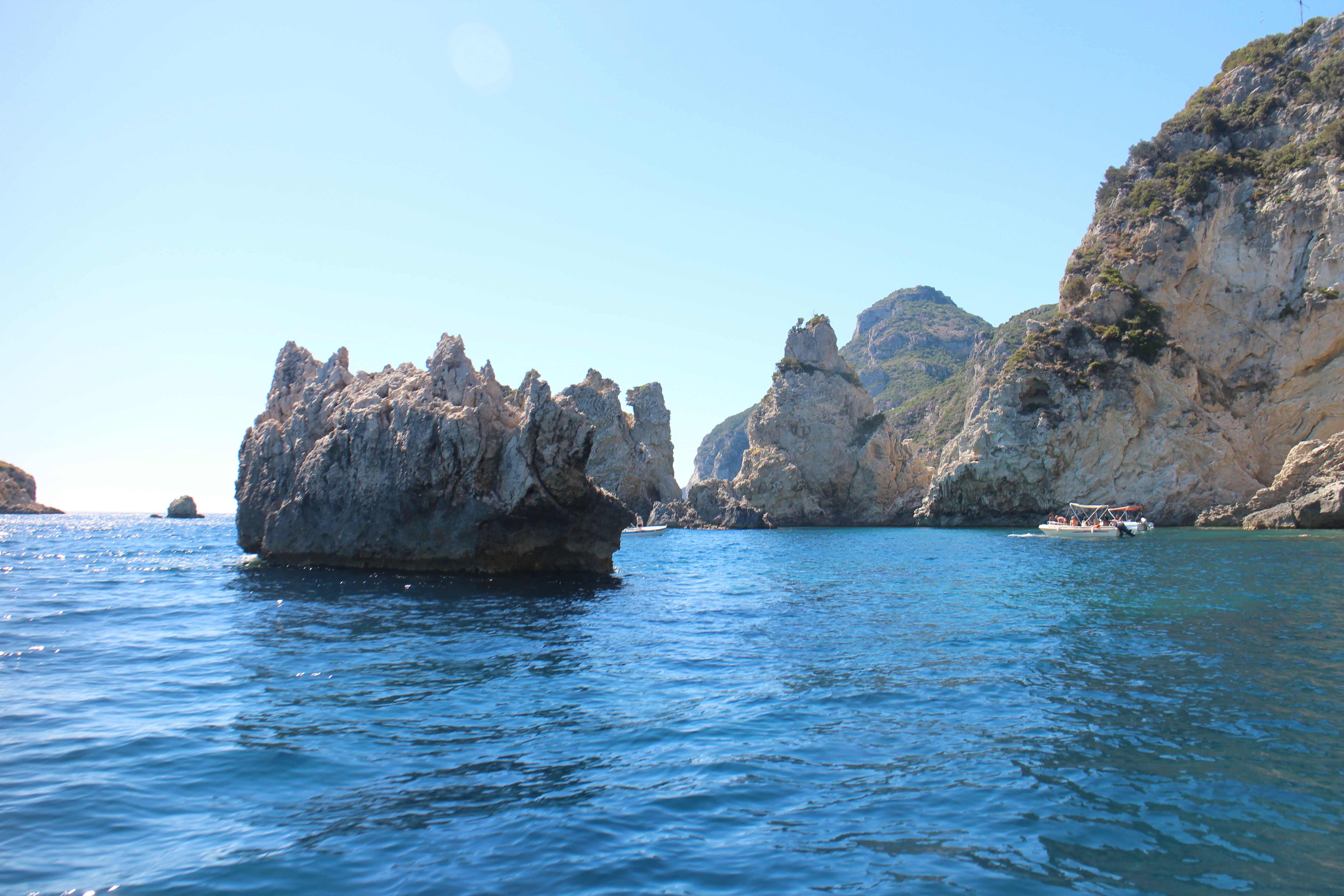 Palaiokastritsa est de la ville la plus célèbre de l’île de Corfou, à 26 kilomètres au nord-ouest de la ville de Corfou; elle offre de nombreux restaurants et tavernes agréables surplombant la baie et six plages de sable et de galets qui sont dispersées tout autour de la zone; ces plages sont entourées de forêts d’oliviers et sont célèbres pour leurs paysages spectaculaires et la beauté de leurs couleurs.