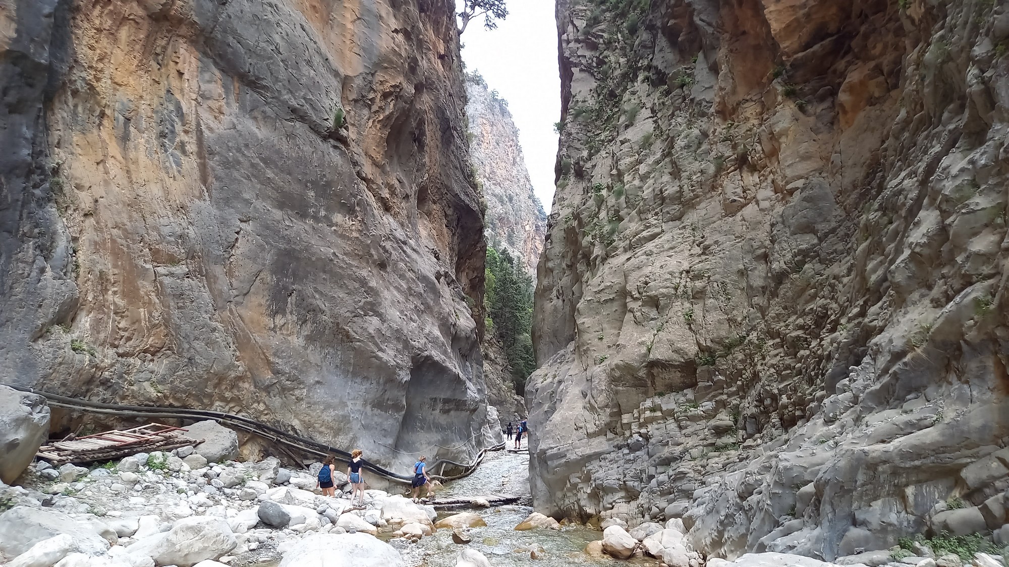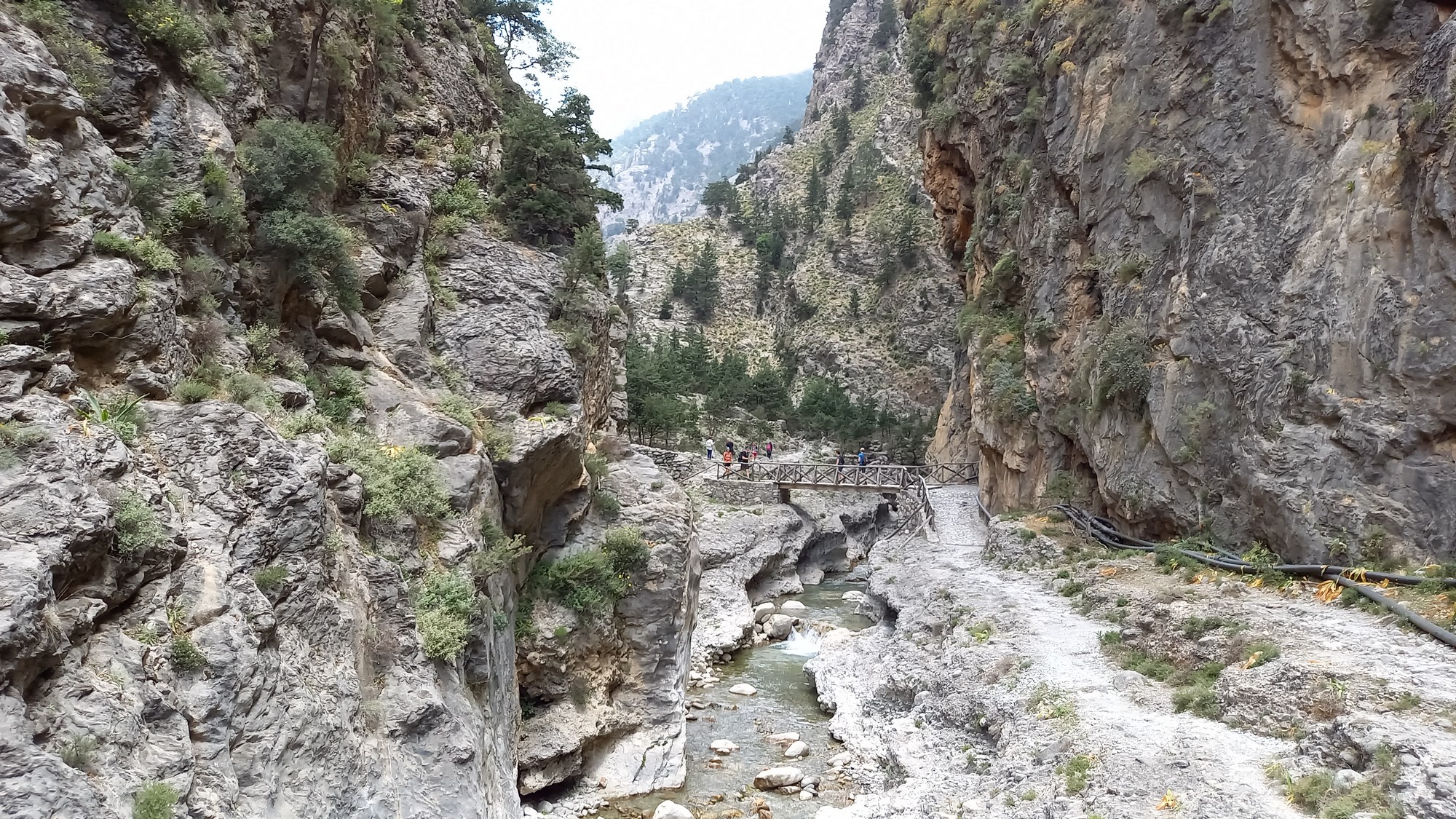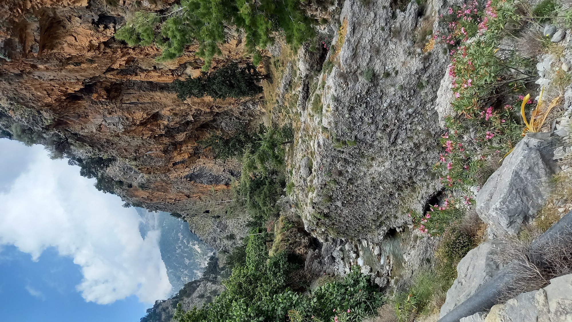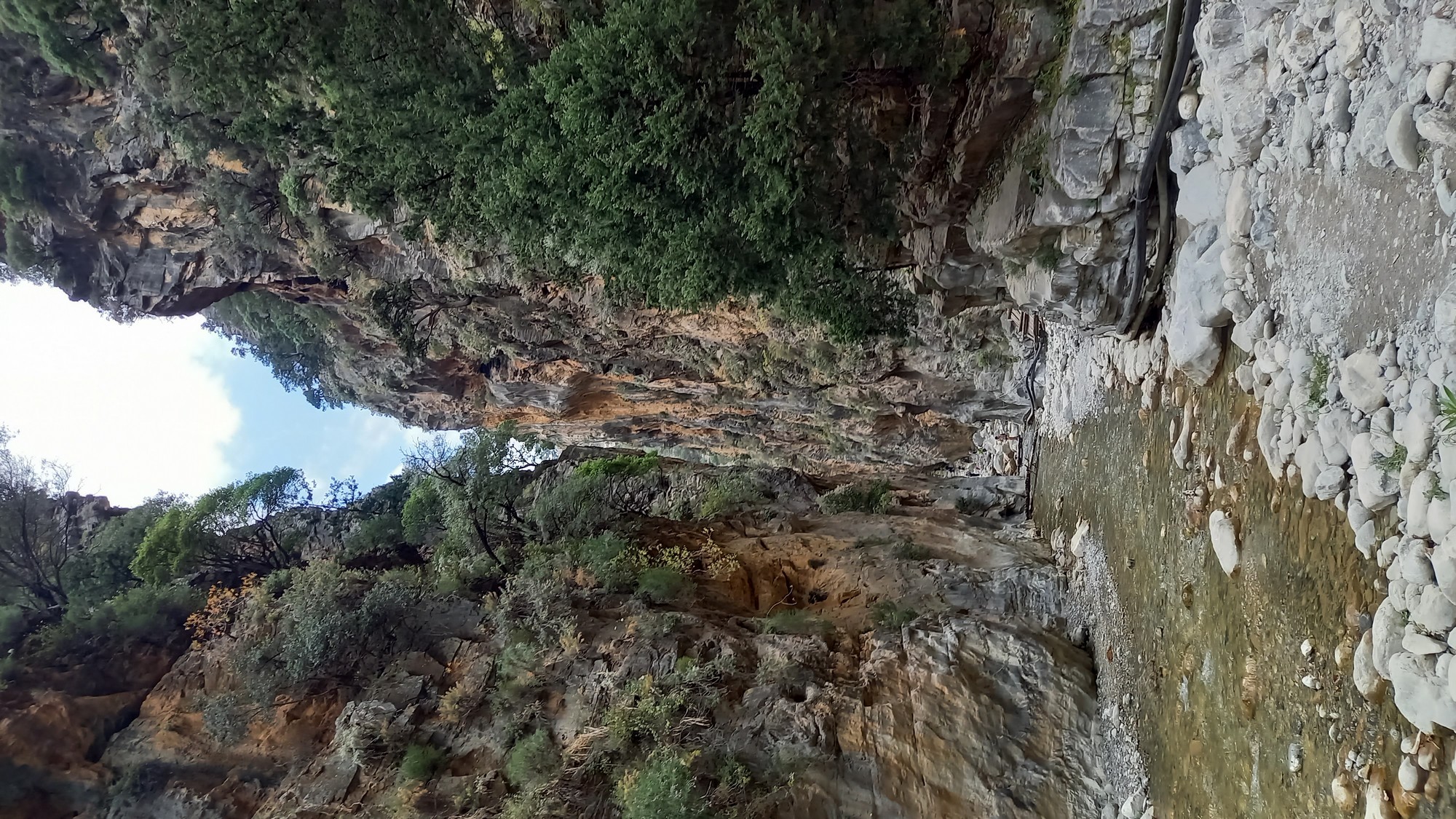 Les gorgesL'entrée du parc des gorges de Samaria se trouve à environ 1,5 km du port d'Agia Rouméli. Une navette peut y conduire. Il faut ensuite parcourir à pied environ 3 km pour accéder à la porte de fer (la partie la plus étroite des gorges : 3 ou 4 m de large pour une hauteur de 300 m).