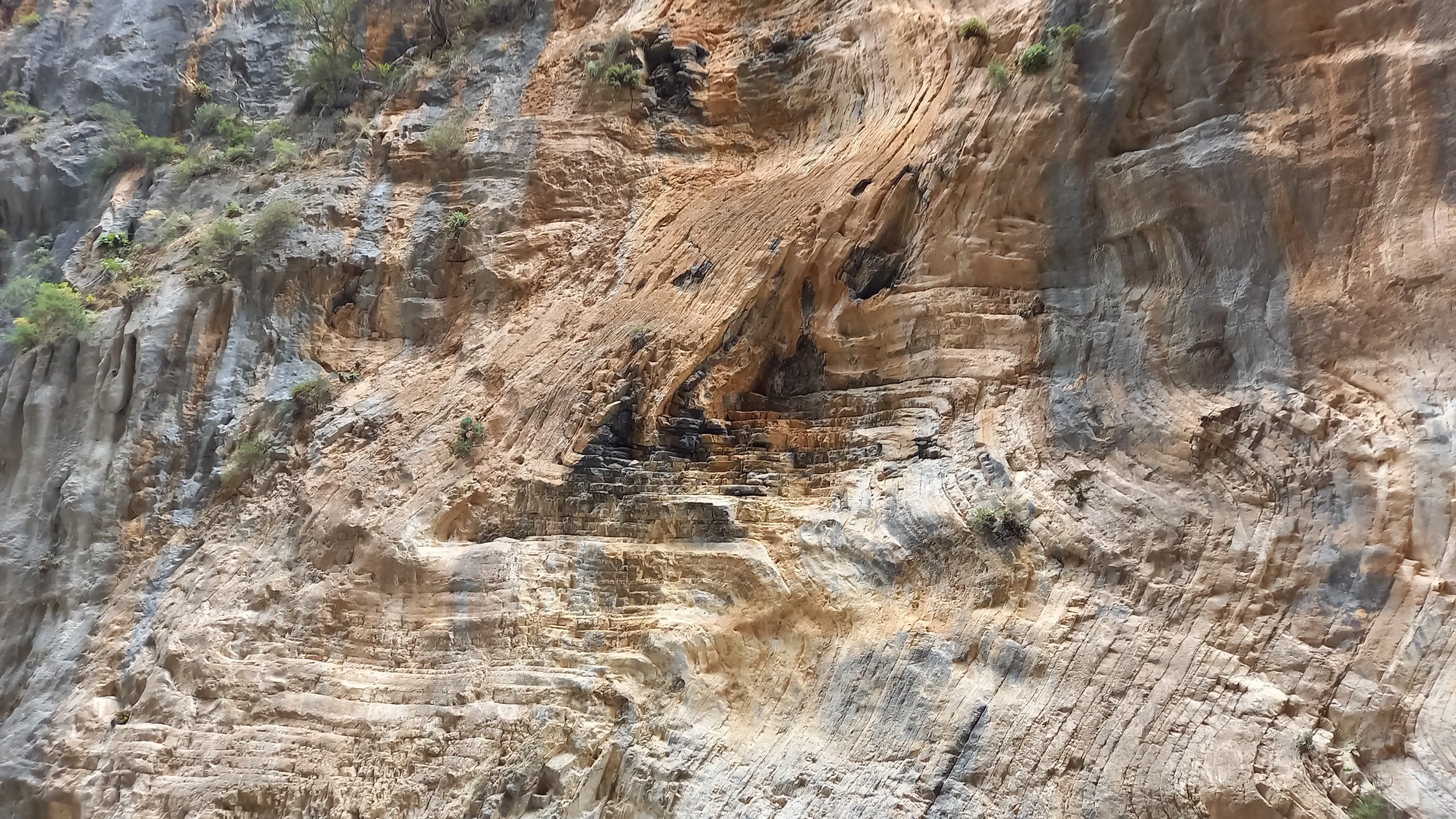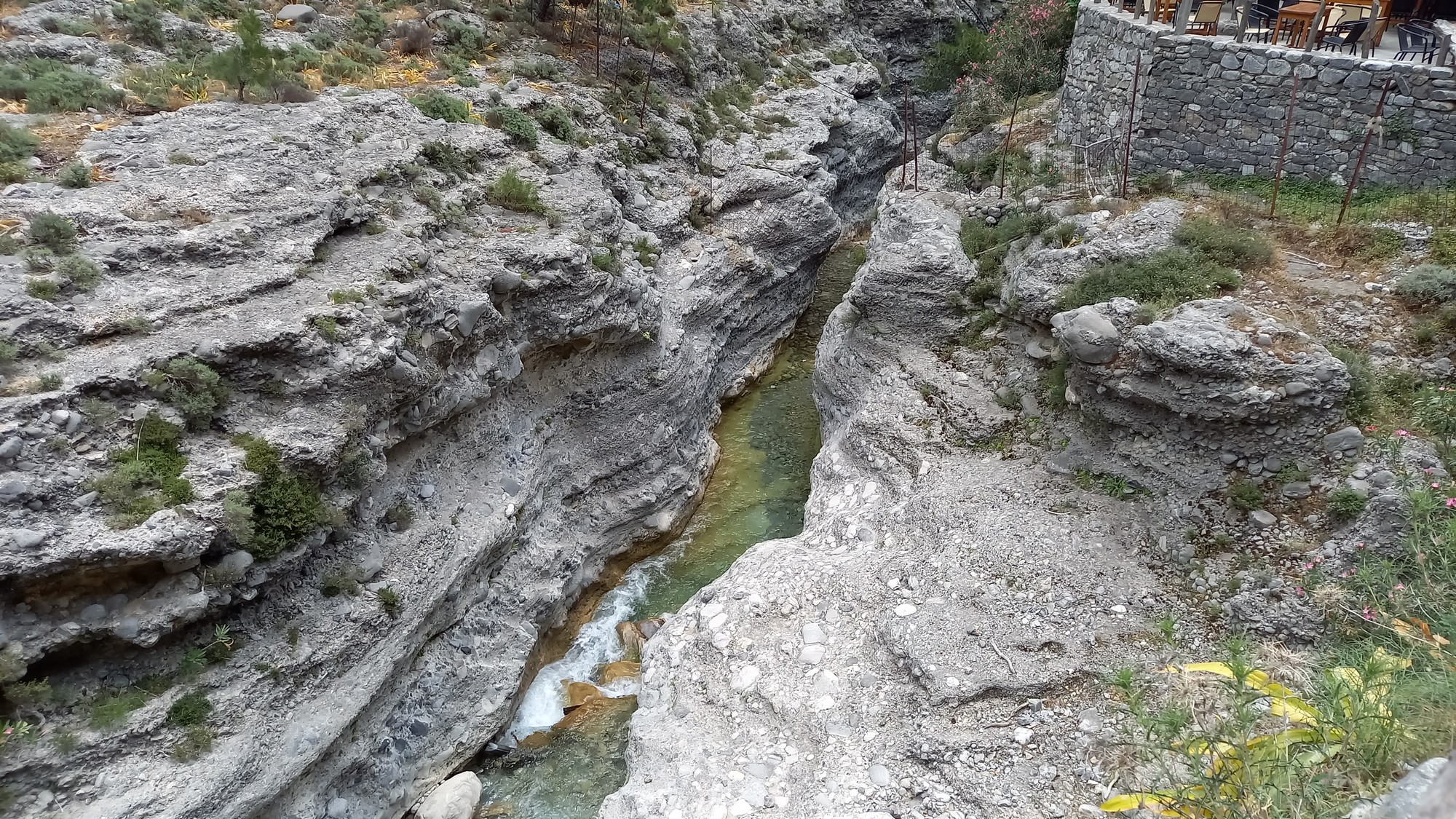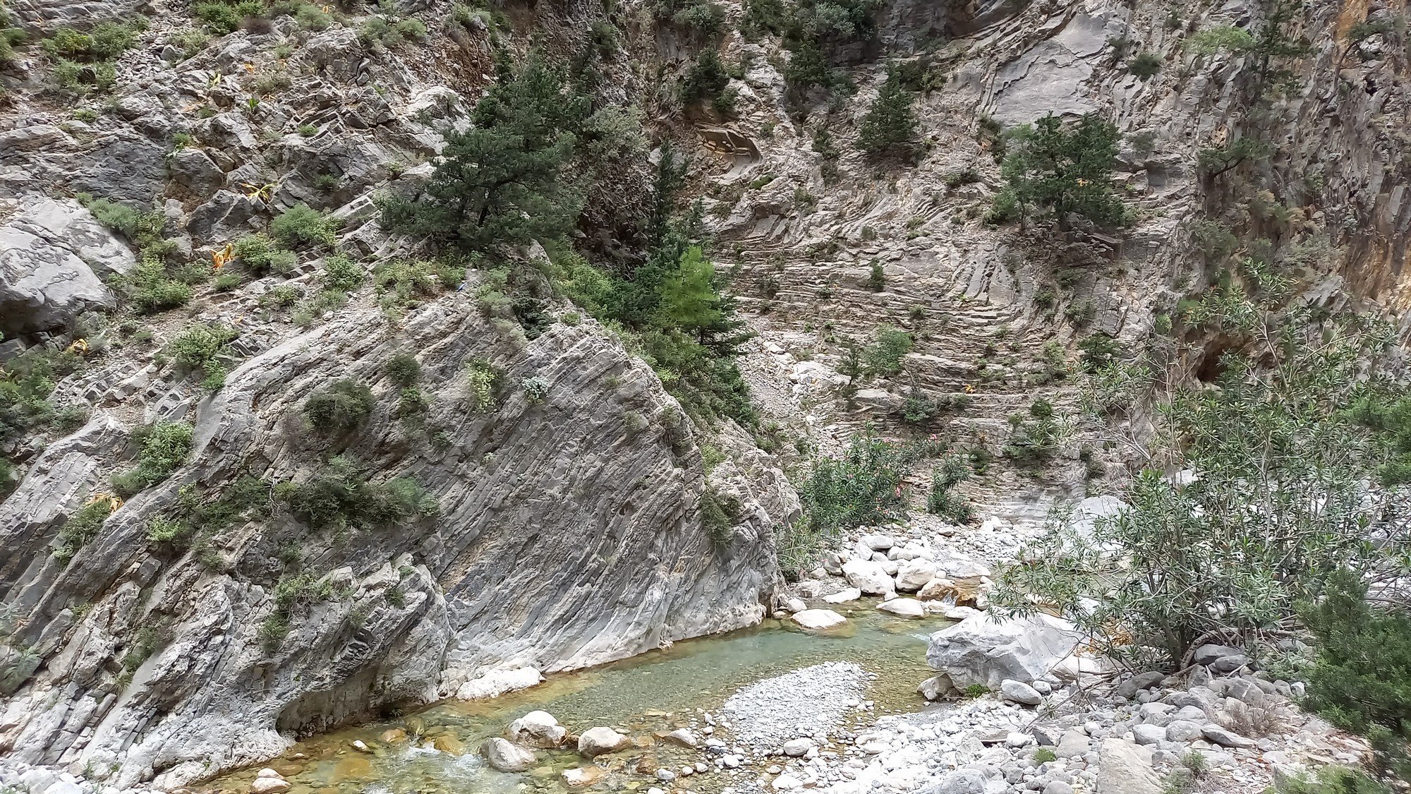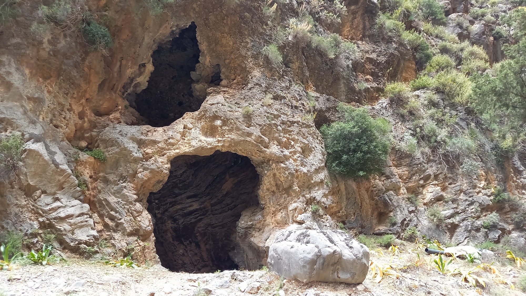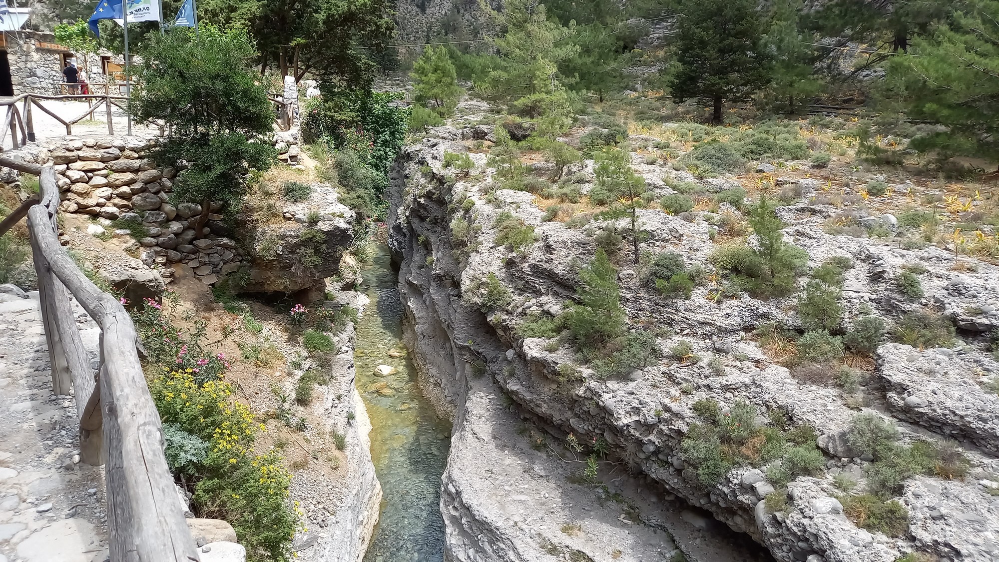 Les gorgesL'entrée du parc des gorges de Samaria se trouve à environ 1,5 km du port d'Agia Rouméli. Une navette peut y conduire. Il faut ensuite parcourir à pied environ 3 km pour accéder à la porte de fer (la partie la plus étroite des gorges : 3 ou 4 m de large pour une hauteur de 300 m).