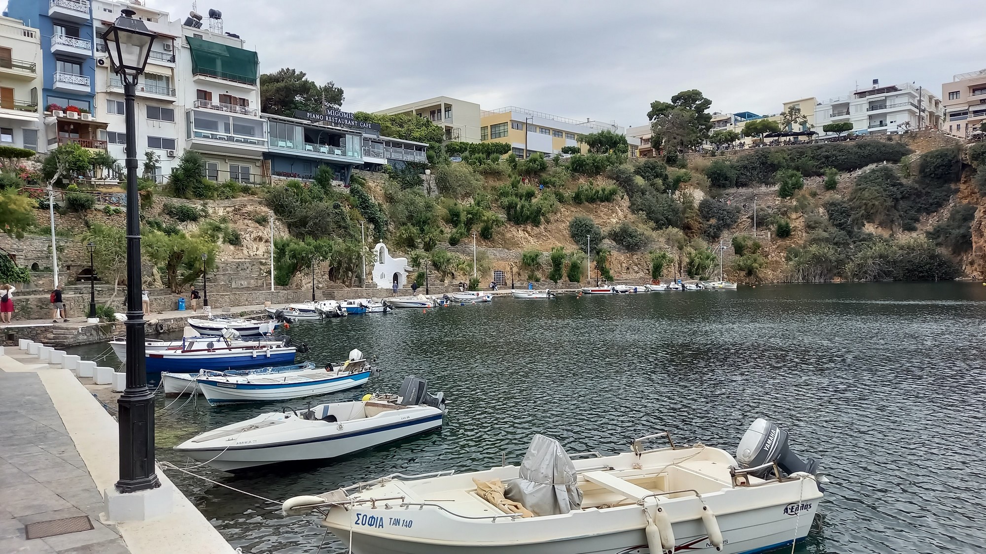 Ville côtière située à l’est d'Héraklion à environ 64 km. Au centre-ville, non loin des rues piétonnes et commerçantes, se trouve le lac Voulismeni (64 m de fond). Ce bassin est bordé de cafés, de tavernes et de boutiques. |