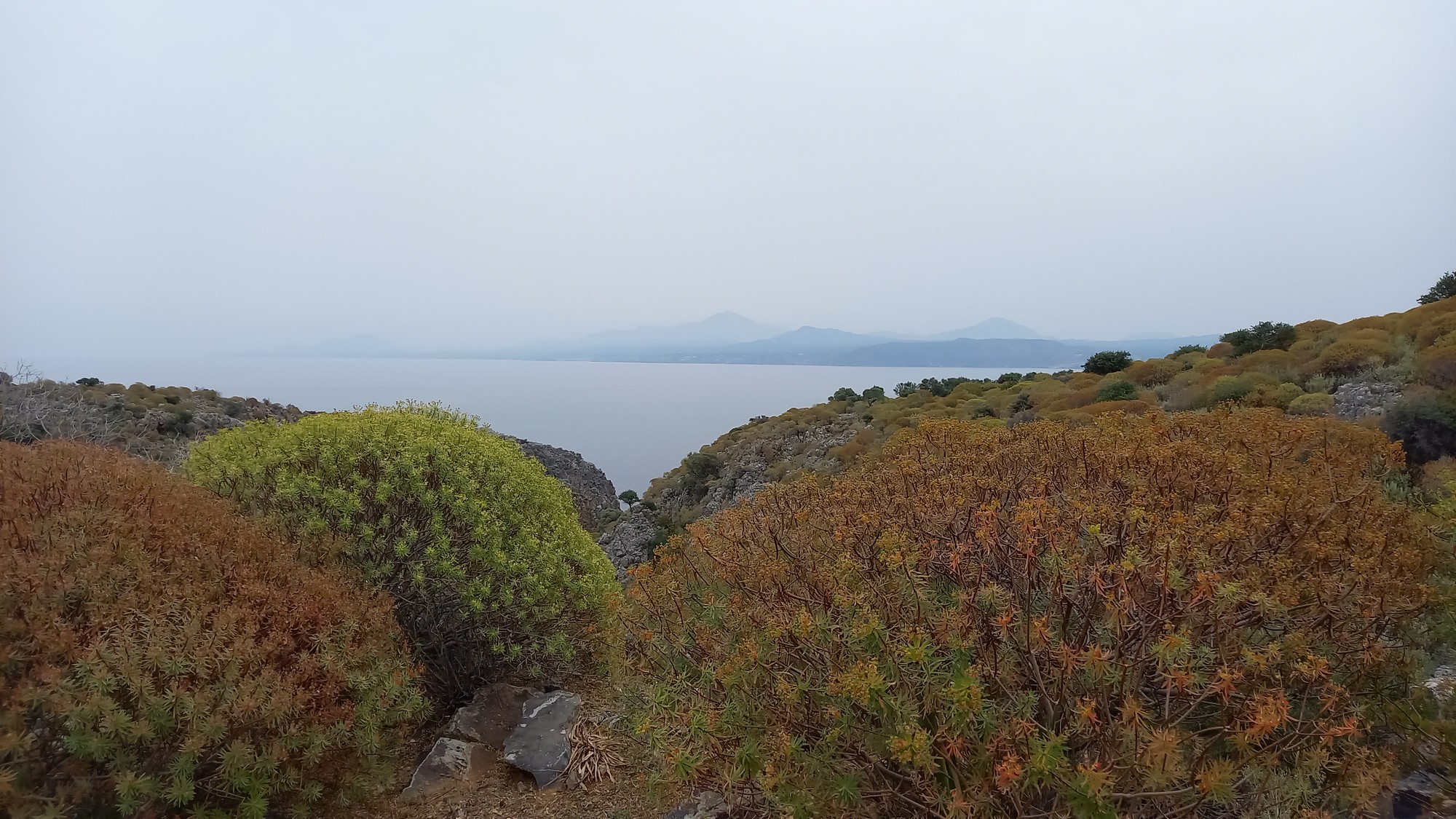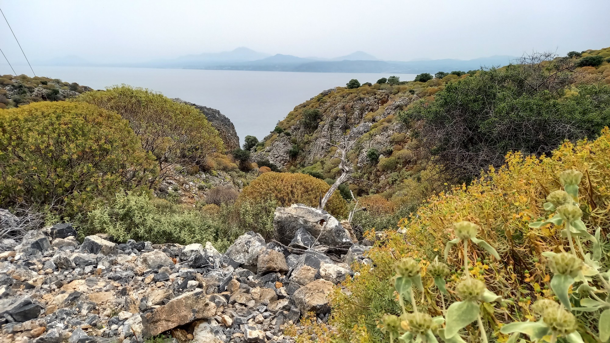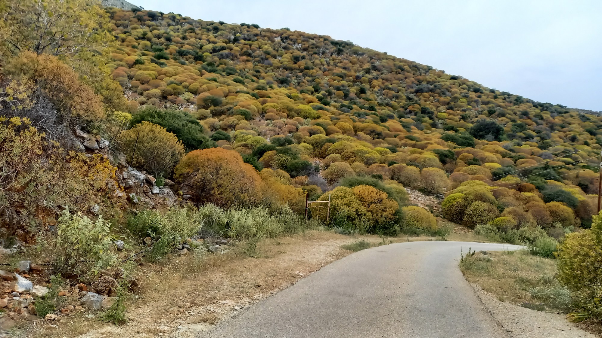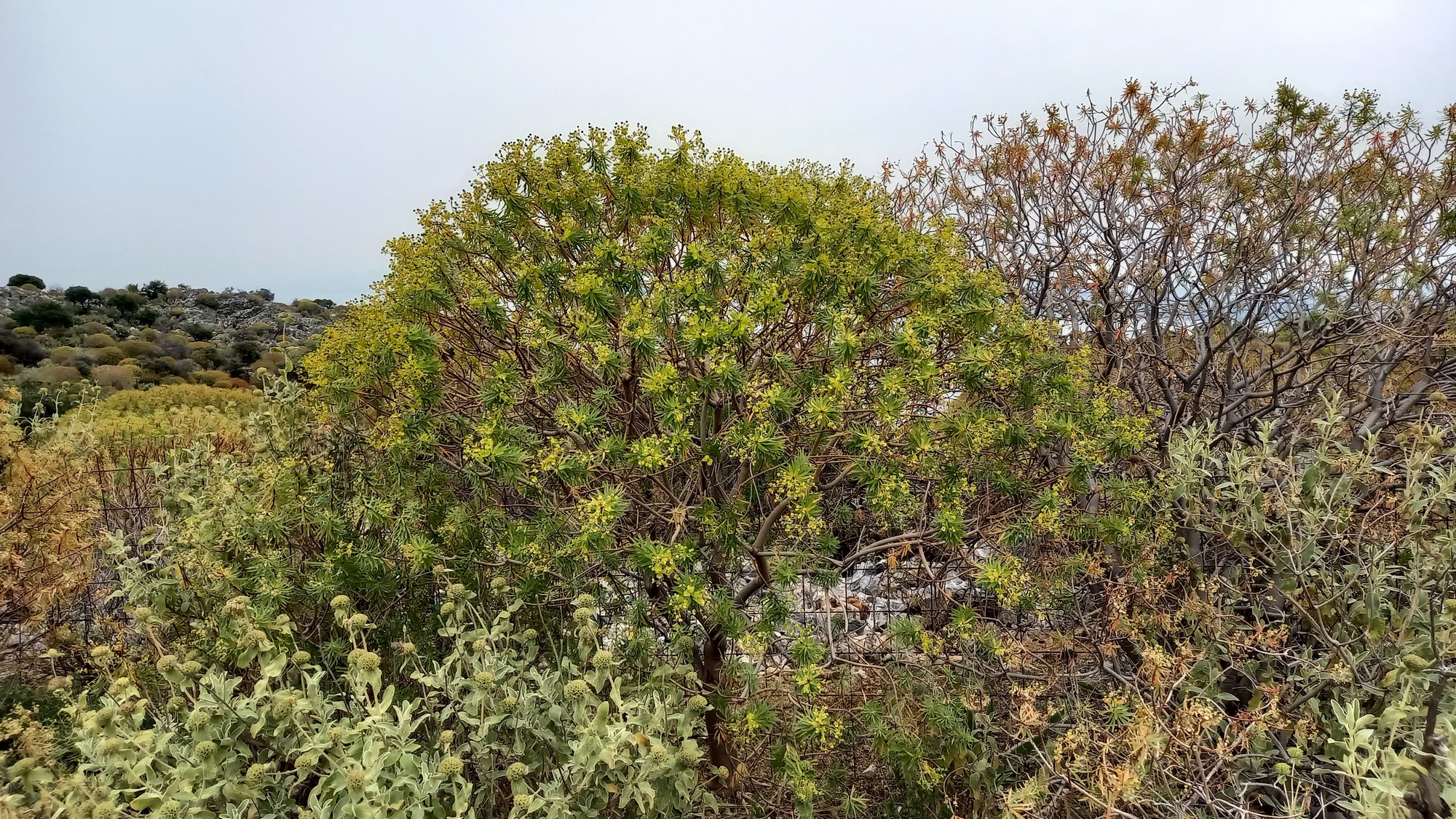 Ombrosgialos C'est une crique sauvage, peu fréquentée, s'ouvrant sur la côte rocheuse. La route d'accès, plongeant littéralement en direction de la mer, est superbe et il y a des arbres "arrondis" (des euphorbes) partout.