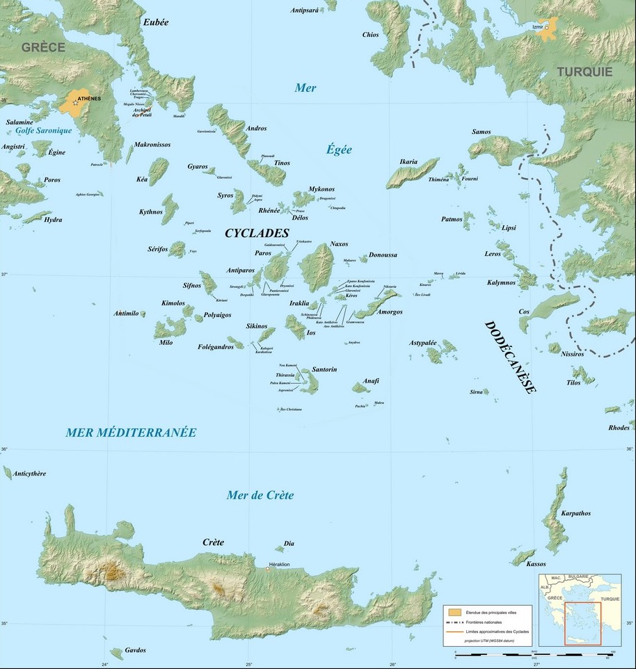 Les Cyclades et la Crète La Crète est une île au sud des Cyclades (les îles de la mer Egée entre la Grèce continentale et la Turquie) La crète