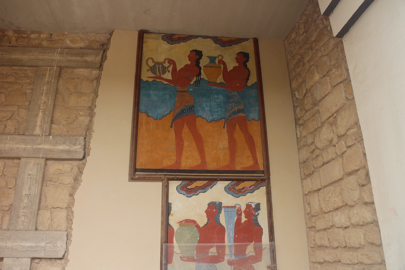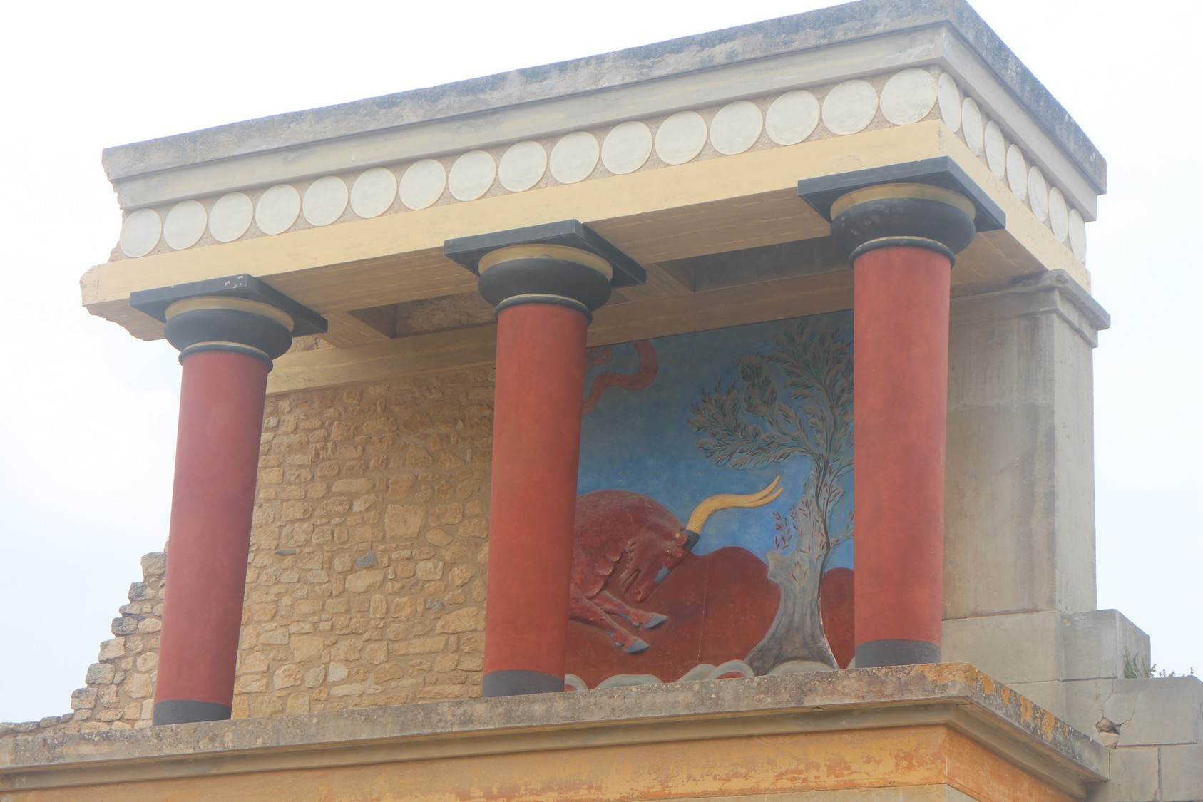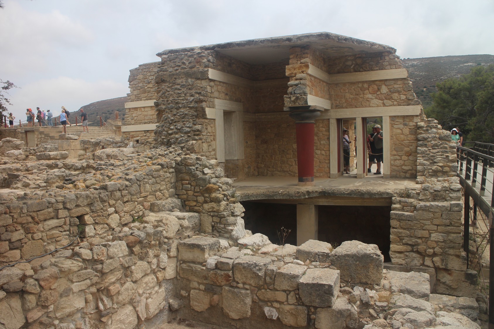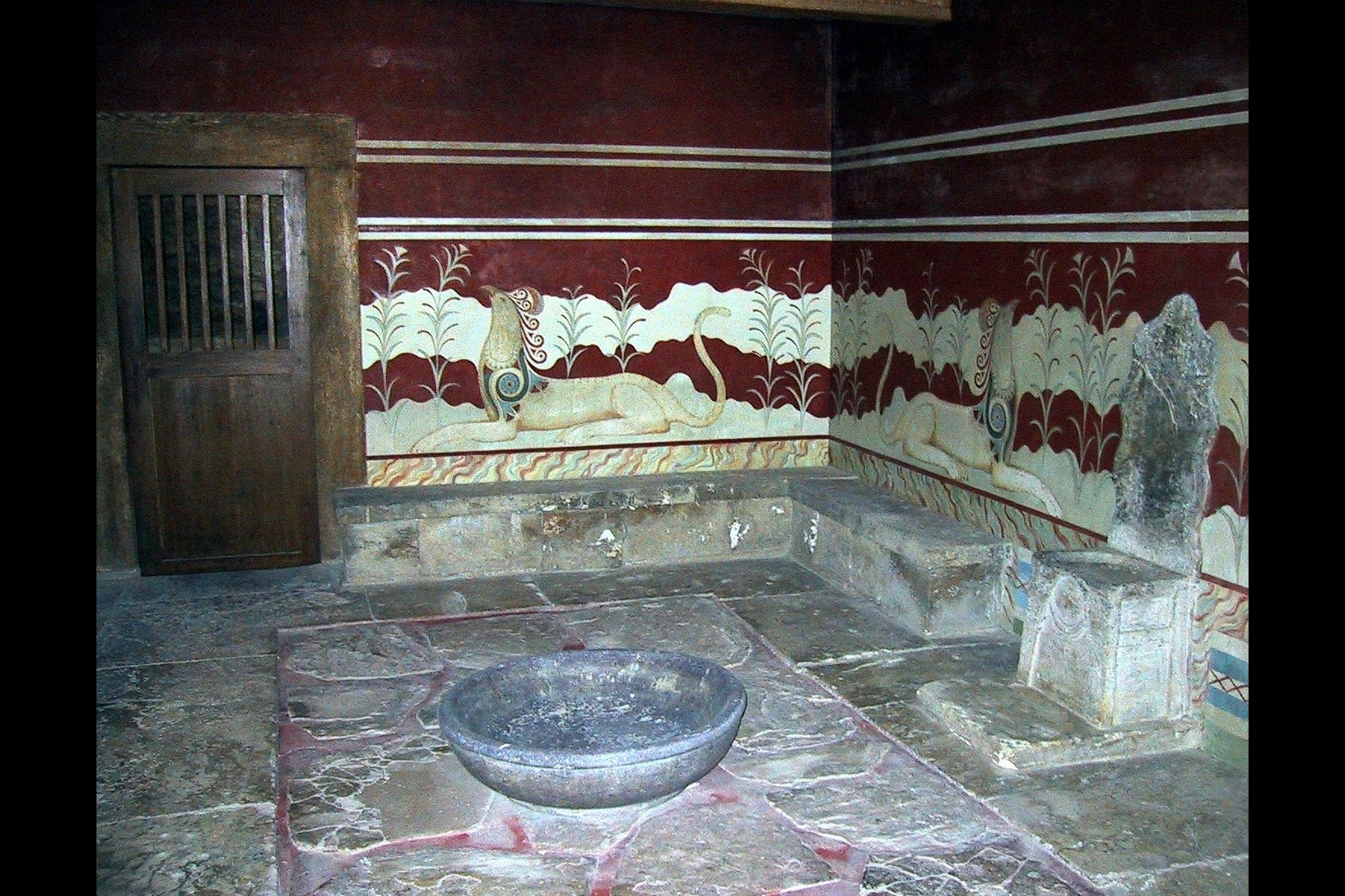 Site archéologique de Knossos (ou Cnossos) près d'Héraklion. C'est aujourd'hui le plus important des palais minoens crétois, il a été découvert en 1878. Associé à la légende du palais du roi Minos, le site, occupé depuis 7000 av. J.-C., fut probablement la capitale de la Crète lors de la période minoenne. Un archéologue britannique, Arthur Evans, achète l'ensemble du site et entame des fouilles de grande envergure. Utilisant des paysans locaux comme fouilleurs, Evans a mis au jour en quelques mois une partie importante d'un ensemble qu'il a considéré être le palais de Minos. En réalité, Cnossos est un ensemble complexe de plus de 1 000 pièces imbriquées et servait à la fois de centre administratif et religieux, mais aussi de centre de stockage de denrées. Plan du site