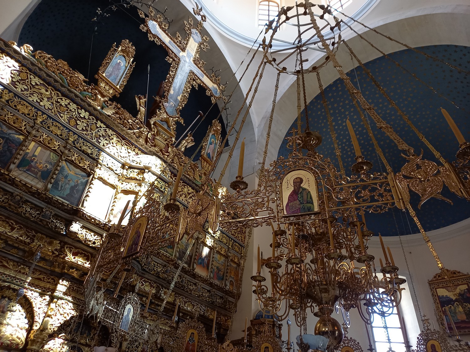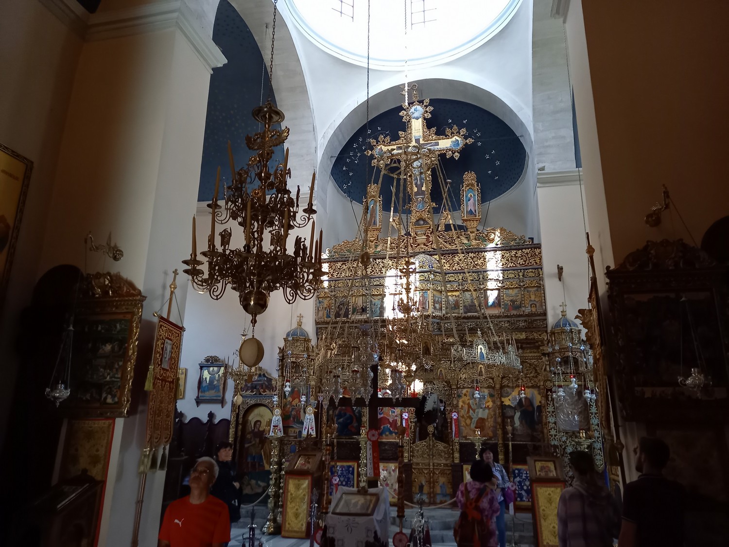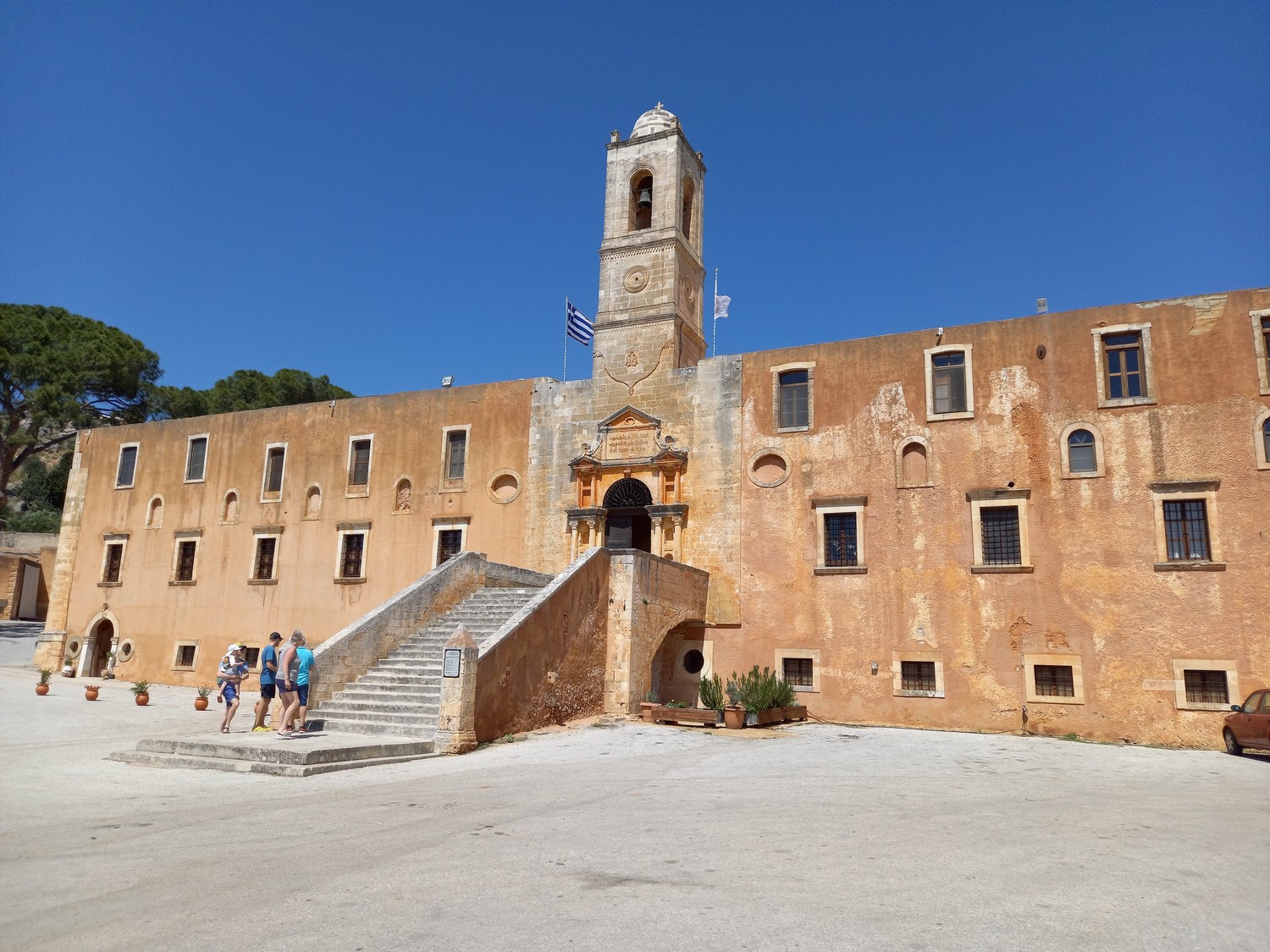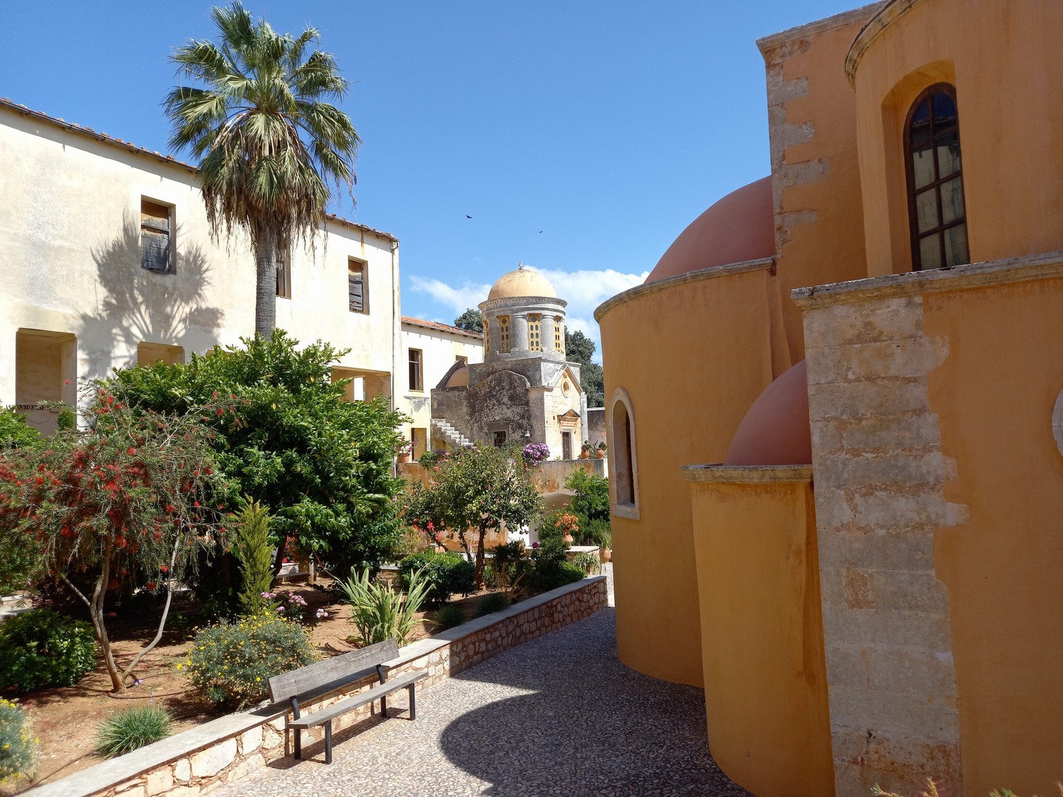 La péninsule d'Akrotiri Cette péninsule se situe à proximité de La Canée. Dans ses collines du nord-est, se trouve un des sites remarquables : le monastère d'Agias Triadas avec sa belle église à plusieurs dômes qui date du XVII ème siècle. Bâtiments du monastère