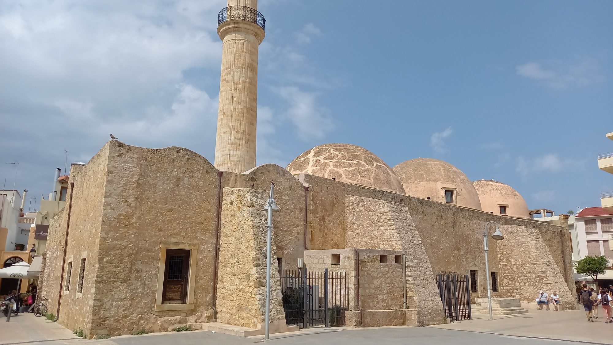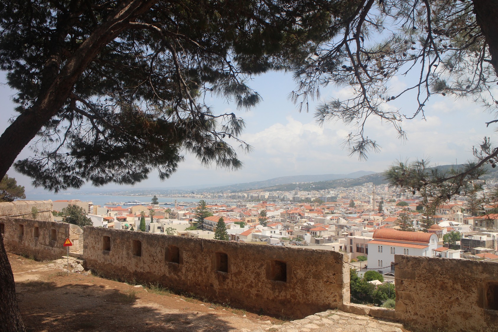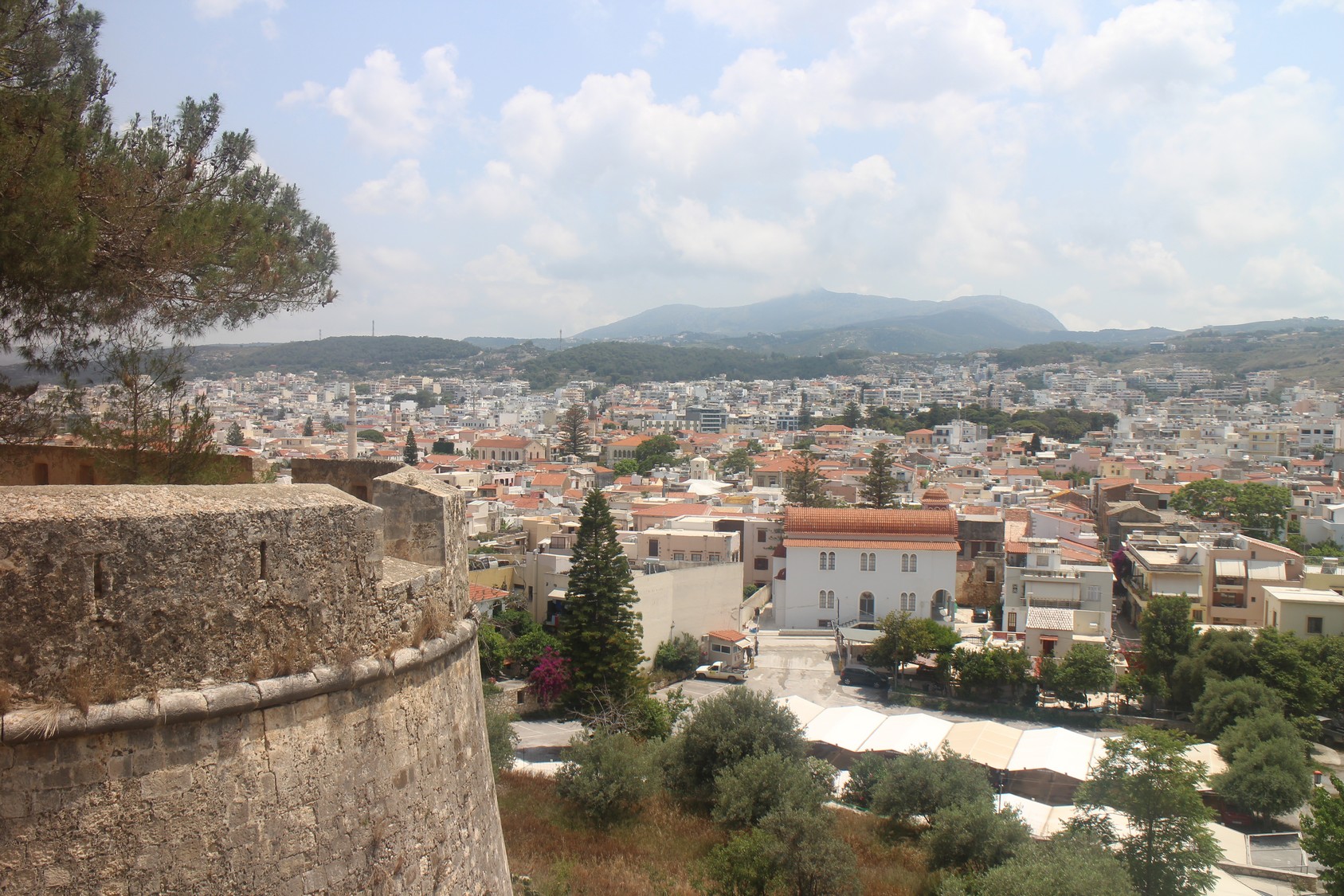 La Citadelle vénitienneConstruite entre 1573 et 1580, elle épouse la colline de Paleokastro en formant une couronne de 1300 m de diamètre d'où l'on domine toute la ville : le panorama splendide englobe la mer et les montagnes. Elle servit d'abri à tous les habitants lors du siège de 1646 (par les Turcs). Son enceinte, renforcée par quatre bastions, abritait des bâtiments publics, pour la plupart détruits. Il reste des caves voutées des magasins ainsi que la mosquée du sultan Ibrahim Han. Cette dernière, édifiée à l'emplacement de la cathédrale St Nicolas, a conservé son Mihrab et possède l'une des plus grandes coupoles de Grèce.
