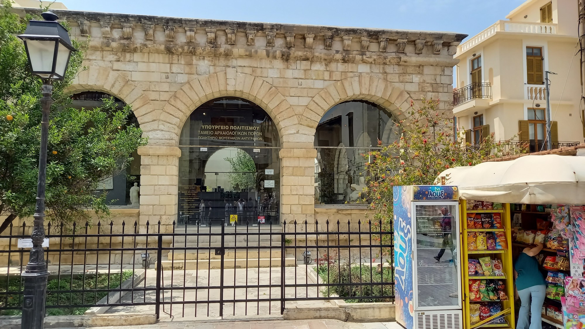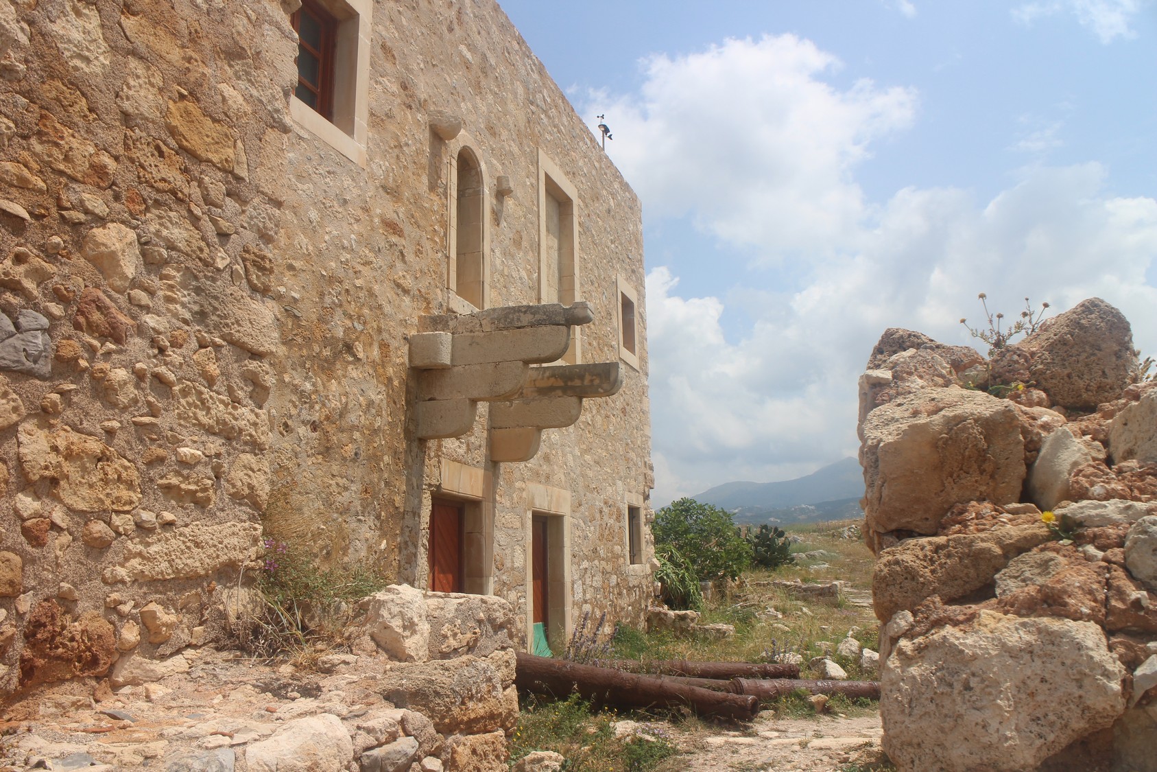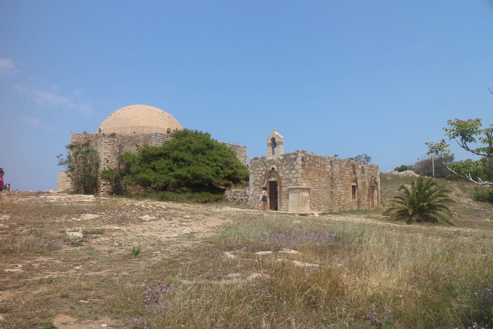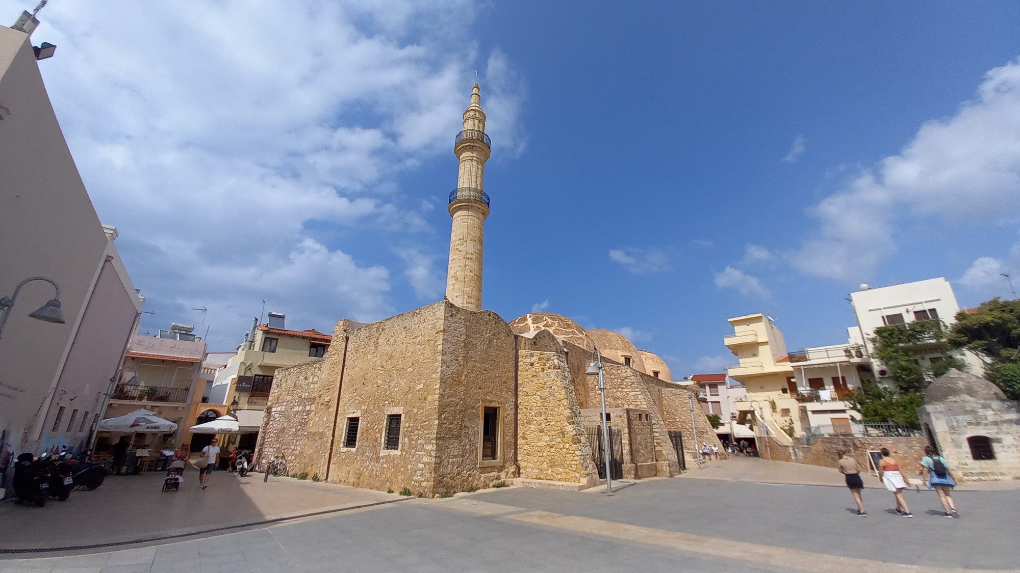 La Citadelle vénitienneConstruite entre 1573 et 1580, elle épouse la colline de Paleokastro en formant une couronne de 1300 m de diamètre d'où l'on domine toute la ville : le panorama splendide englobe la mer et les montagnes. Elle servit d'abri à tous les habitants lors du siège de 1646 (par les Turcs). Son enceinte, renforcée par quatre bastions, abritait des bâtiments publics, pour la plupart détruits. Il reste des caves voutées des magasins ainsi que la mosquée du sultan Ibrahim Han. Cette dernière, édifiée à l'emplacement de la cathédrale St Nicolas, a conservé son Mihrab et possède l'une des plus grandes coupoles de Grèce.