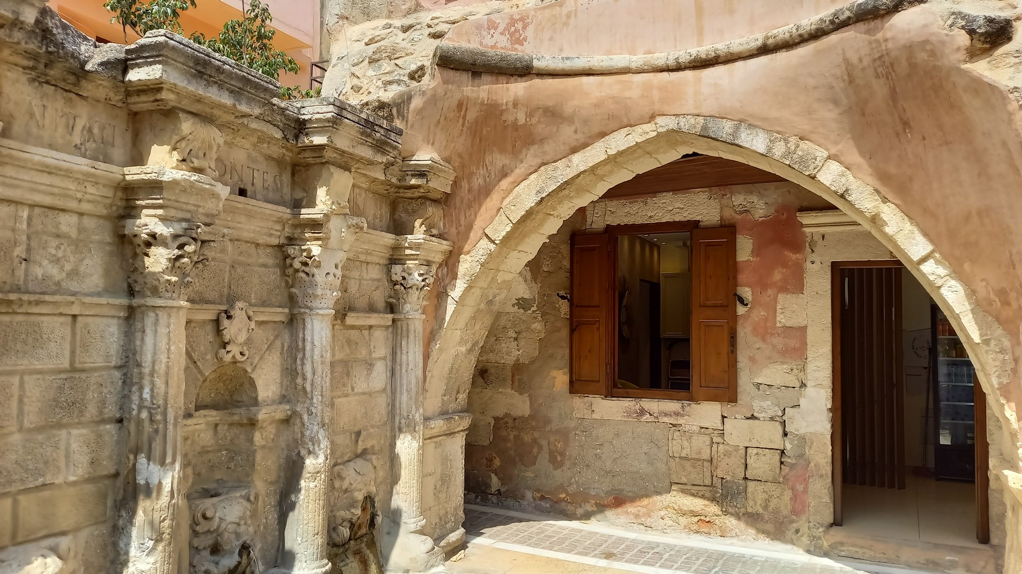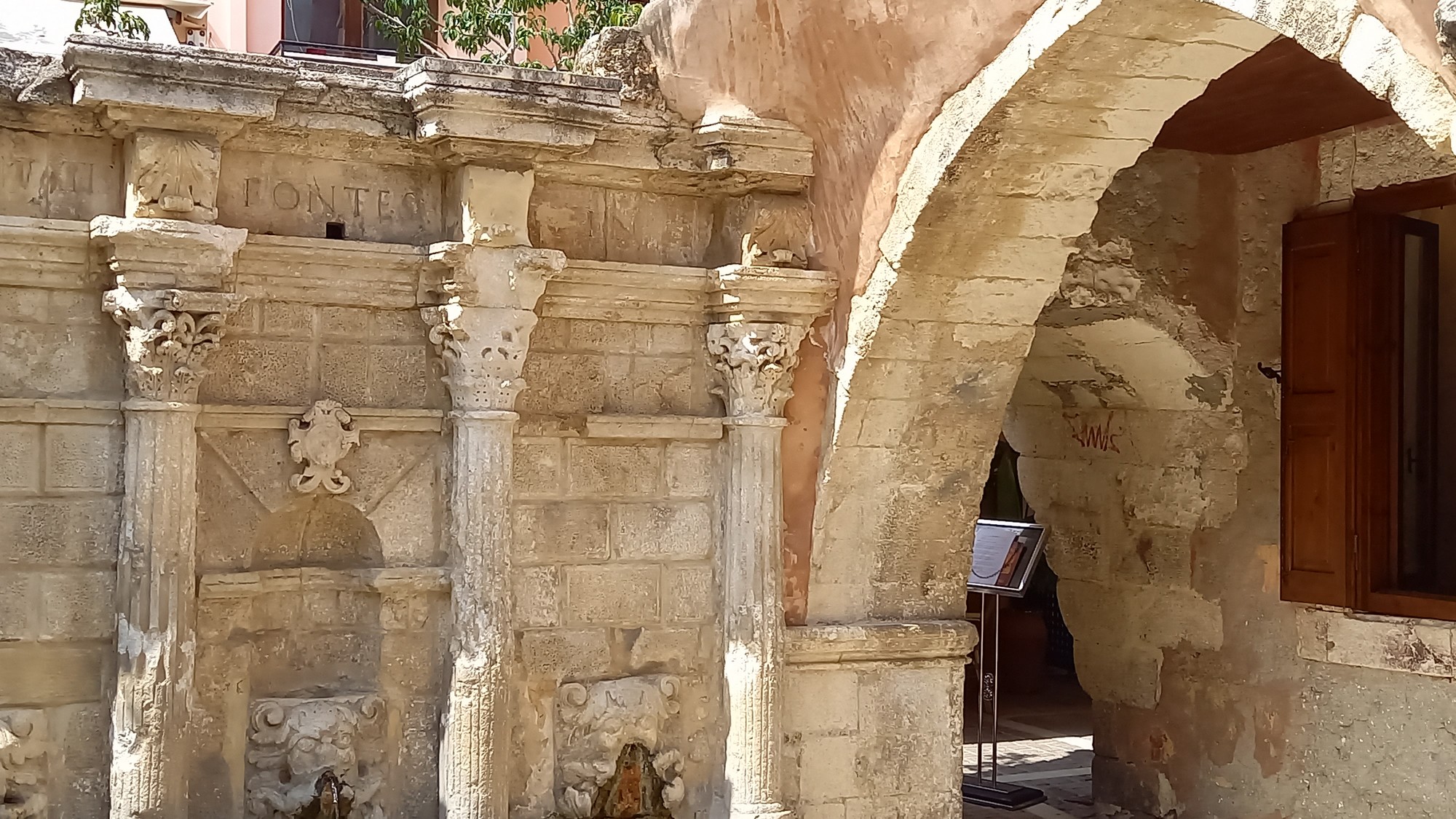 Rethymnon est l'une des plus belles cités de Crète. Dominée par les bastions et les murs d'enceinte de l'ancienne citadelle, la vieille ville mélange avec bonheur les souvenirs laissés par les Vénitiens et Ottomans : maisons aux élégants balcons en fer forgé, avancées en bois, anciens palais, églises et mosquées. La veille villeAvec ses boutiques de souvenirs, ses ruelles étroites bordées de maisons aux façades colorées de bougainvilliers et de bégonias, la vieille ville possède un indiscutable charme oriental. En plein centre se dresse la fontaine Rimondi, petite merveille vénitienne érigée en 1629 par Avise Rimondi, recteur de Rethymnon. Quatre fines colonnes corinthiennes séparent trois têtes de lion.
