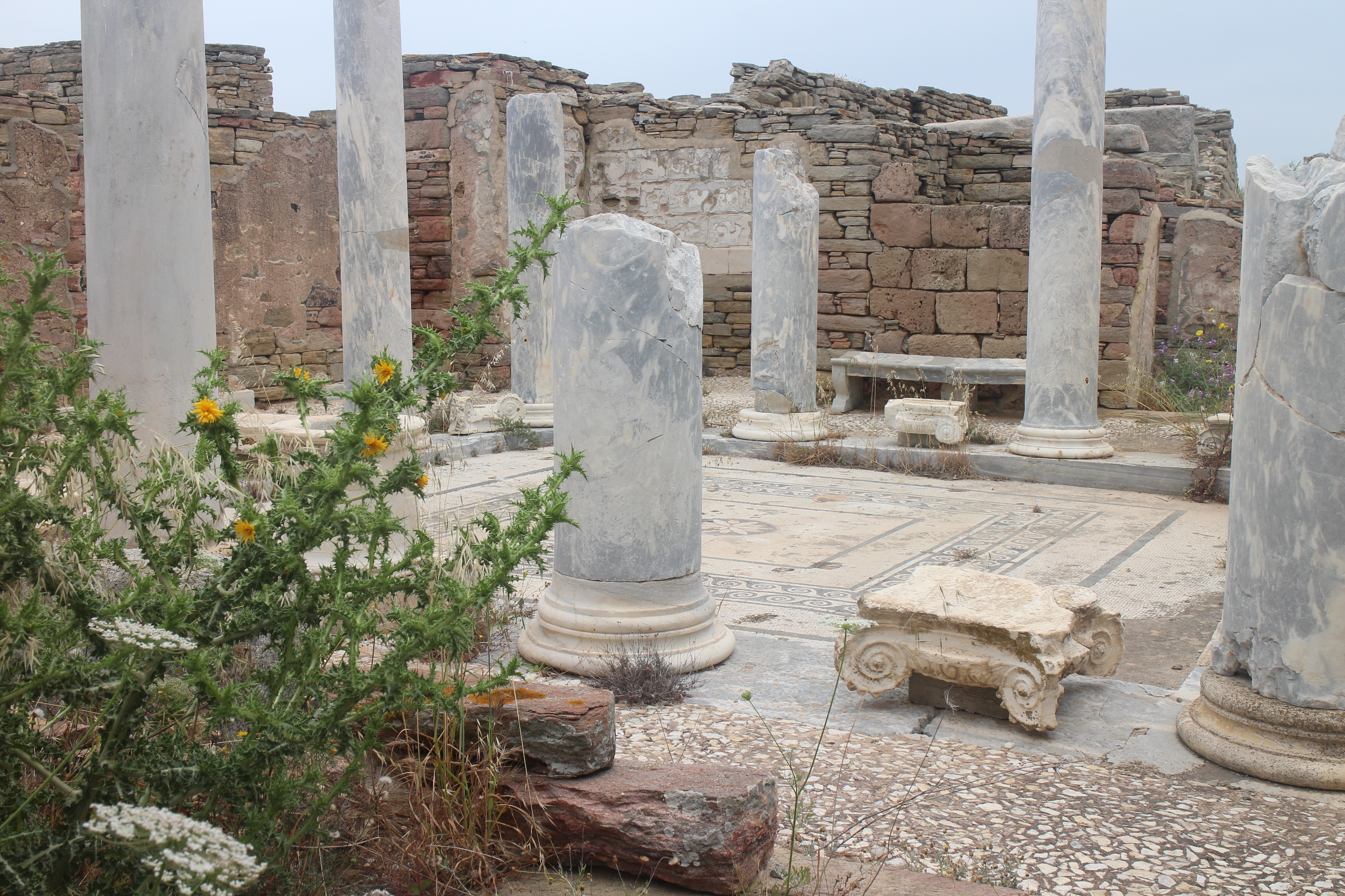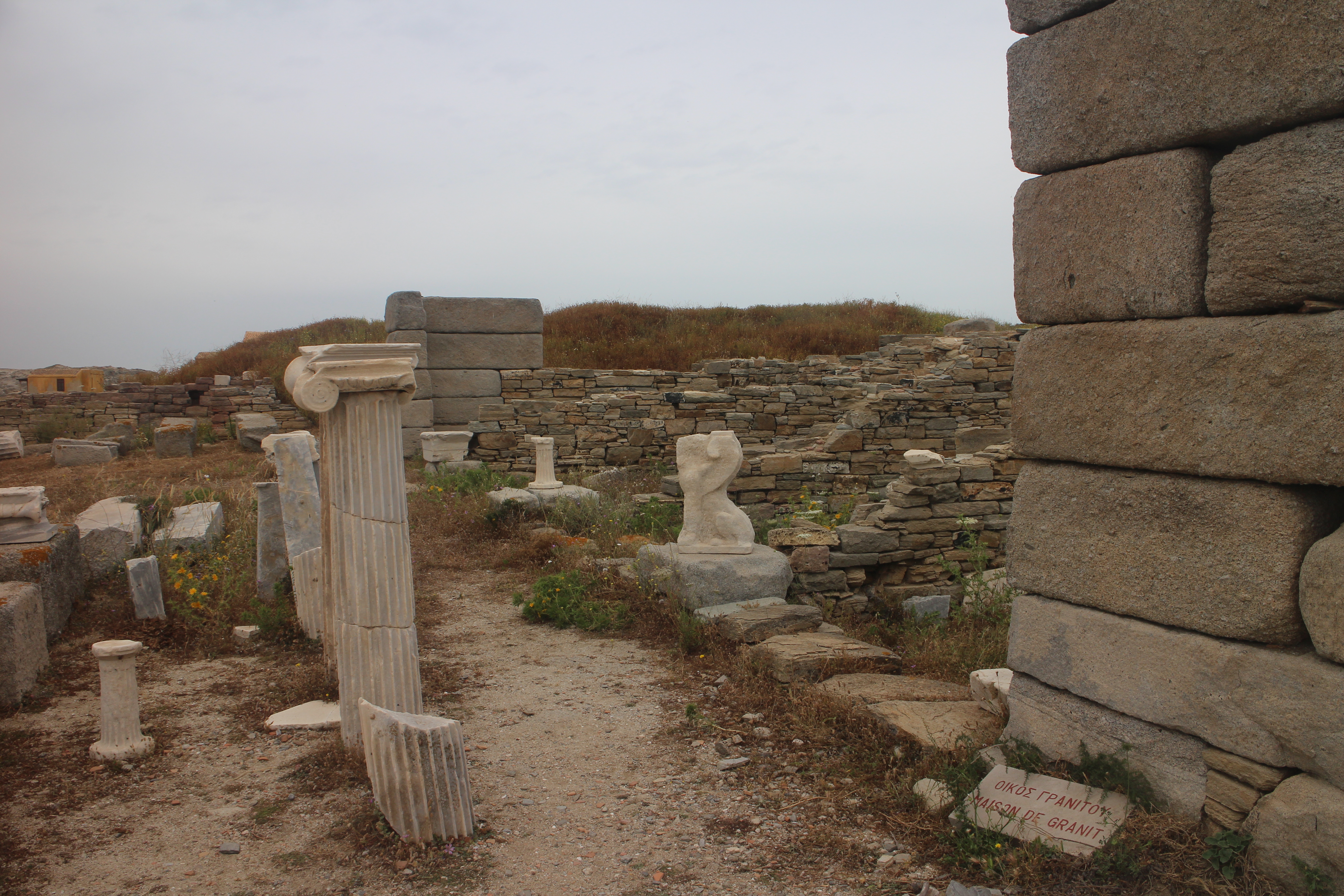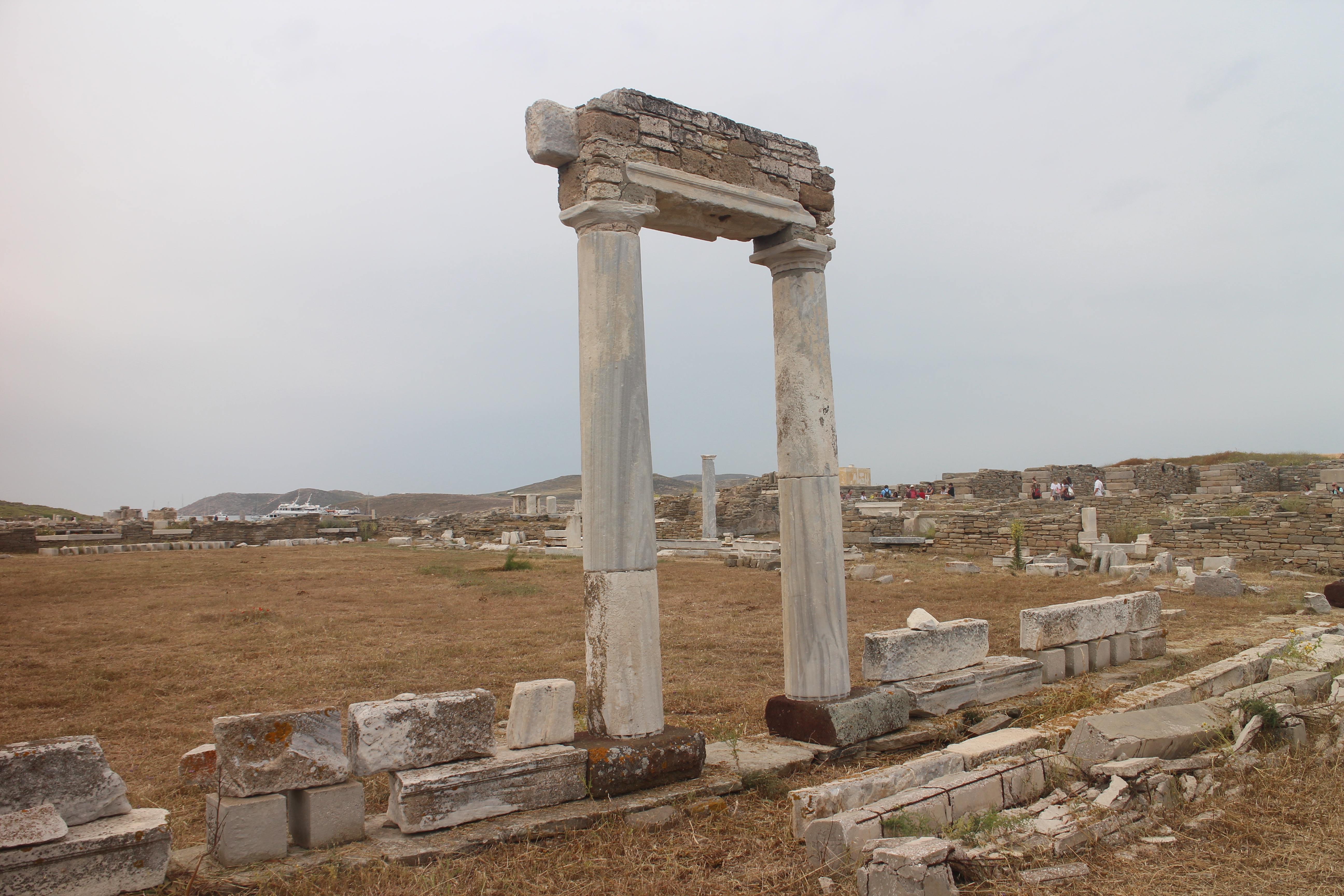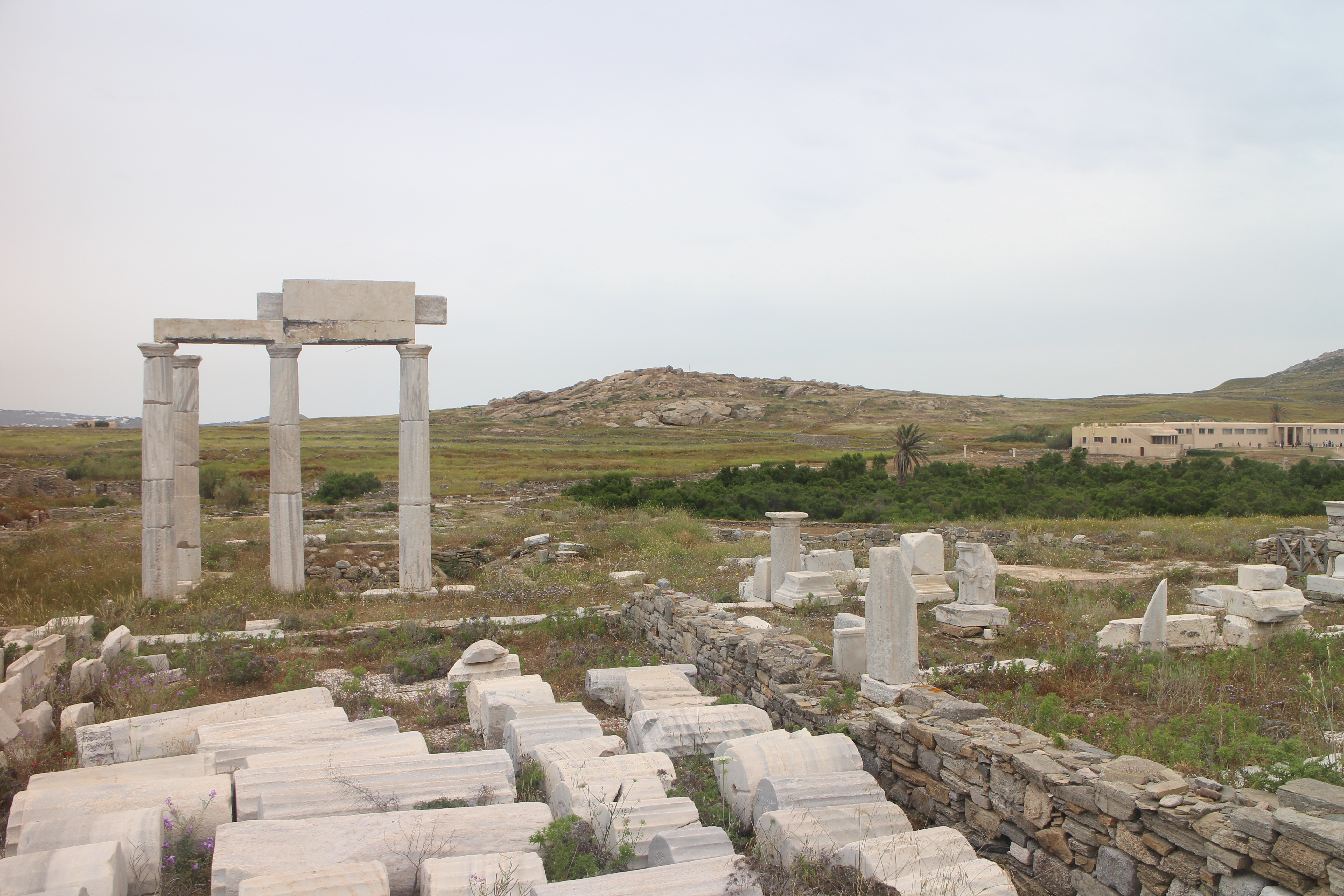 Minuscule île de 3,5 km2, aride, depuis longtemps inhabitée, elle se situe à l’ouest de Mykonos. Ses pentes sont douces et le mont Cynthe ne dépasse pas 113 m. L’abri portuaire a toujours été exposé aux vents qui, dès qu’ils se lèvent, rendent l’île inaccessible. Dans la partie basse se trouvait jadis un lac sacré d’eau douce, aujourd’hui à sec. Delos a joué un rôle considérable en Grèce antique tant sur le plan commercial que religieux (Delos était considrée comme l'île sacrée d'Apollon) et politique ; son rayonnement a connu son apogée au VIe siècle av. J.-C. L’île avait alors de l’eau potable. C’est à la suite des fouilles engagées à la fin du XIXe siècle par l’École française d’Athènes que la topographie du site et l'histoire de l’île sont redécouverts. Les ruines étaient en effet à peine visibles sous la garrigue et peu de monuments étaient identifiables Le site a été inscrit au patrimoine mondial de l'Unesco en 1990, on peut y voir, entre autres, les célèbres lions de Délos en marbrede Naxos.L'île de Délos n'est qu'à 4 km de Mykonos. On peut prendre le bateau dans le port de Mykonos pour s'y rendre.
