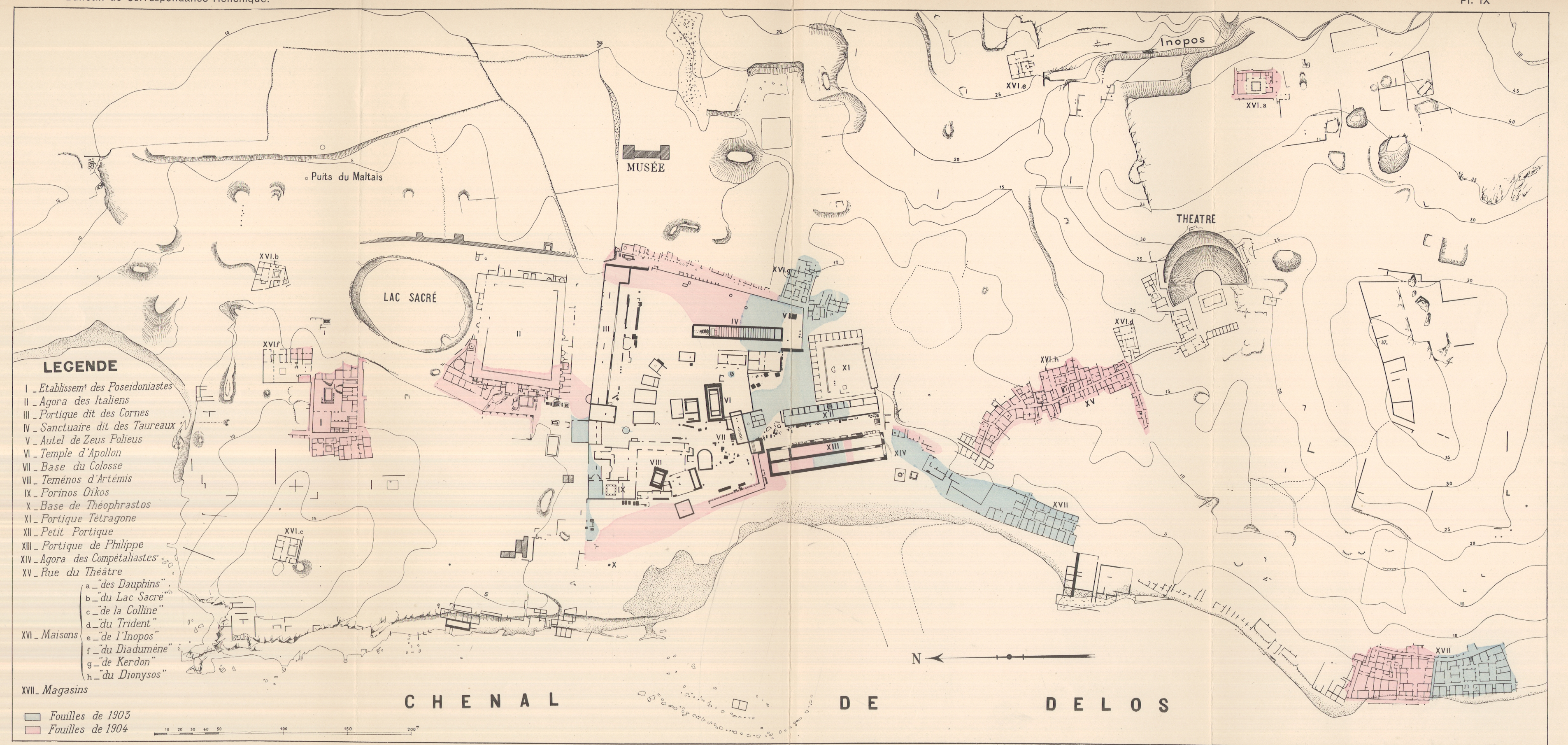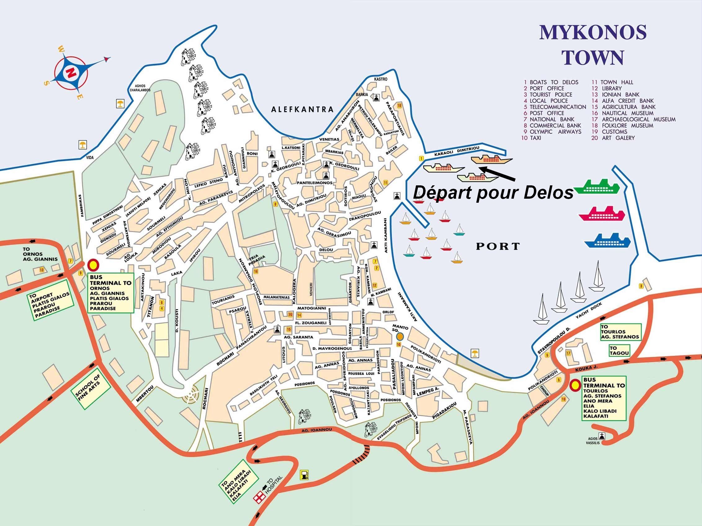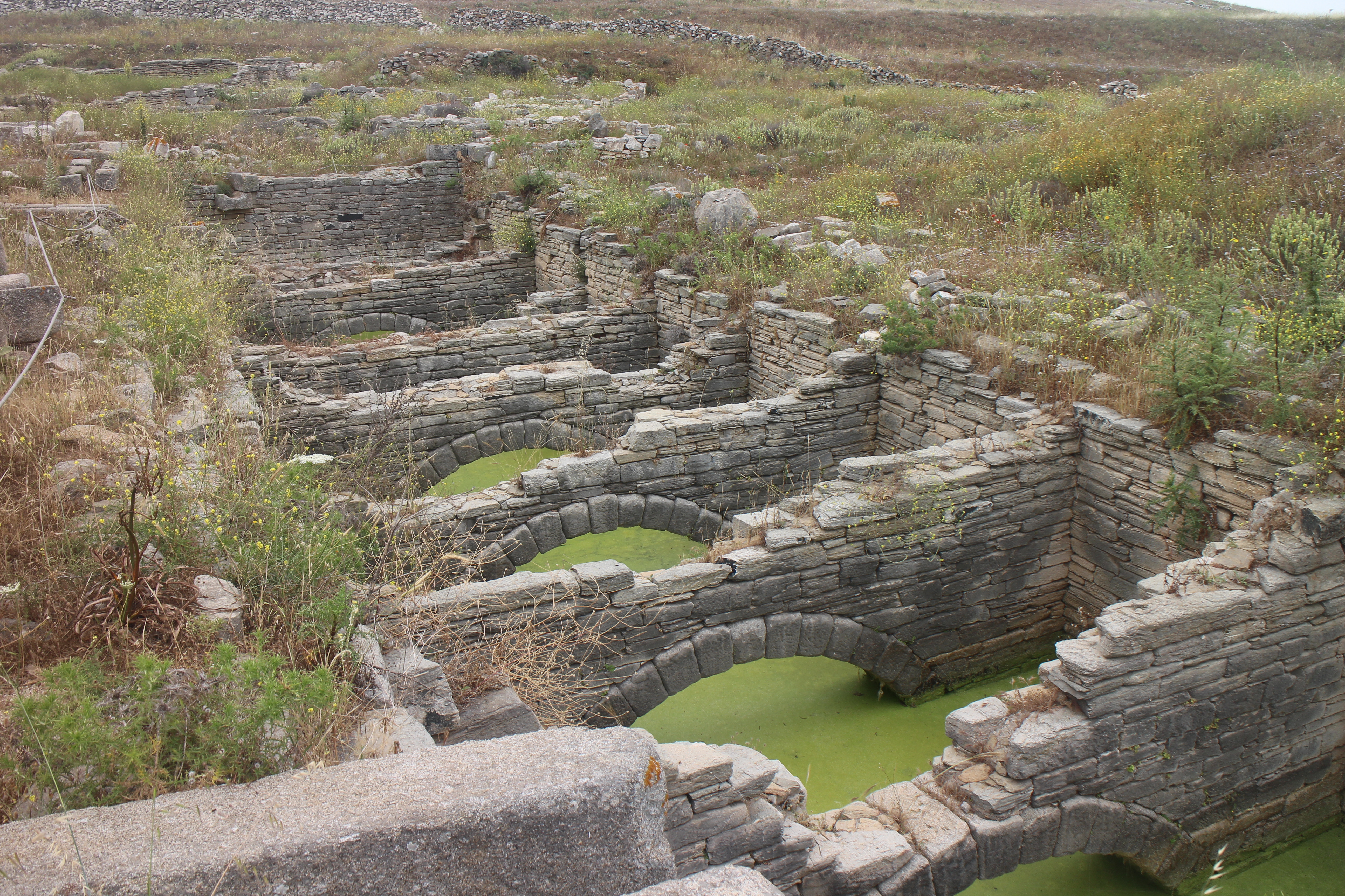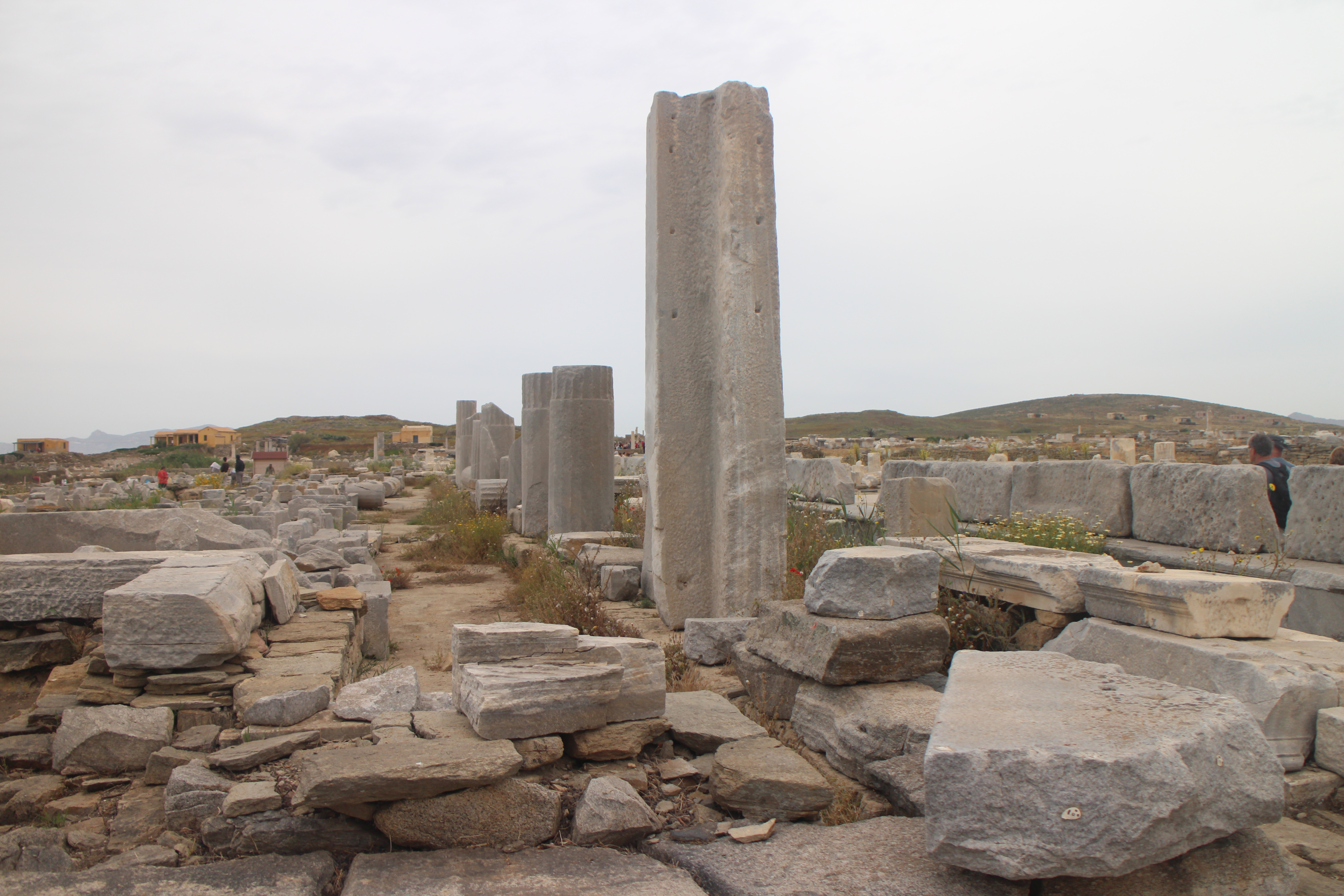 Minuscule île de 3,5 km2, aride, depuis longtemps inhabitée, elle se situe à l’ouest de Mykonos. Ses pentes sont douces et le mont Cynthe ne dépasse pas 113 m. L’abri portuaire a toujours été exposé aux vents qui, dès qu’ils se lèvent, rendent l’île inaccessible. Dans la partie basse se trouvait jadis un lac sacré d’eau douce, aujourd’hui à sec. Delos a joué un rôle considérable en Grèce antique tant sur le plan commercial que religieux (Delos était considrée comme l'île sacrée d'Apollon) et politique ; son rayonnement a connu son apogée au VIe siècle av. J.-C. L’île avait alors de l’eau potable. C’est à la suite des fouilles engagées à la fin du XIXe siècle par l’École française d’Athènes que la topographie du site et l'histoire de l’île sont redécouverts. Les ruines étaient en effet à peine visibles sous la garrigue et peu de monuments étaient identifiables Le site a été inscrit au patrimoine mondial de l'Unesco en 1990, on peut y voir, entre autres, les célèbres lions de Délos en marbrede Naxos.L'île de Délos n'est qu'à 4 km de Mykonos. On peut prendre le bateau dans le port de Mykonos pour s'y rendre.