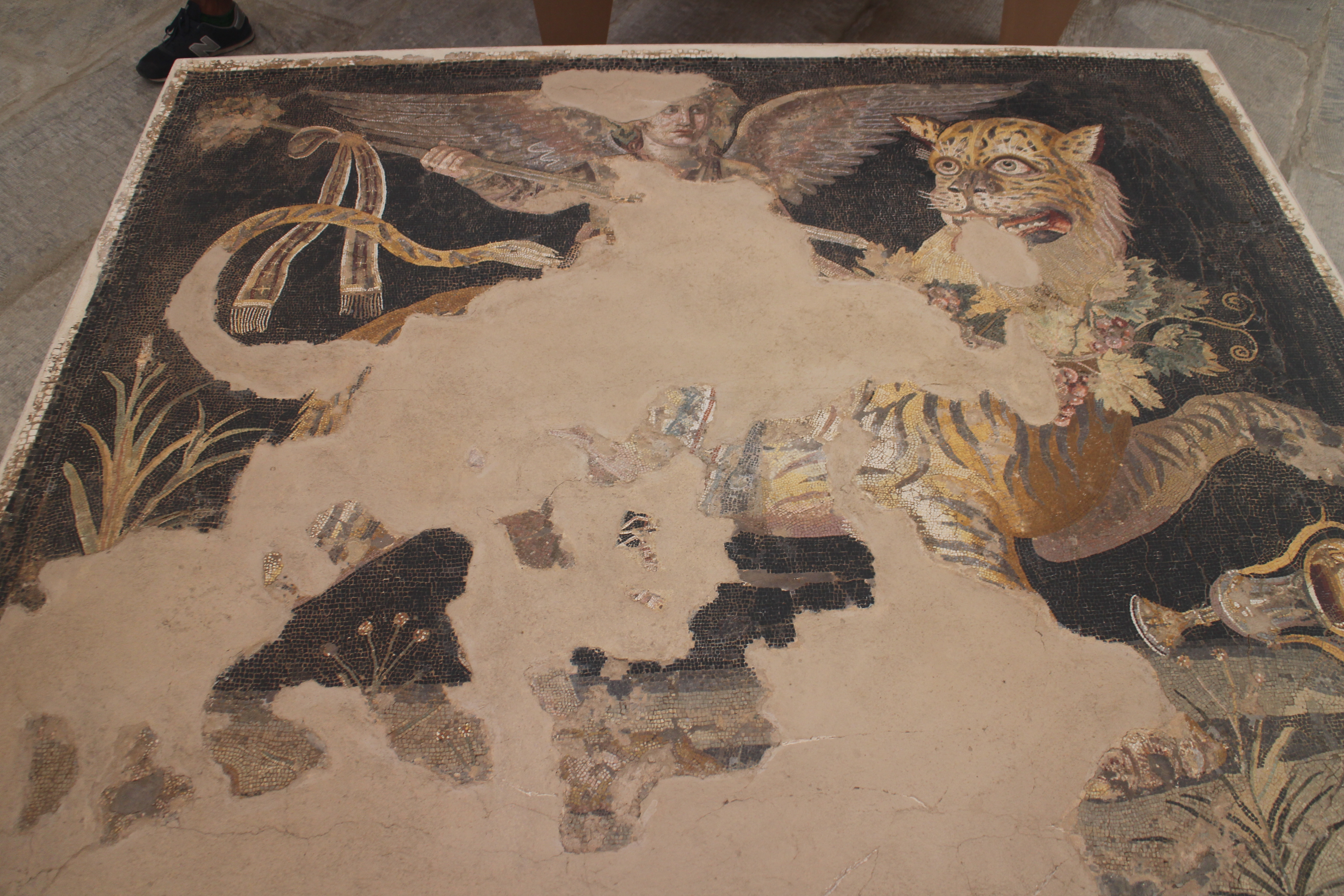 | Mosaïque représentant le roi Lycurgue de Thrace tuant Ambrosia (2e siècle av. JC.) |