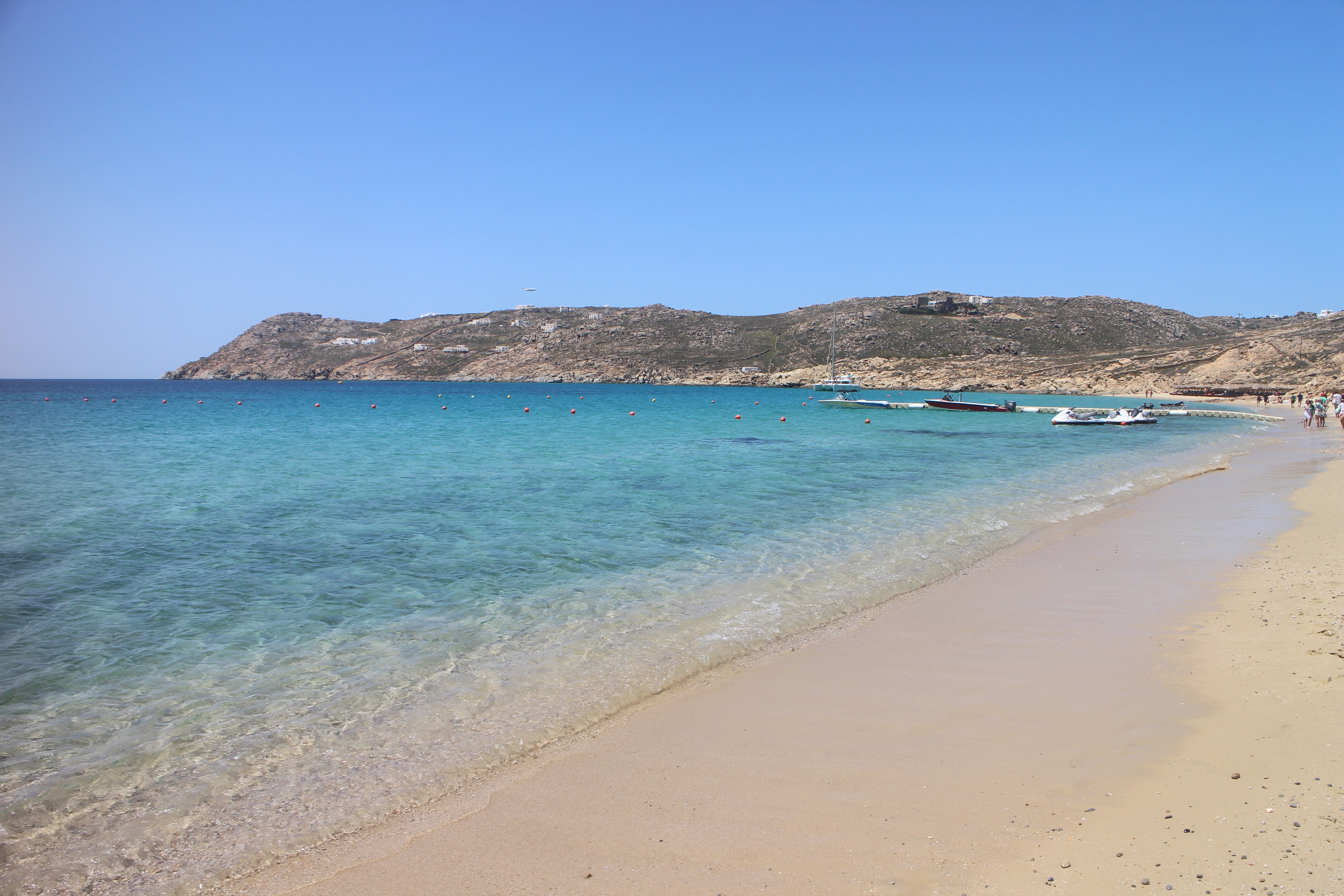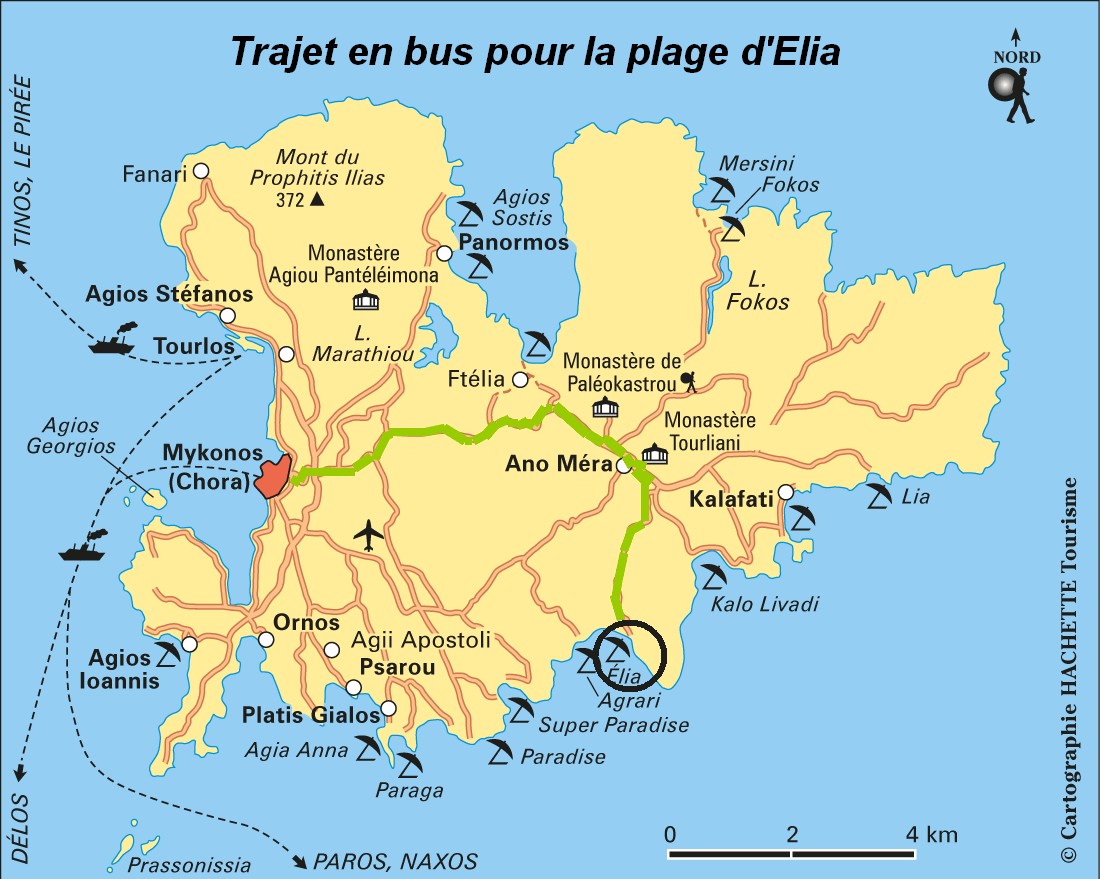Les plages de Mykonos sont bien connues des touristes. On peut facilement prendre le bus depuis la ville de Mykonos et se rendre à l'une des plages de la côte est comme par exemple la belle plage d'Elia.