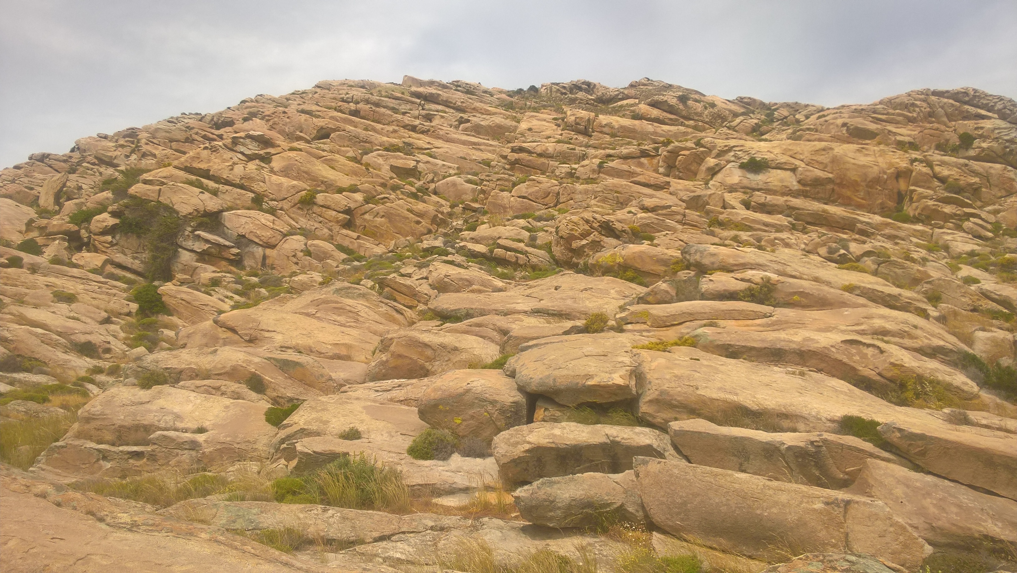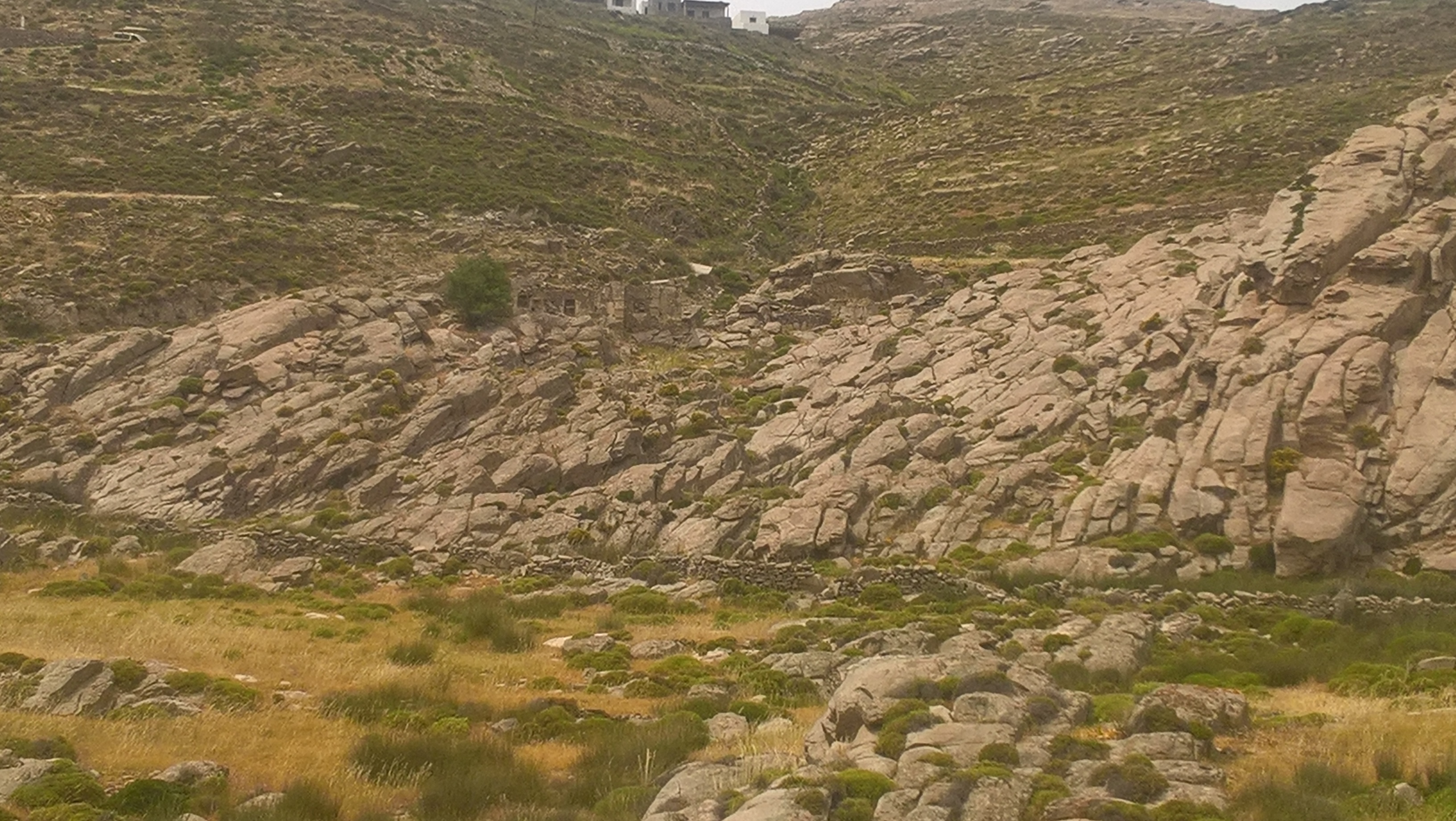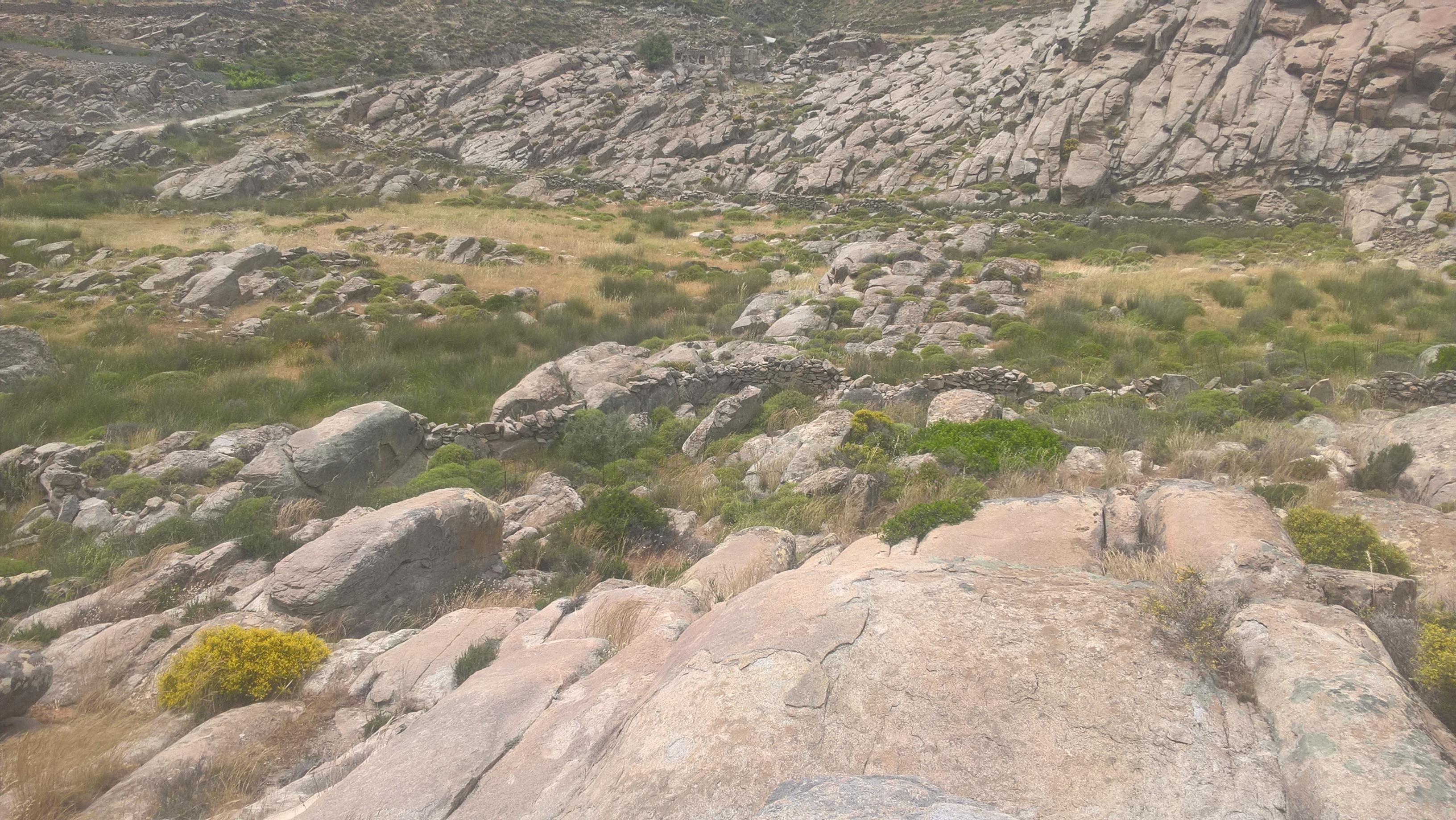Le site Mycénien (Mycenaean Akropolis) Un panneau indique le site mais difficile à voir en dehors des blocs rocheux.
