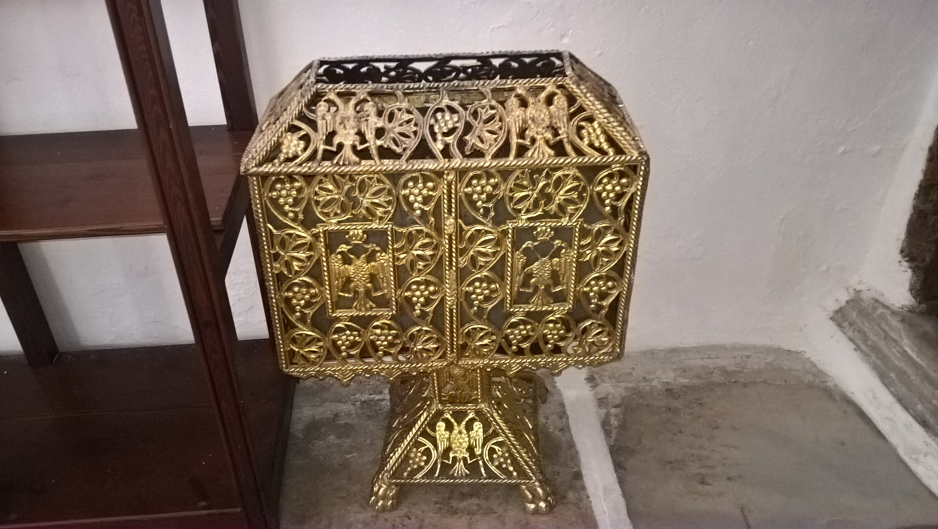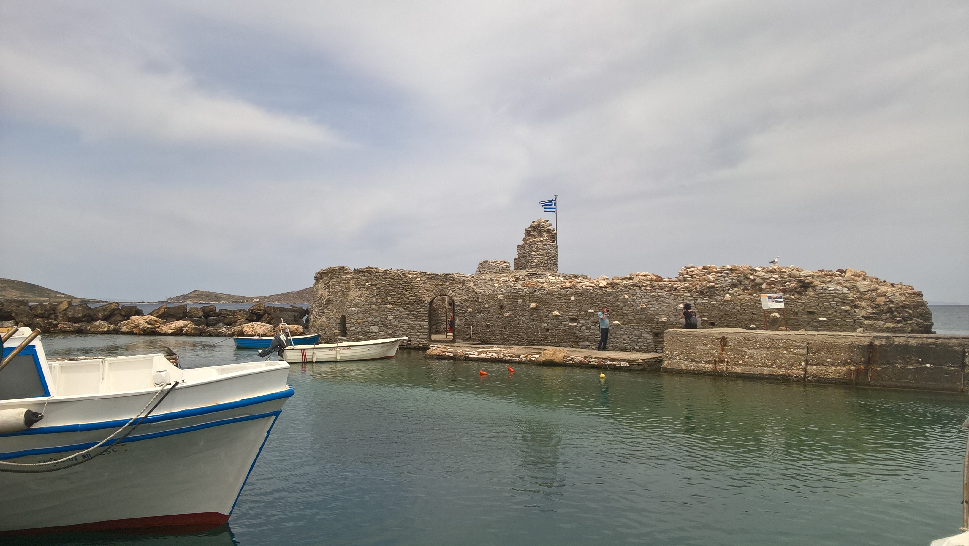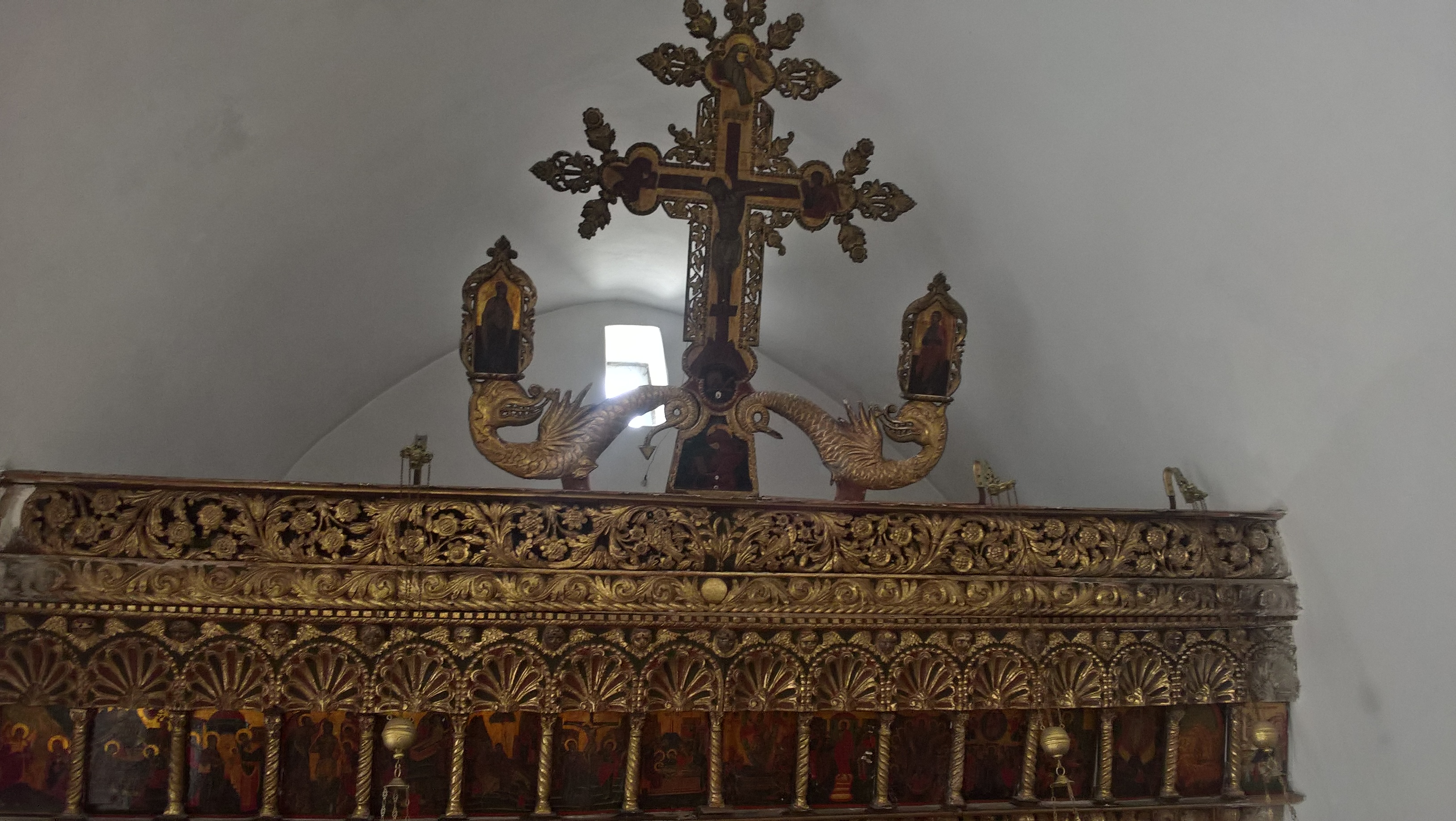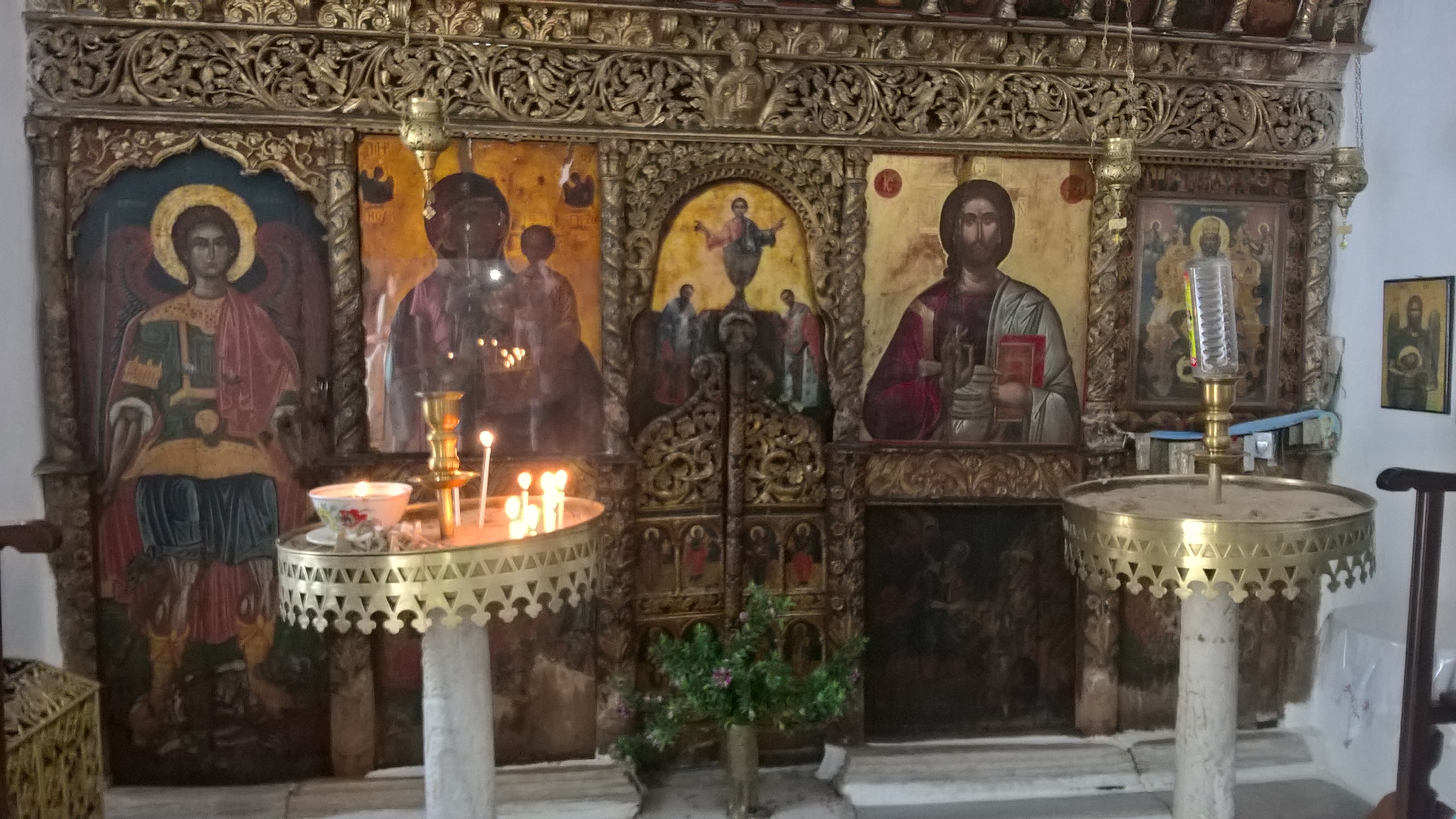La Sainte Église de la Dormition de la Vierge de Naoussa Il s’agit, en ordre de rang, de la troisième plus grande église de Paros. C’est l’église métropolite de Naousa. Bâtie sur une hauteur dominant la petite ville et offrant une jolie vue, elle se distingue par ses deux grands clochers intégrés et son fronton au-dessus du portail central. C’est une basilique à nef unique, avec une coupole couverte de tuiles et un petit narthex qui fut construit au XIXème siècle, là où préexistait une église plus ancienne. Elle possède une grande cour plantée de pins et seize marches de marbre mènent vers le portail central. On peut voir à l'intérieur l’iconostase en marbre ciselé, œuvre de Dimitrios Lyritis, sculpteur sur marbre originaire de l’île de Tinos, et les icônes revêtues d’argent de la Sainte-Vierge et de la Dormition de la Vierge.