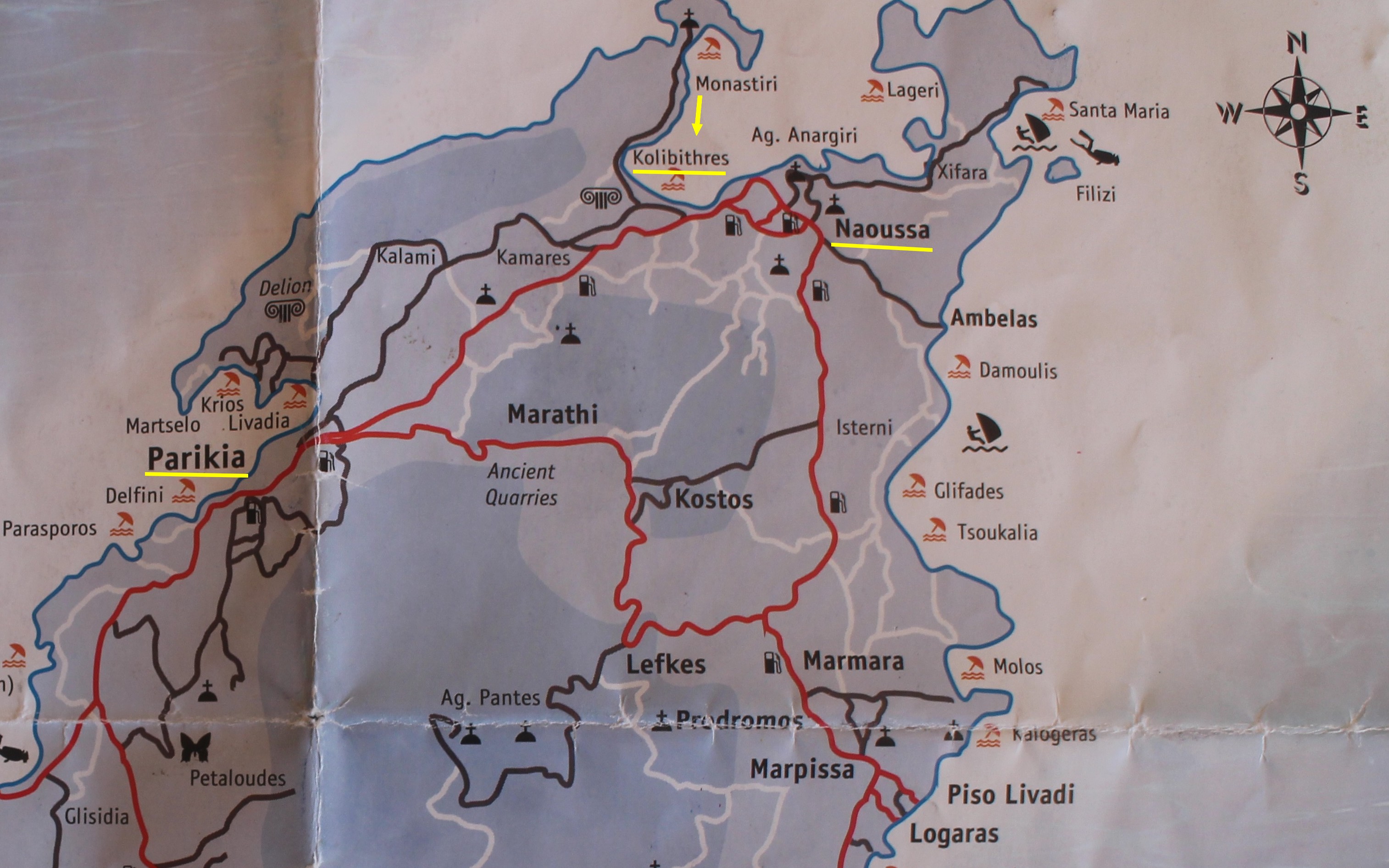Plage de Kolibithres Située dans la baie de Naoussa, cette plage est célèbre pour ses rochers sculptés et ses eaux cristallines. On peut profiter de la beauté naturelle de la plage, avec des blocs de granit aux formes surprenantes et des criques naturelles.