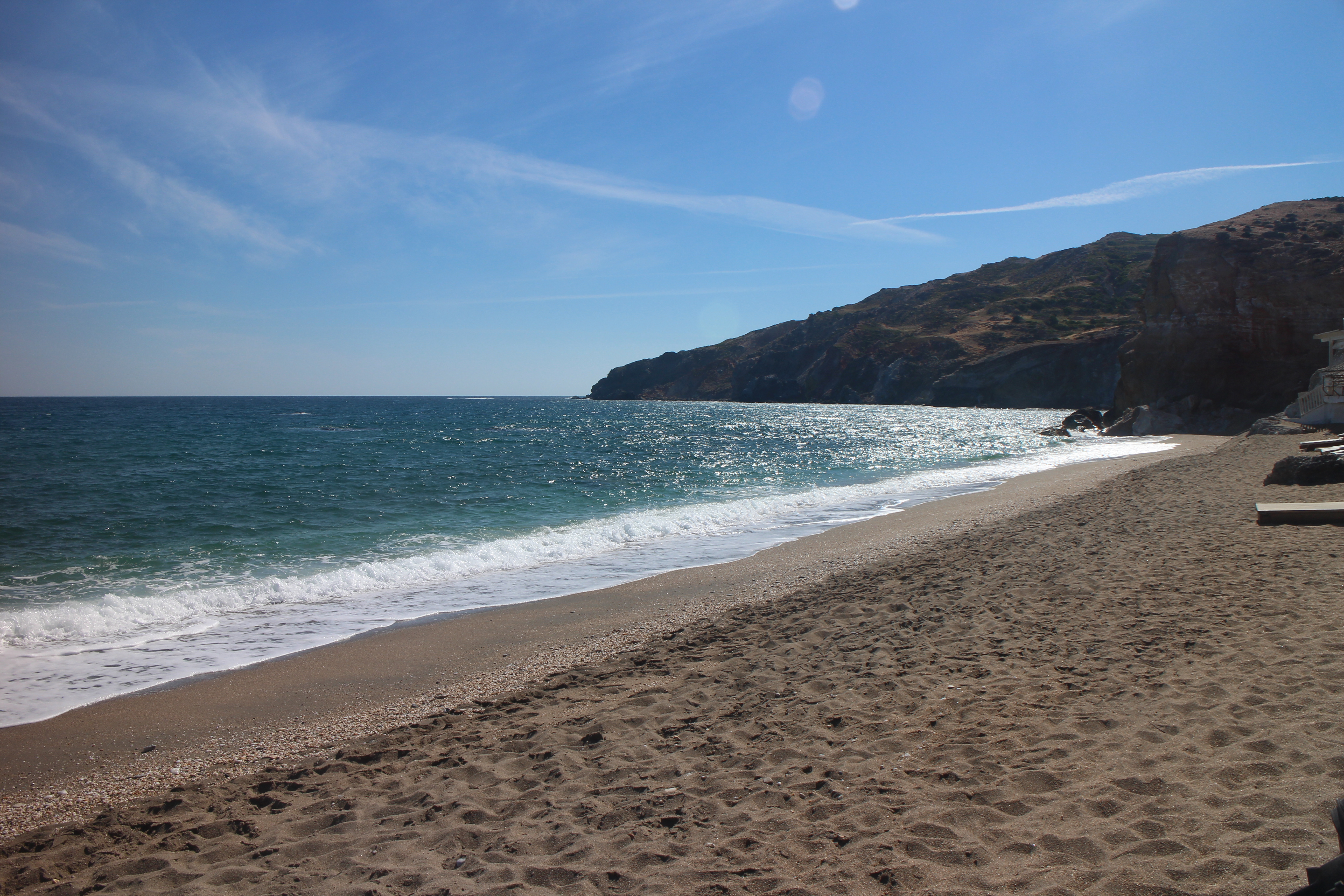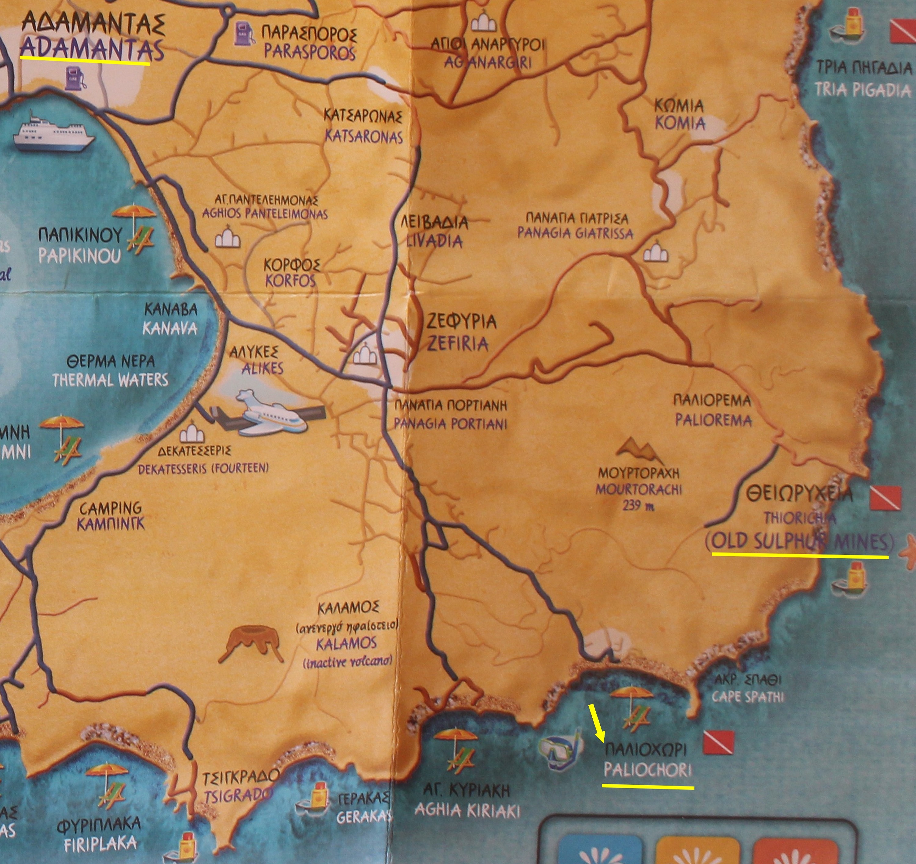 Paliochori.est considérée comme la meilleure plage de Milos. Elle est divisée en trois parties, la plage ouest, celle du centre et celle de l’est. Longue en tout de plusieurs kilomètres, Paliochori présente une eau cristalline atteignant le sable sombre du rivage et de petits galets magnifiquement colorés. L’eau est chaude à plusieurs endroits en raison des sources minérales sous-marines. D’imposantes formations rocheuses à terre témoignent de l’origine volcanique de Milos. Le soufre ainsi que d’autres minerais et minéraux confèrent des couleurs spectaculaires au paysage de Paliochori.