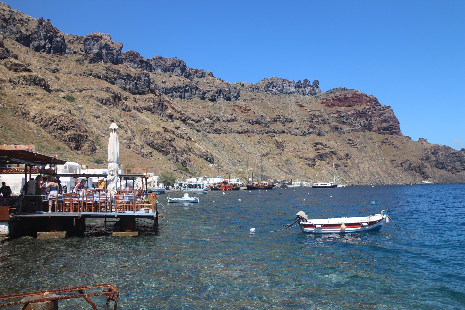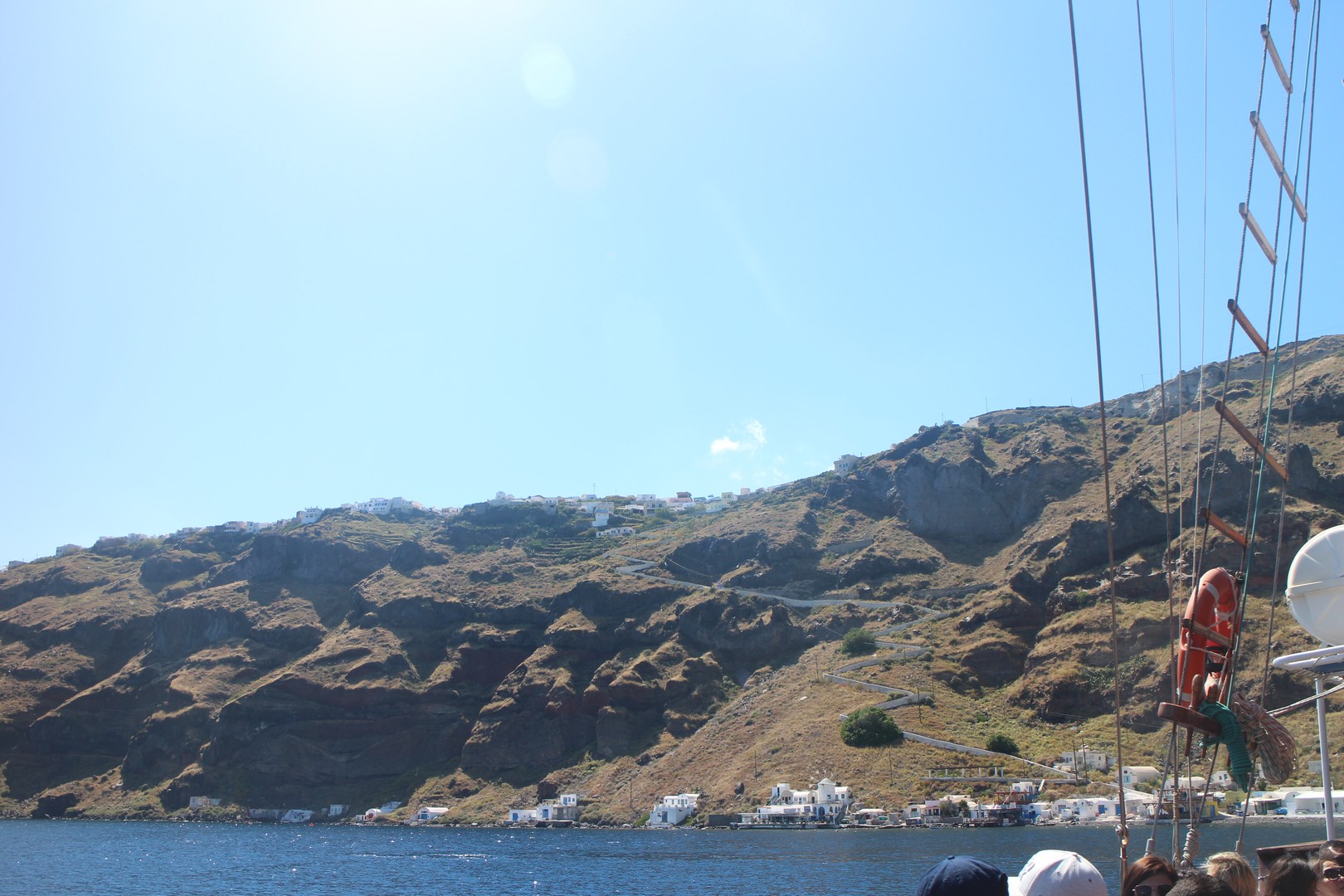 Thirasía forme avec quatre autres îles l'archipel de Santorin qui constitue les restes de l'ancienne île de Santorin partiellement détruite vers 1600 av. J.-C. au cours de l'éruption minoenne. Aujourd'hui, l'île est habitée avec deux hameaux principaux Kórfos et Manolás. Kórfos est le port de Thirassía. C'est à cet endroit que les bateaux en provenance des autres îles de l'archipel accostent, on peut s'y restaurer dans des restaurants typiques. Manolás est le seul village de l'île, situé au sommet des escaliers venant de Kórfos. |