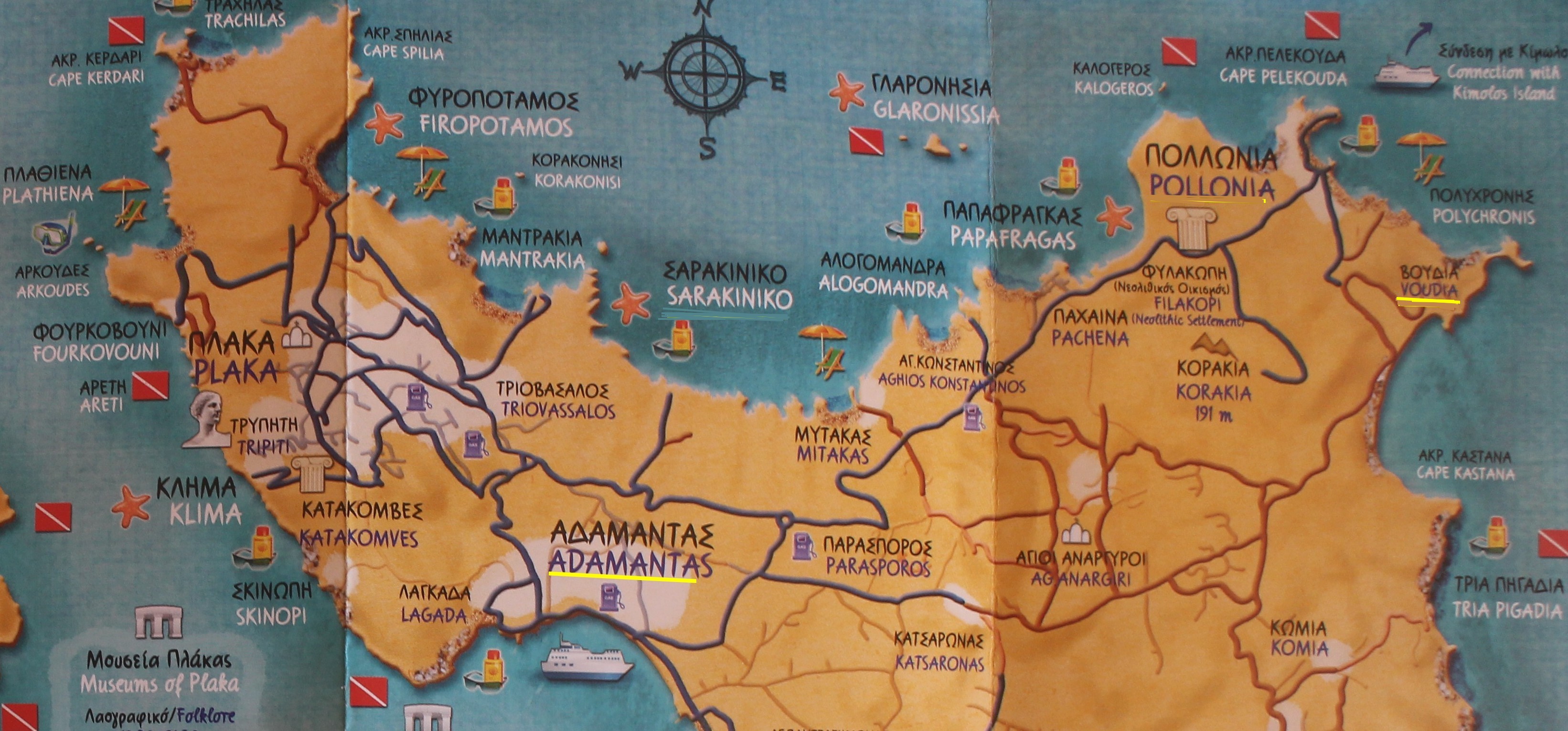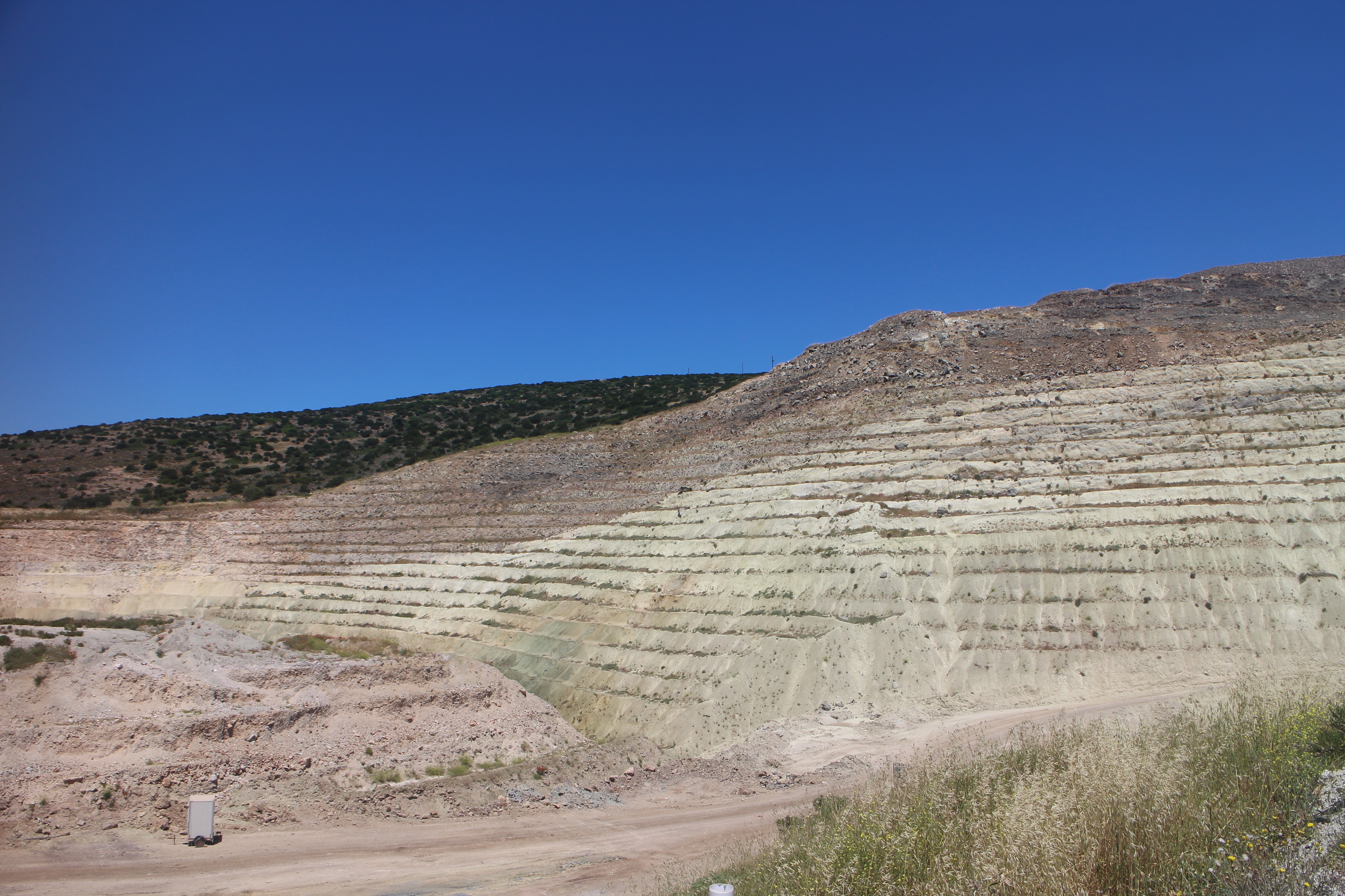 Les mines sont la première activité de Milos. Cette île d’origine volcanique (le volcanisme y a commencé il y a 3,5 millions d’années et la dernière éruption a eu lieu il y a environ 90 000 ans) recèle dans son sous-sol toutes sortes de minéraux utiles à l’industrie dans de nombreux domaines. Aussi l’île est-elle éventrée pour en extraire les richesses que l’on exporte ensuite vers le continent, en Grèce et dans bien d’autres pays. La mine de Voudia (au nord-est de Milos) à ciel ouvert est encore en activité.
