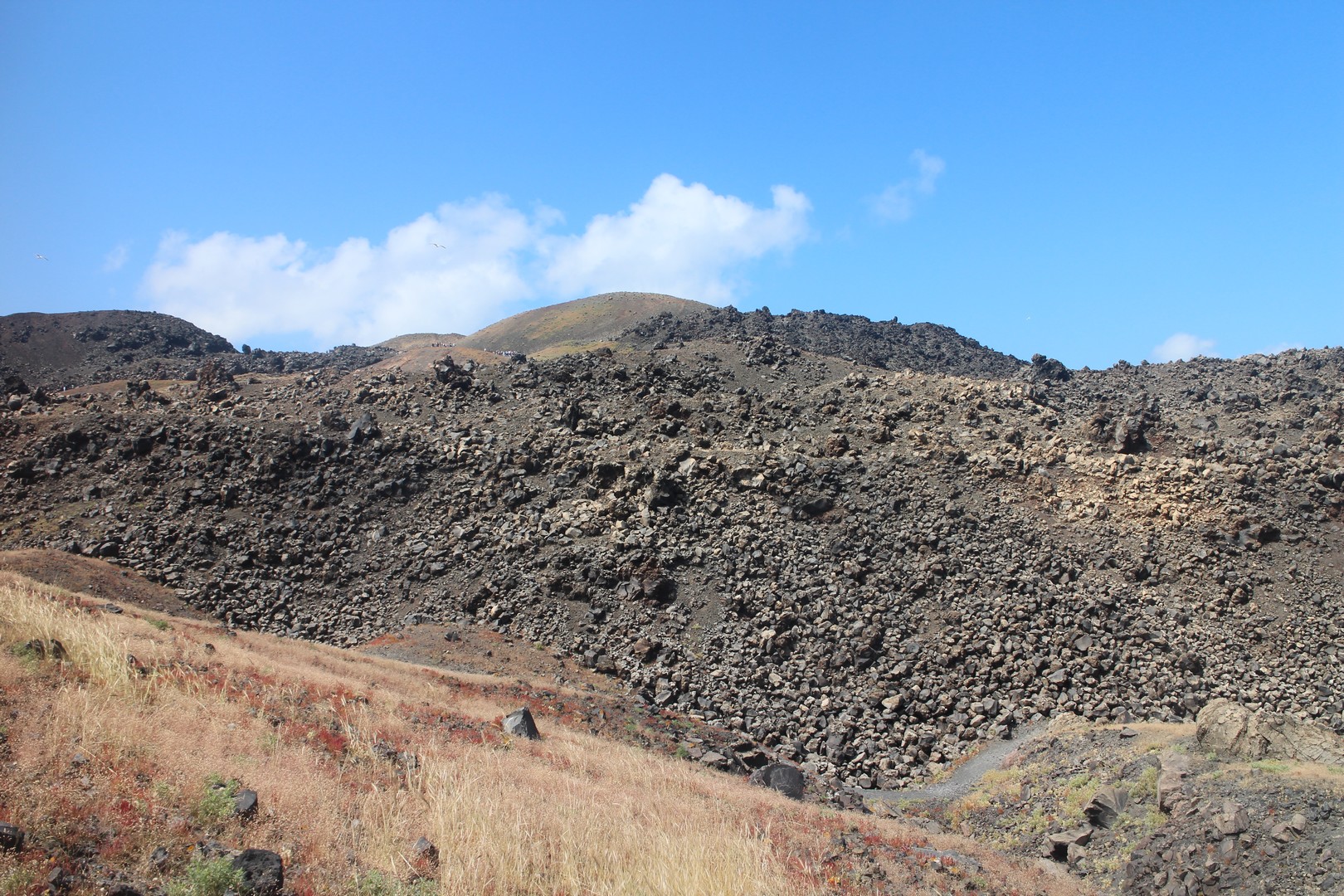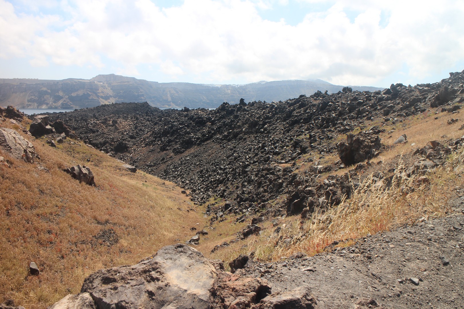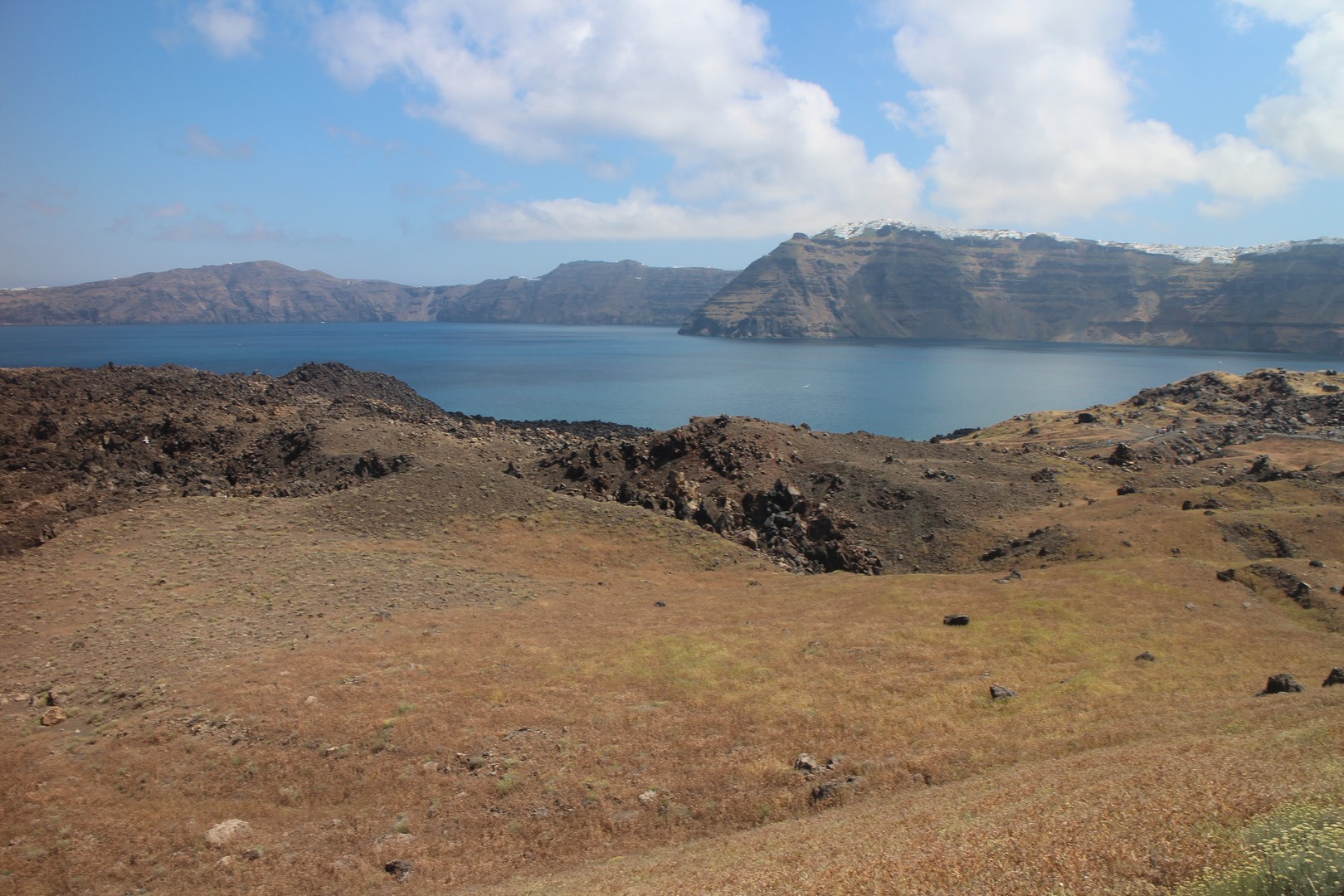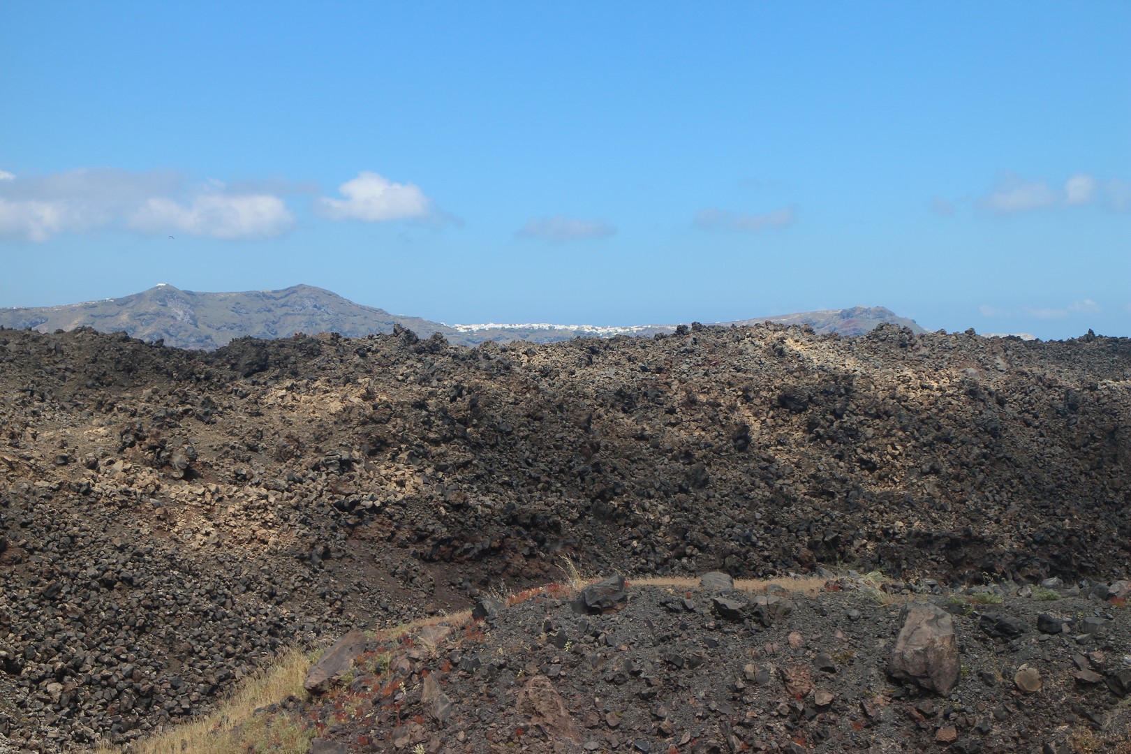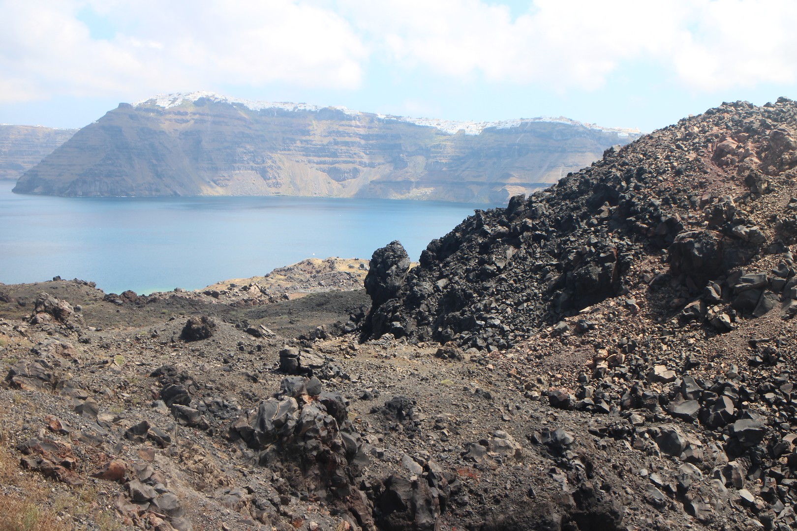 Vulcanos (Néa Kaméni) est, comme son nom l'indique, une île volcanique à l'ouest de Santorin. Néa Kaméni se situe au coeur de l’archipel. On le considère comme le volcan de Santorin car il a donné naissance aux différentes îles de l’archipel. Le volcan est actif même s’il n’est pas en éruption. On peut notamment le voir avec les fumerolles visibles notamment au niveau du cratère. Il n'y pas d'habitation sur l'île, on peut s'y rendre en bateau par exemple par le tour des îles proposé à partir du vieux port de Fira. Son point culminant est à 150 mètres au dessus du niveau de la mer.