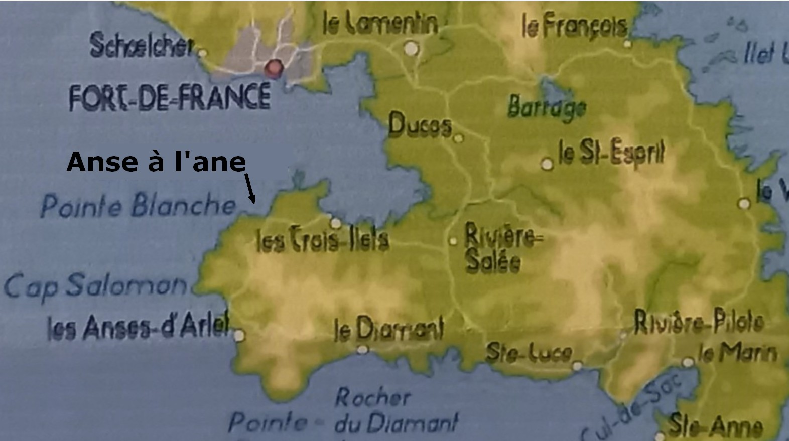 Située sur la commune des Trois-Îlets, en bord de mer des Caraïbe, l'anse à l'âne possède une plage de carte postale : grande plage de sable fin et blanc (environ 400 m), mer turquoise et calme. |