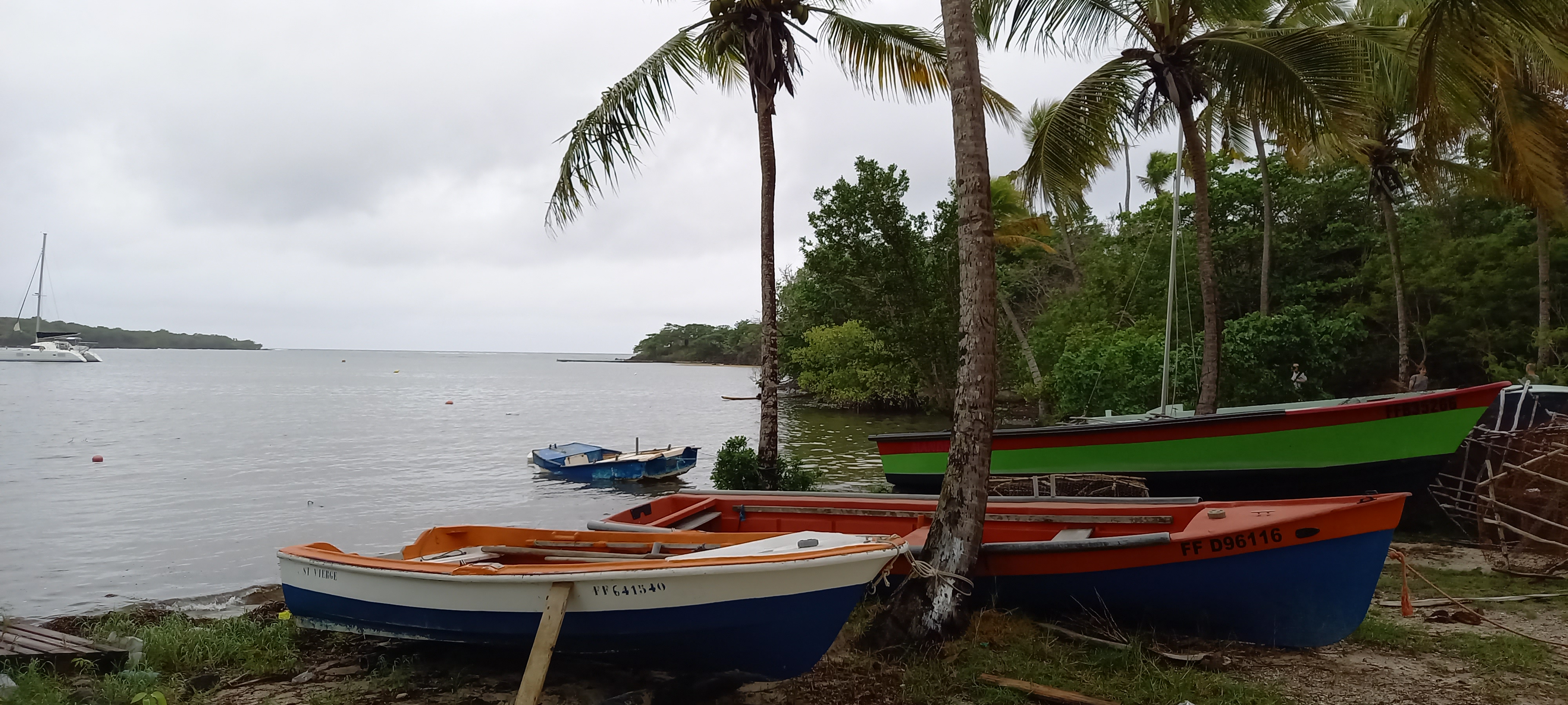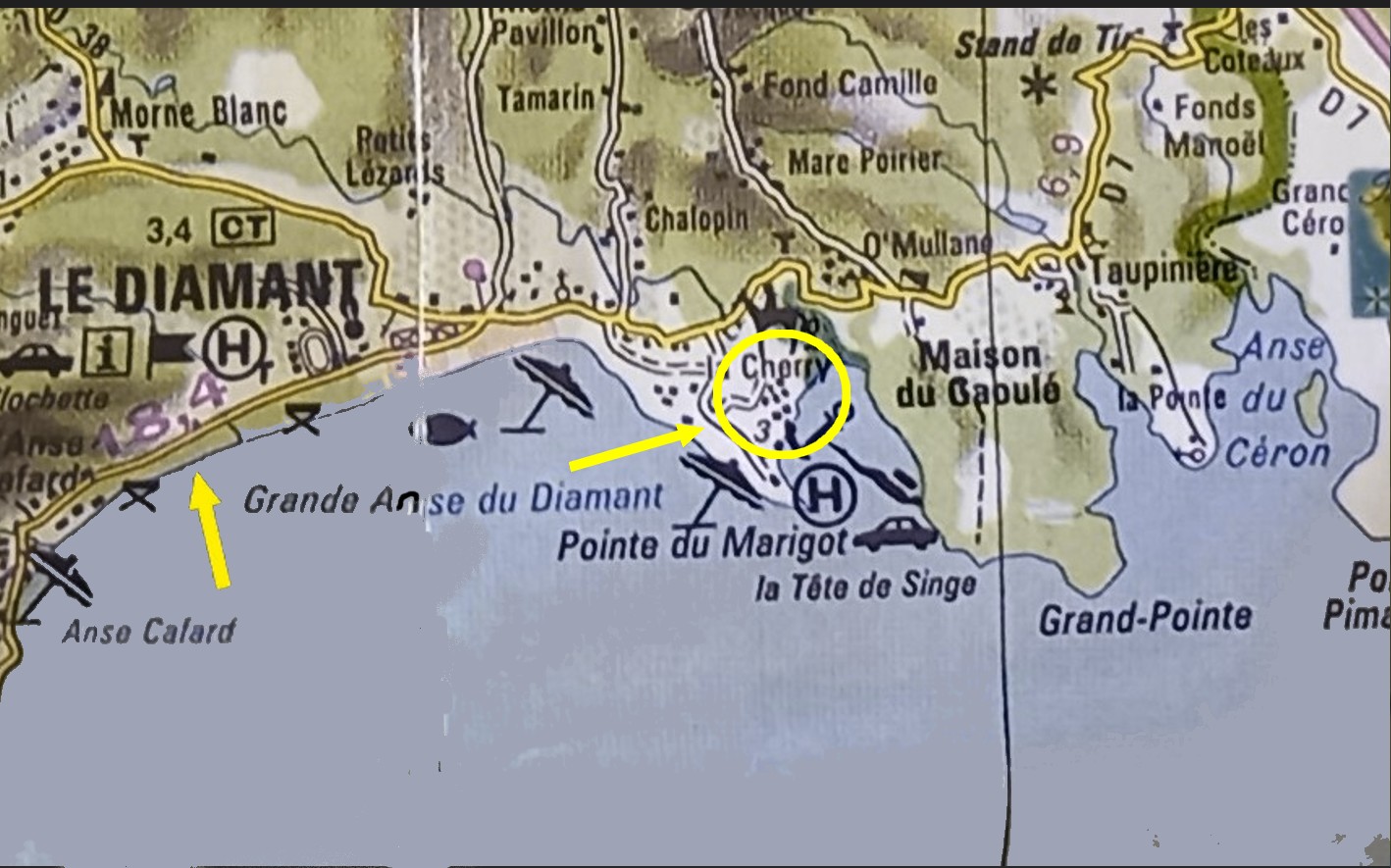 Le Cherry : un petit port de pêche et une plage de sable fin, végétation luxuriante, belle vue sur le Diamant. |