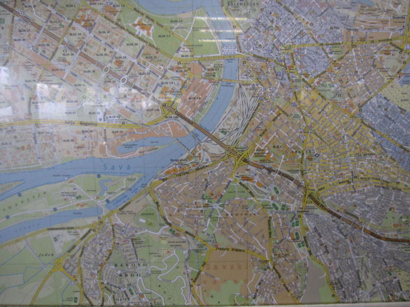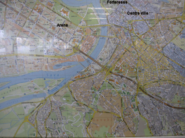 Plan de Belgrade, la ville nouvelle (quartier Arena), le centre ville et la forteresse.