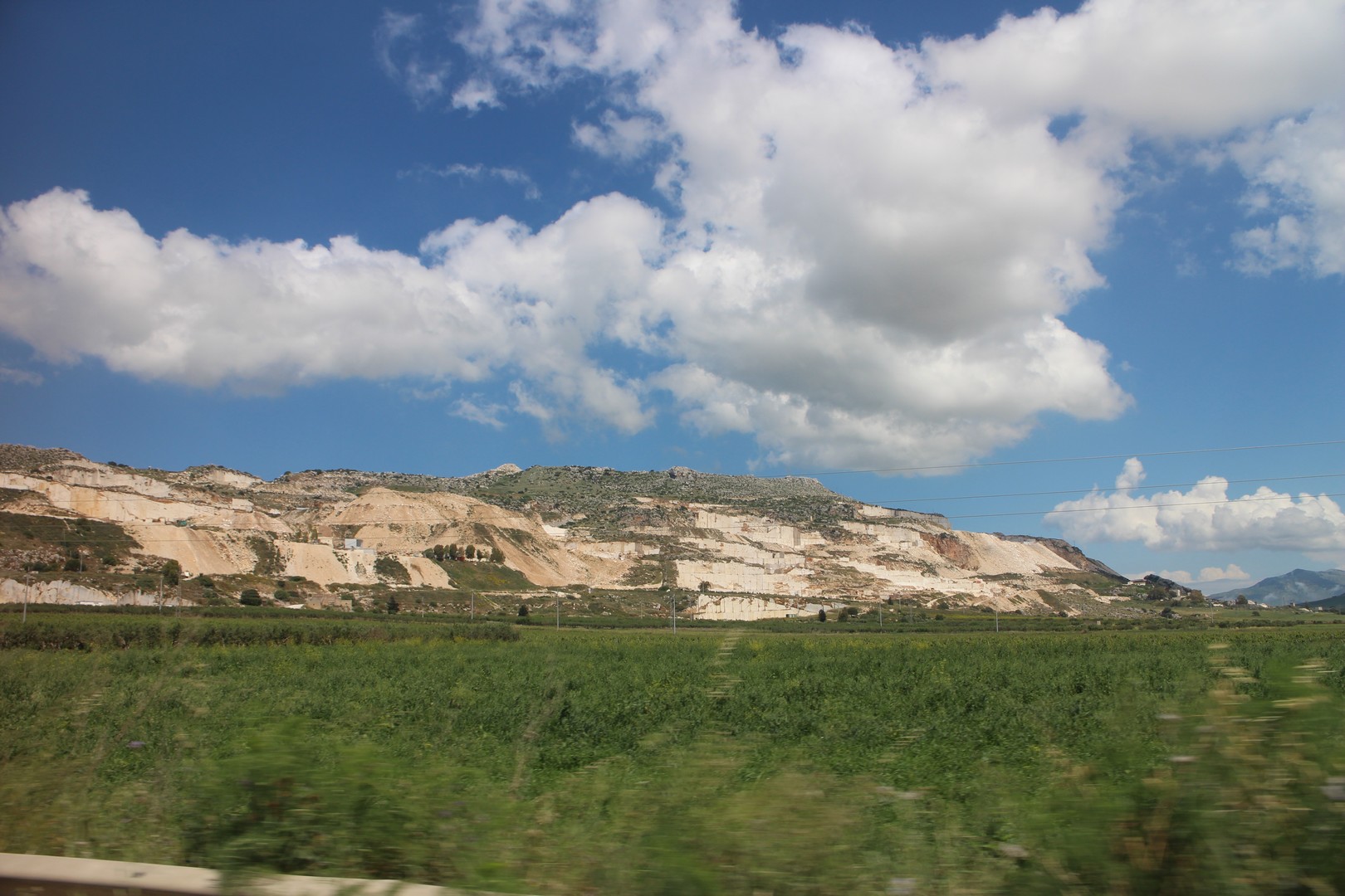En allant sur San Vito Lo Capo, la montagne est coupée, saccagée par des carrières de marbre
