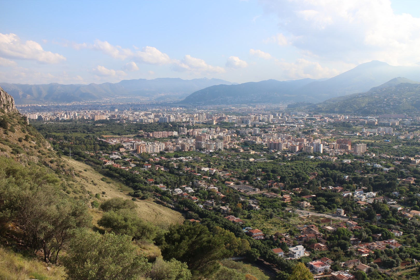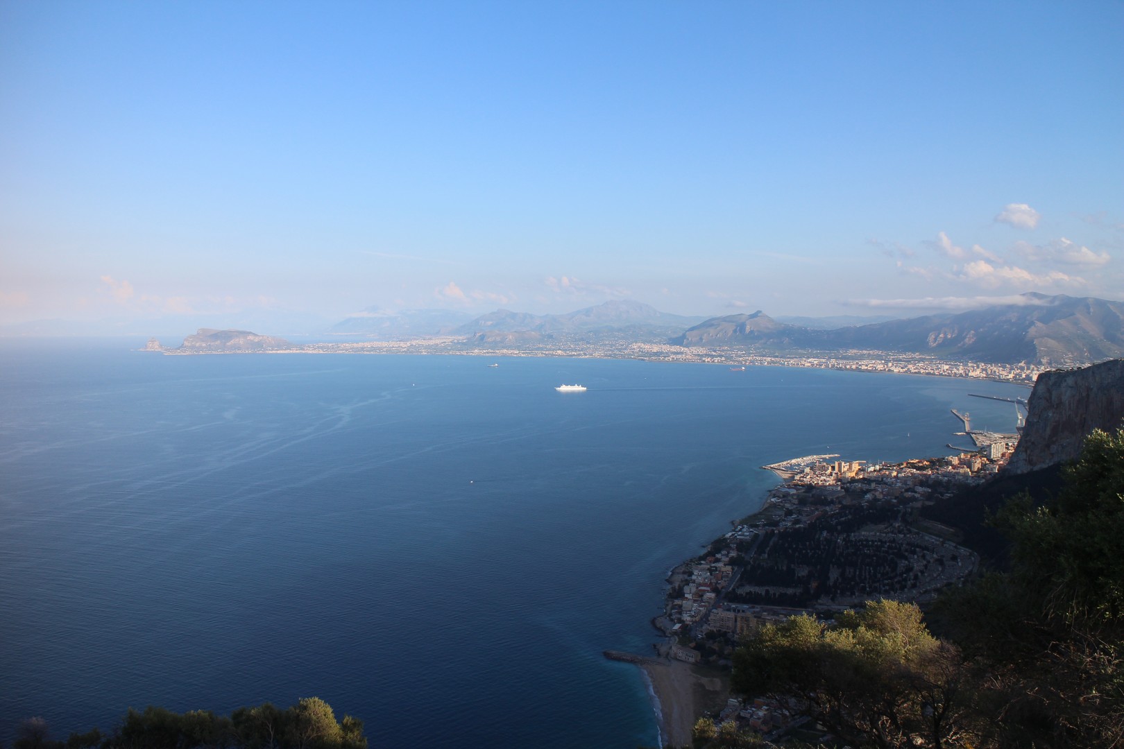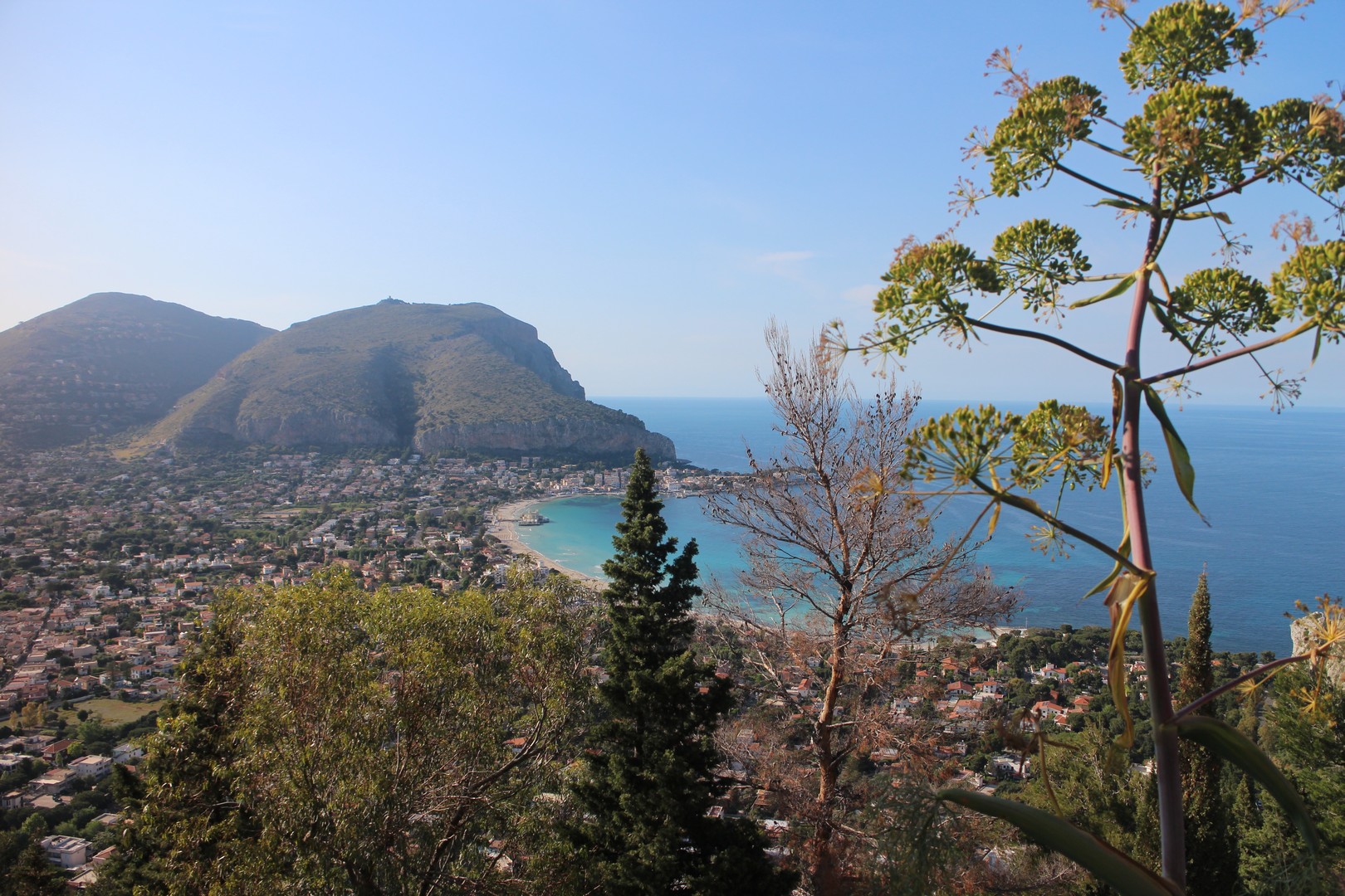Le mont Pellegrino est un sommet calcaire de 606 m, dominant la baie de Palerme, au nord de la ville. À 458 m se trouve le sanctuaire de Santa Rosalia, sainte patronne de Palerme. Des fêtes et des processions sont régulièrement organisées