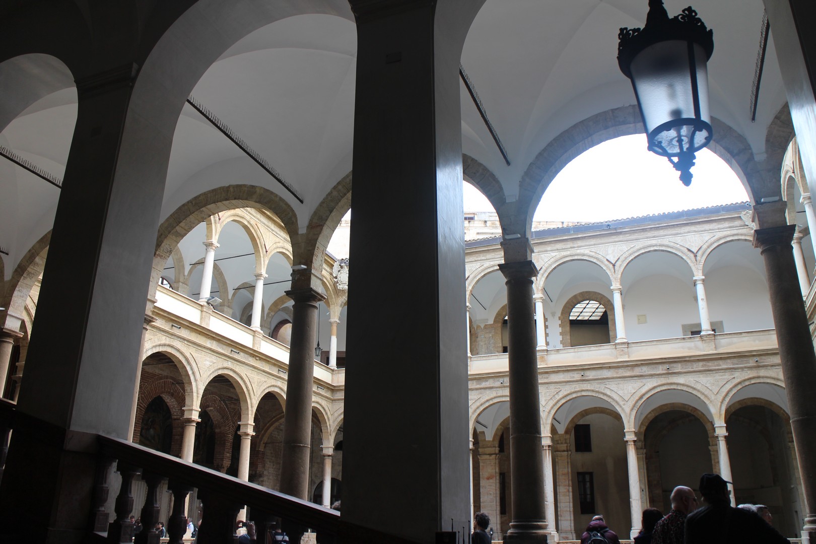 Le palais royal abrite une impressionnante cour centrale ou atrium, avec trois rangées de balcons et d'arches. A l'étage, outre la chapelle Palatine, on compte la salle des Vents et la chambre du roi Roger, décorée de mosaïques de l'école byzantine et de fresques du 12ème siècle représentant des scènes de chasse et des motifs animaliers. Au deuxième étage, le Salon d'Hercule est actuellement le lieu de rassemblement de l'Assemblée régionale.