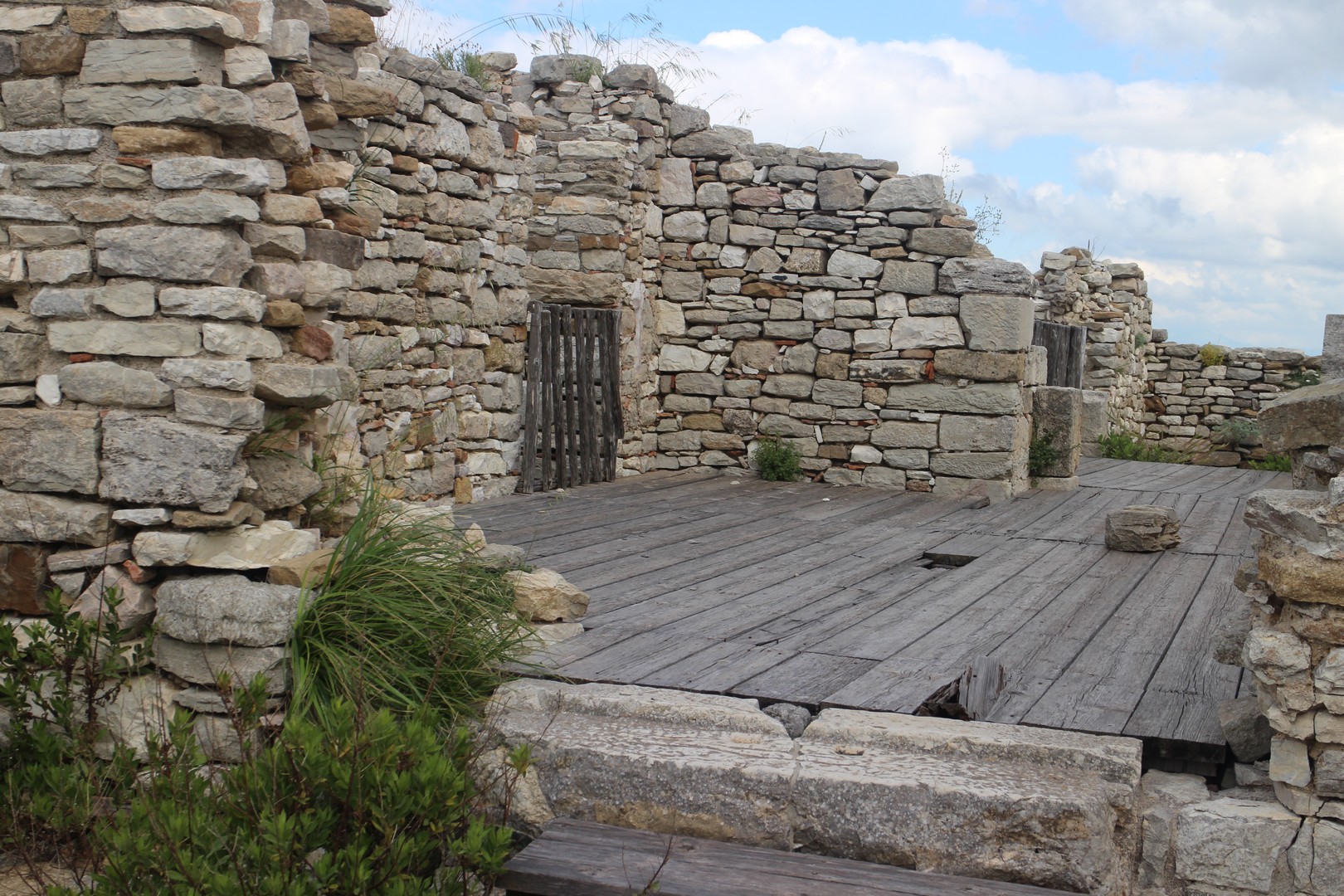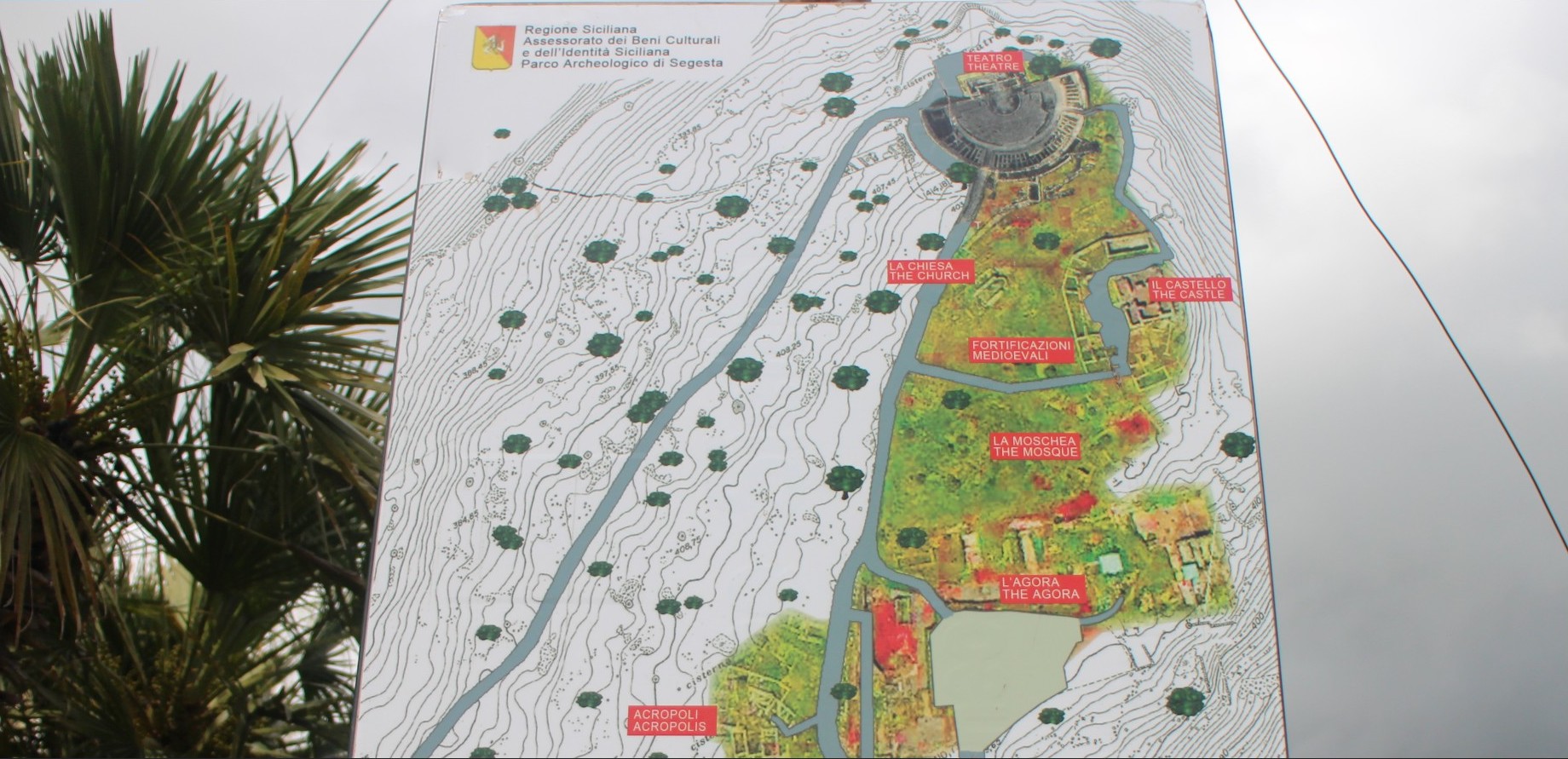 Le théâtre a été construit au IIIe siècle avant J.-C., à l'époque hellénistique, mais sous l'occupation romaine. Il mérite d'être vu, pour ses dimensions impressionnantes mais aussi pour l'incroyable paysage en toile de fond. Pour y accéder, on peut prendre une navette ou y aller à pieds par une petite route sinueuse. Le théatre est en partie restauré avec ses gradins orientés vers la montagne. Avec 4 000 places et 63 m de diamètre, le théâtre est un monument exceptionnel : partiellement creusés à même la colline, les gradins circulaires sont constitués d'énormes blocs de pierre claire, et la scène bénéficiait d'une situation de rêve. Le château ou la demeure du seigneur qui s'établit au début du XIIIe siècle sur le sommet du mont Barbaro, se développait autour d'une cour centrale pavée de briques. De la construction originaire, il ne reste plus que le rez de chaussée.