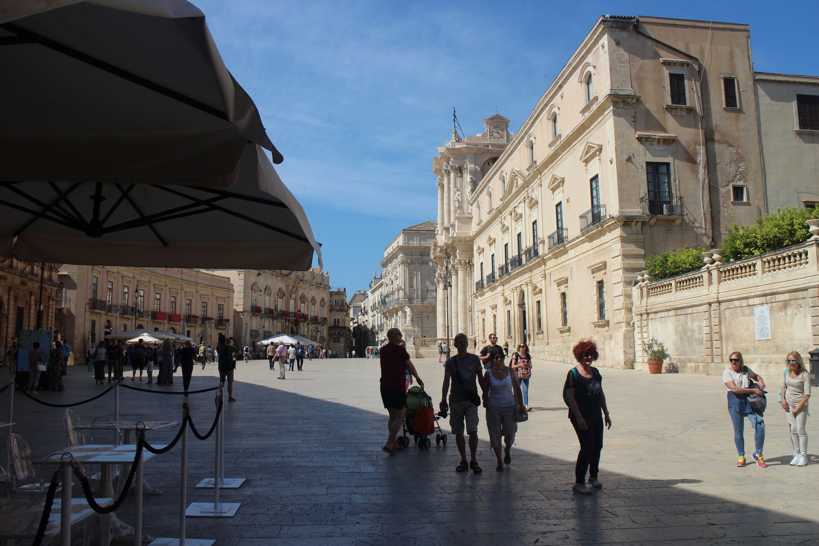 Très grande place avec le Duomo, l'église Ste Lucie, le palais Beneventano del Bosco (belle cour intérieur) et le palais du Sénat.