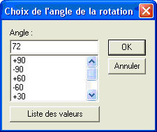 Construction du Pentagone initial Cliquer sur l'icône point libre puis placer deux points (centre du futur pentagone et un des sommets), nommer les respectivement A et B avec l'outil Nommer . Cliquer sur l'icône de la rotation puis sur le centre de la rotation (le point A), on obtient alors une boîte de dialogue pour indiquer l'angle de la rotation :