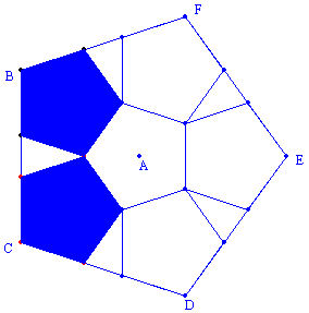 Pour finir, on peut colorier la surface des petits pentagones avec l'outil Surface , après avoir choisi la couleur et le style du remplissage dans la palette de droite puis effacer avec la l'outil gomme le pentagone initial.