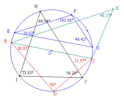 Ils doivent ensuite émettre une conjecture et la vérifier avec le triangle BCK en déplaçant le point K. de l'intérieur vers l'extérieur du cercle.