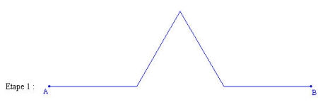 Le deuxième exercice étudie et construit les étapes 0, 1 et 2 de la courbe de Von Koch (fractale) et demande de calculer la longueur de la ligne brisée sur un exemple (AB = 9 cm, on peut demander aux meilleurs élèves de passer au cas général en posant AB = a).