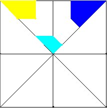 Le motif de base est constitué des trois quadrilatères de couleur :