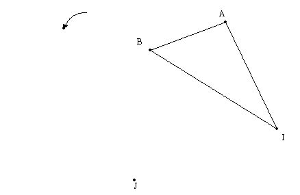 Premier exercice : fichier RotationA1 Pour un premier contact avec la rotation, on demande simplement aux élèves de tracer avec l'outil Rotation l'image du triangle ABI dans la rotation de centre I (puis J), de sens indiqué sur la figure et d'angle 60°. On demande ensuite de déplacer le point J pour le faire coïncider avec le point I, afin de faire remarquer aux élèves que la rotation dont le centre est un sommet du triangle est un cas particulier.