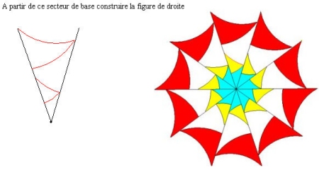 Quatrième exercice : fichier Kaléidomosaïque Les élèves utilisent l'outil rotation pour compléter la figure donnée en vue d'obtenir une kaléidomosaïque représentée par l'image à droite :