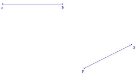 Le premier exercice demande de tracer un triangle isocèle EFG dont la base [FG] est tracée et dont la longueur des deux autres côtés doit être égale à celle du segment [AB] donné.