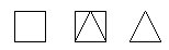 Elle a lieu dans la salle informatique avec un élève par poste (Feuille de TD donnée aux élèves : TPWord.doc). Les élèves ont à ouvrir un document Word qui ne contient que les 3 dessins suivants : Note : le deuxième dessin n'est pas utilisé dans la suite mais sert à comprendre la nature du triangle. Les élèves pourraient faire eux-mêmes ces dessins (voir remarques 1) mais l'expérience montre que la réalisation du triangle n'est pas évidente alors que la réussite de la suite en dépend (sans compter un gain de temps non négligeable).