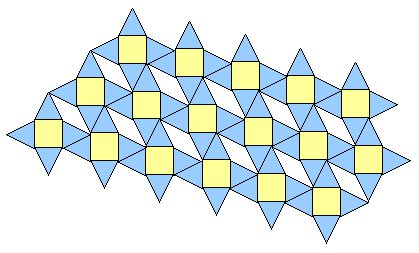 Les élèves sont alors prêts pour la recherche : il s'agit de copier/coller ce motif de base et de les assembler pour obtenir un pavage à deux motifs, celui créé et un polygone (losange, carré, hexagone, octogone…). L'opération est très simple (et motivante) à réaliser, il suffit de déplacer le motif de base à la souris (et d'ajuster au clavier). Très vite les élèves réalisent un premier pavage :