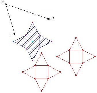 Ils doivent construire l'image du motif de base dans la translation qui transforme O en S puis dans la translation qui transforme O en T. Ils obtiennent alors la figure 2.