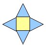 Les instructions sont alors de copier une fois le carré et le triangle puis de les colorier (avec des couleurs différentes de leur choix), l'outil copier/coller de Word est alors utilisé. Il faut ensuite copier 3 fois le triangle puis assembler le carré avec les 4 triangles (la base de chaque triangle étant confondu avec un côté du carré). Pour cette opération il est nécessaire d'utiliser l'outil Rotation ou retournement du menu Dessin de la barre d'outils dessin de Word. Le positionnement fin des triangles se fait en sélectionnant l'un des triangles et en le déplaçant avec les touches fléchées du clavier (le positionnement sur la grille est désactivé, c'est à dire "Aligner sur la grille" décoché, cette boîte de dialogue est obtenue par le menu Dessin, Grille,). Les élèves obtiennent alors la figure suivante : Ils doivent alors grouper ces 5 formes (4 triangles et 1 carré) pour obtenir une seule forme : le motif de base des pavages. Ce groupement se fait par l'outil Grouper du menu dessin.