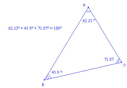 En déplaçant l'un des sommets du triangle, les valeurs des angles se réactualisent.
