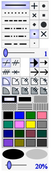 La partie haute de cette palette permet de choisir le style de trait et de point. Le curseur en dessous définit l'épaisseur du trait.